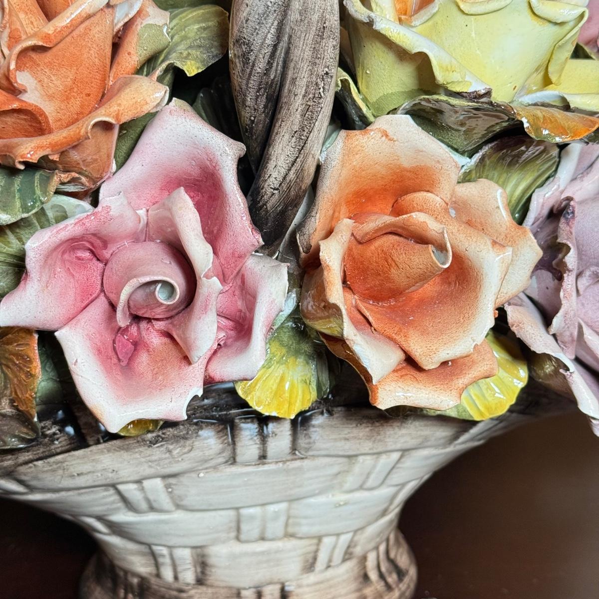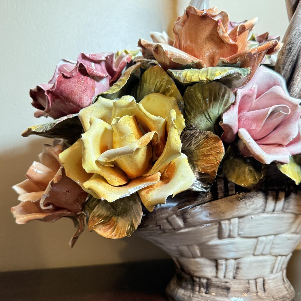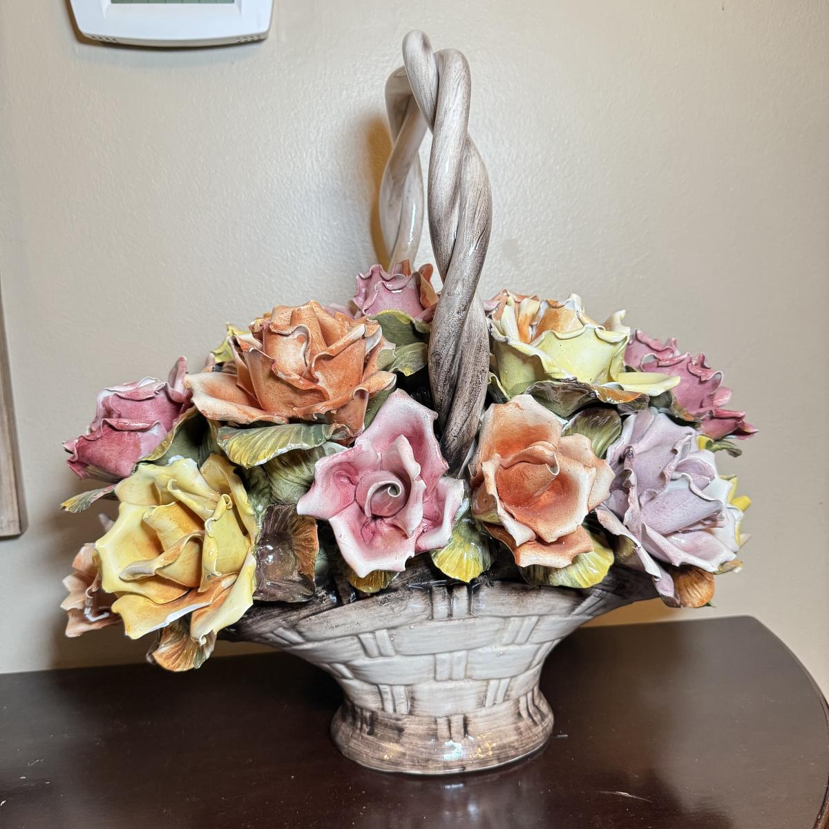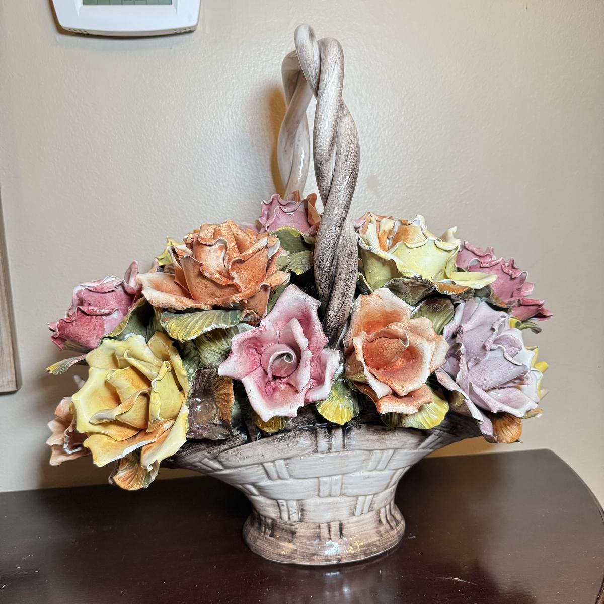 LOT 25: Vintage 18” Capodimonte Porcelain Flower Basket Sculpture