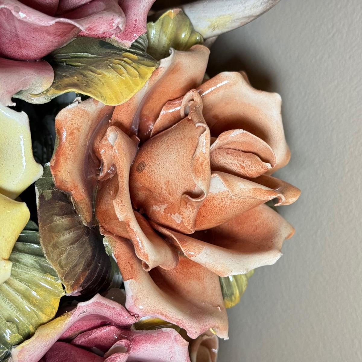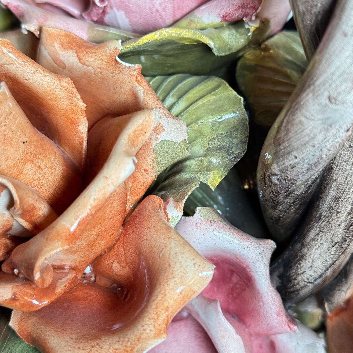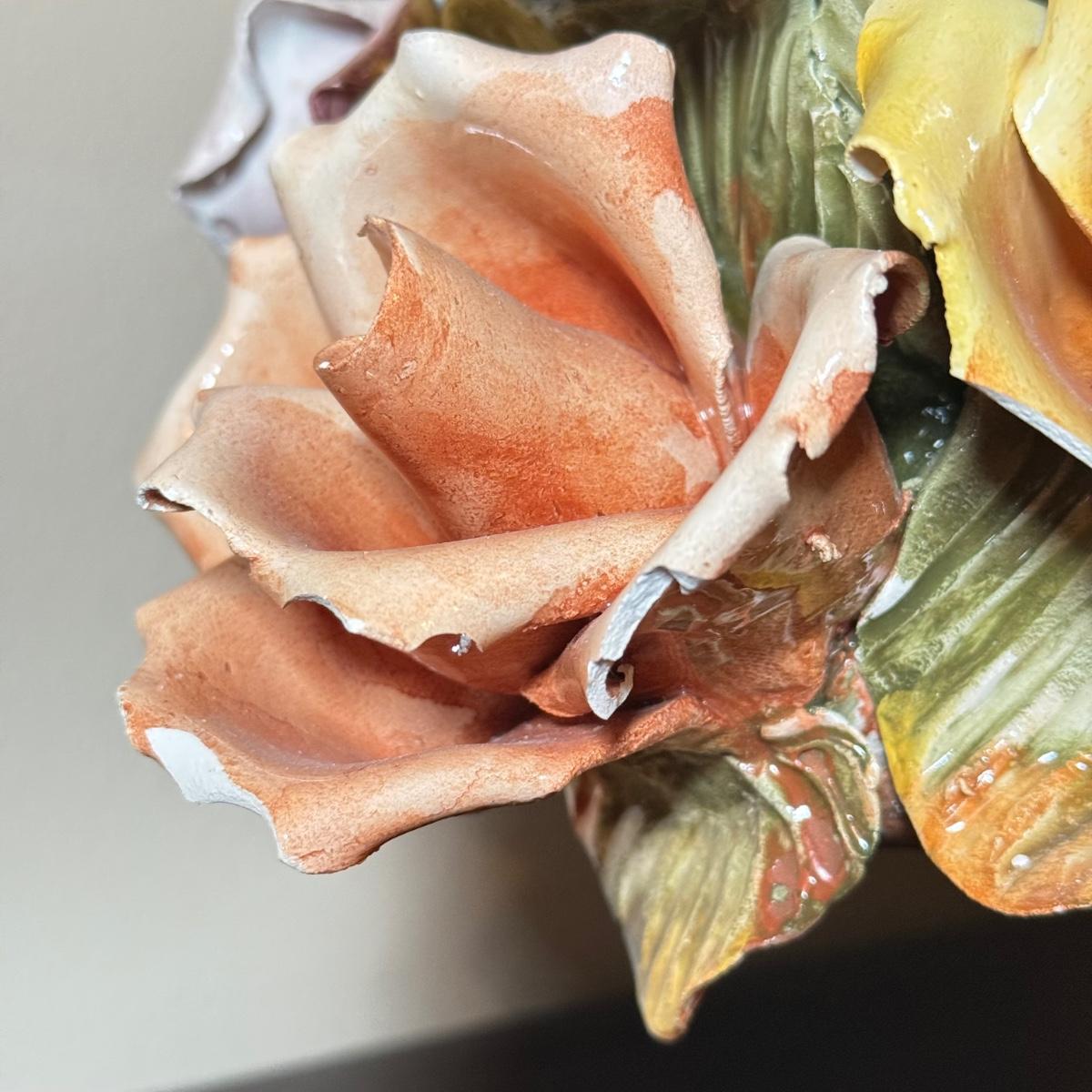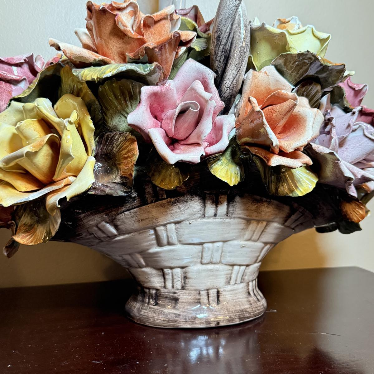 LOT 25: Vintage 18” Capodimonte Porcelain Flower Basket Sculpture