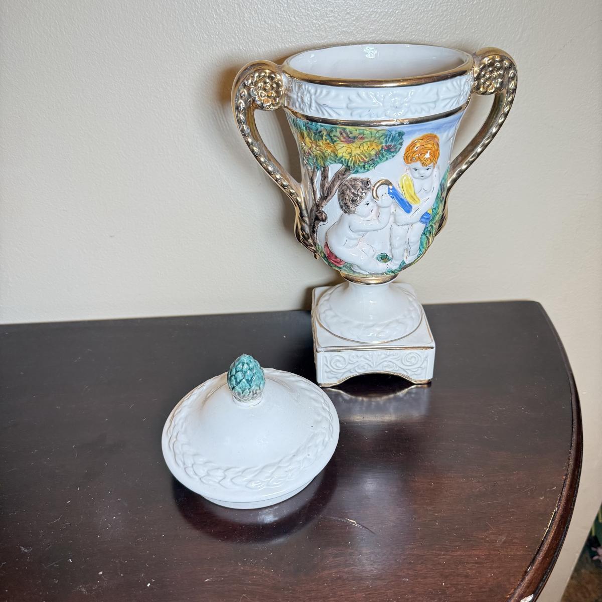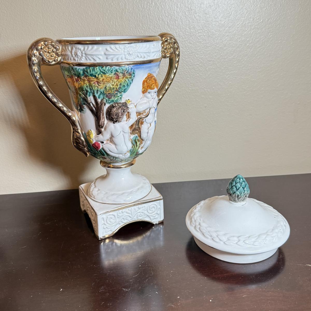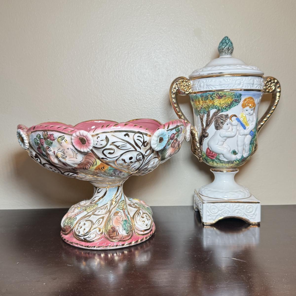 LOT 26: Vintage Porcelain Capodimonte Centerpiece Bowl & Urn w/ Lid