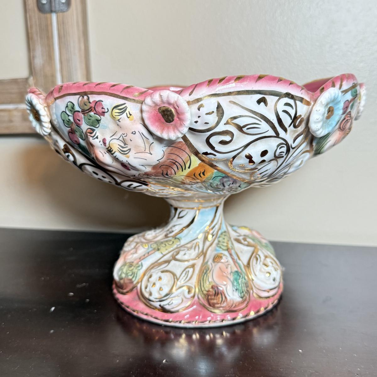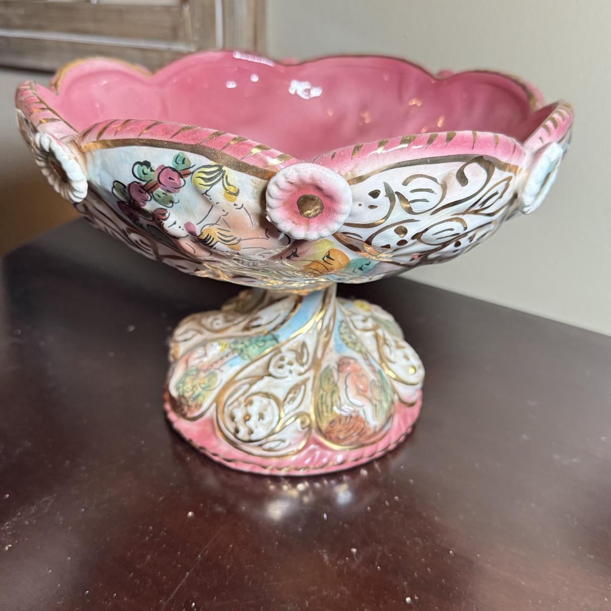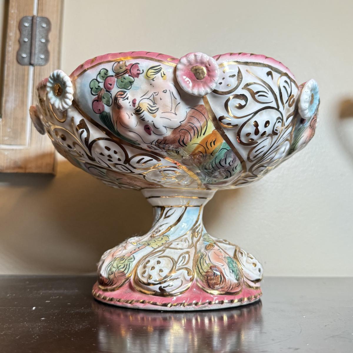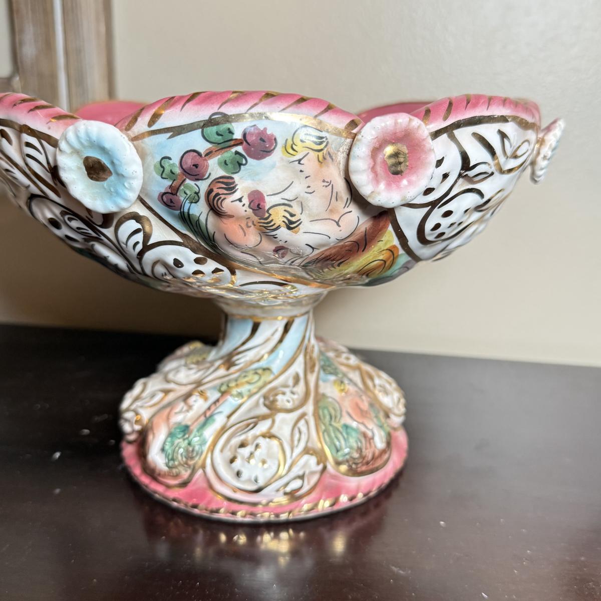 LOT 26: Vintage Porcelain Capodimonte Centerpiece Bowl & Urn w/ Lid