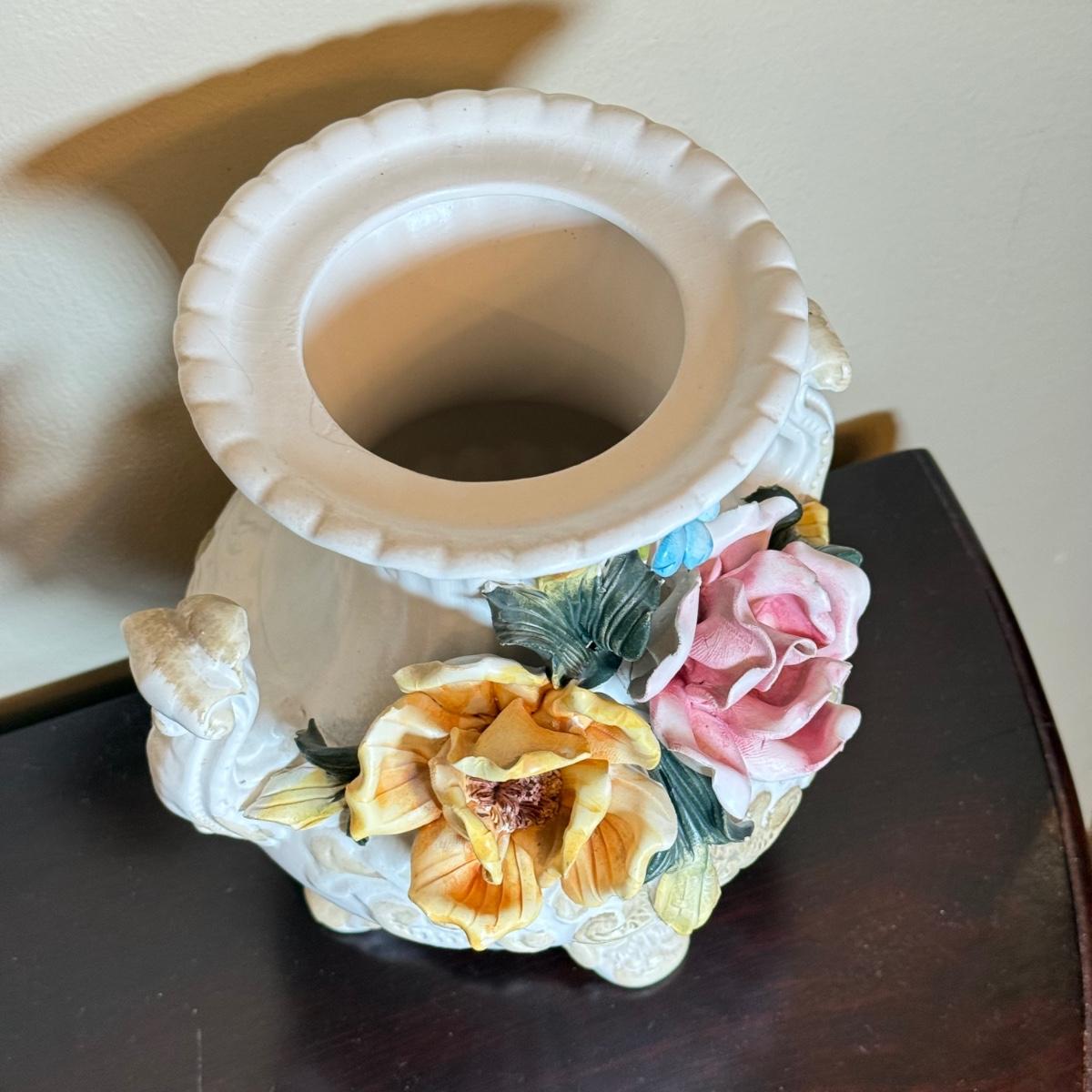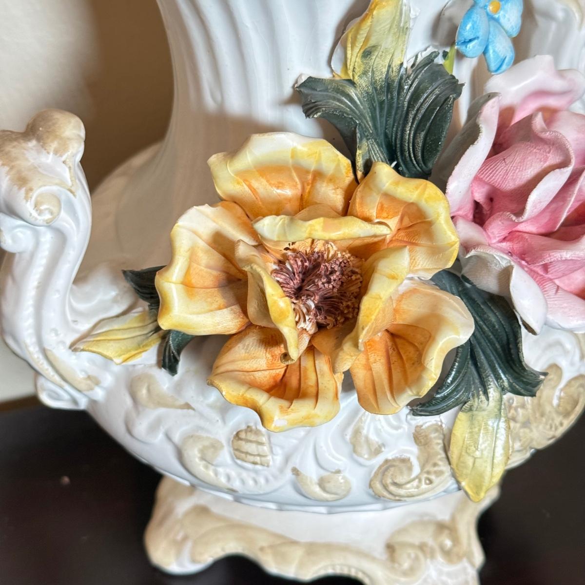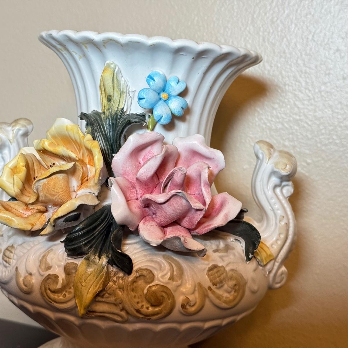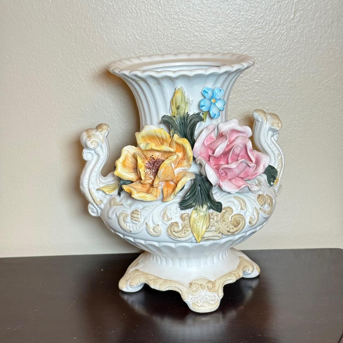 LOT 27: Vintage "Capo" Capodimonte Italian Floral Sculpture Vase 1318/30 & Footed Ceramic Bowl signed Jean Vena 1972