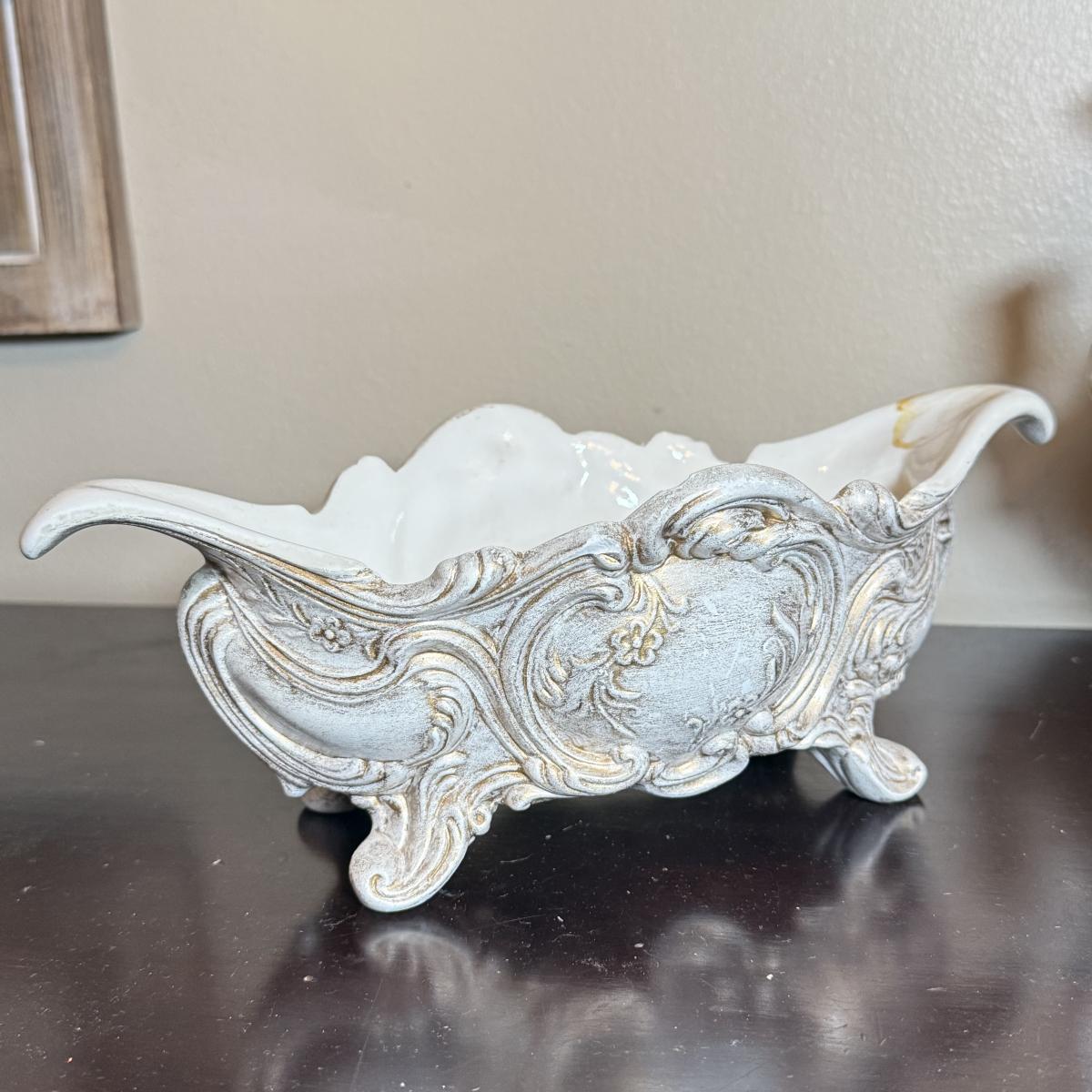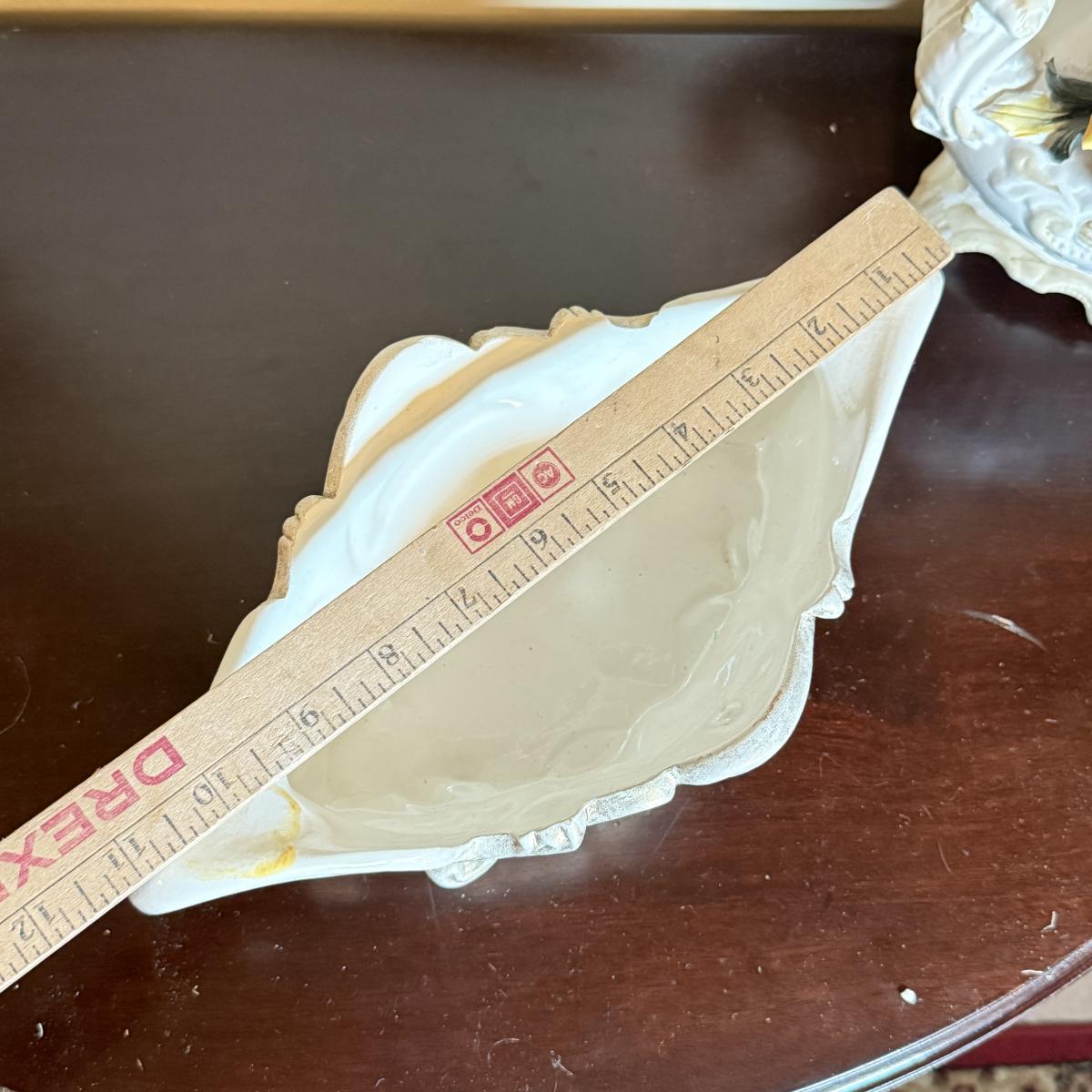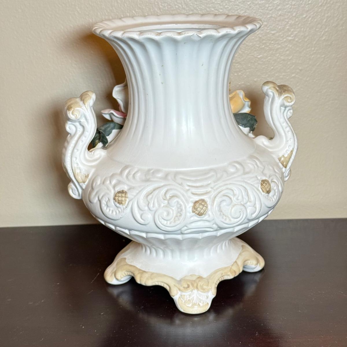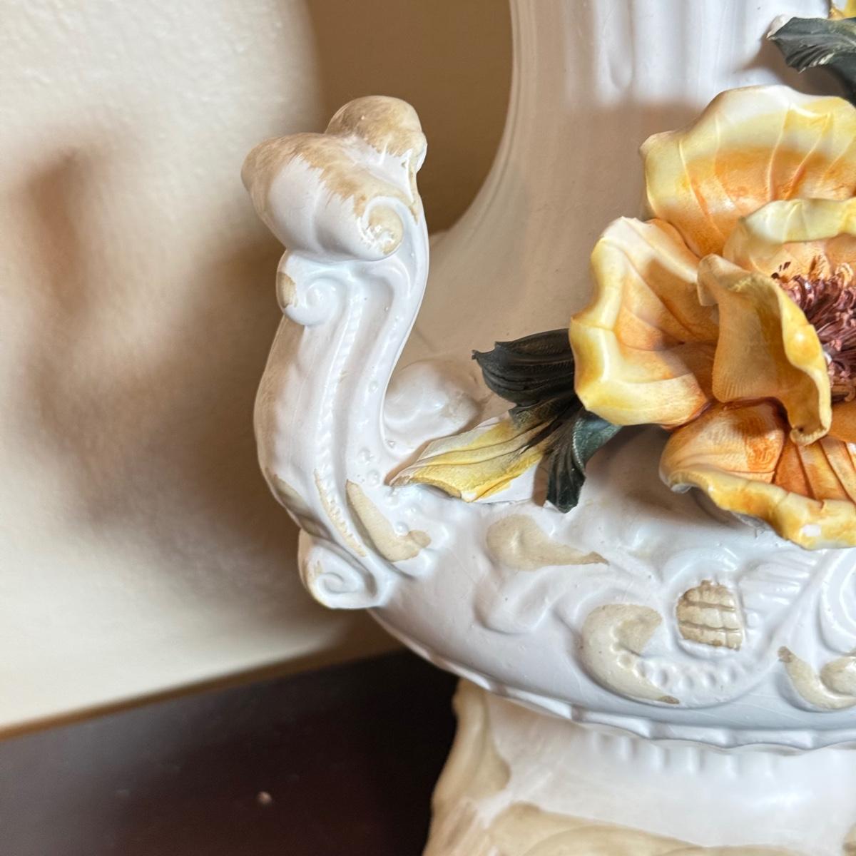 LOT 27: Vintage "Capo" Capodimonte Italian Floral Sculpture Vase 1318/30 & Footed Ceramic Bowl signed Jean Vena 1972