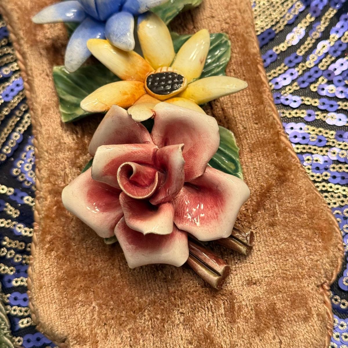 LOT 30: Wall Mounted Capodimonte Style Porcelain Flowers