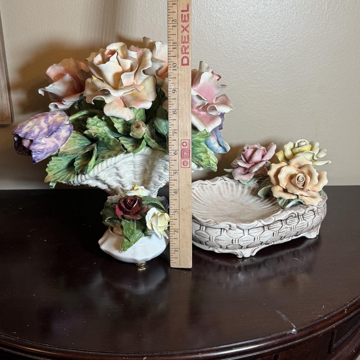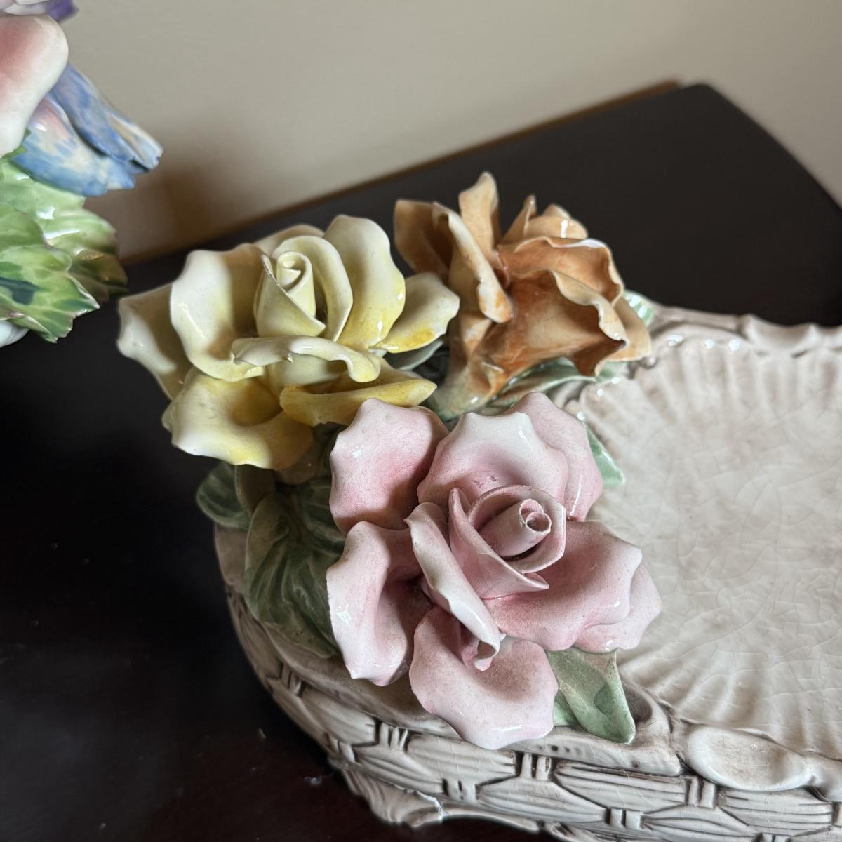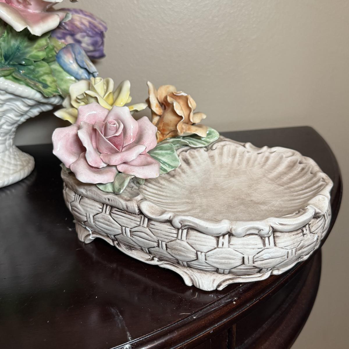 LOT 33: Vintage Signed Italian Porcelain Flower Basket & Radnor China Trinket Dish