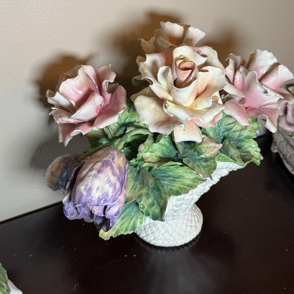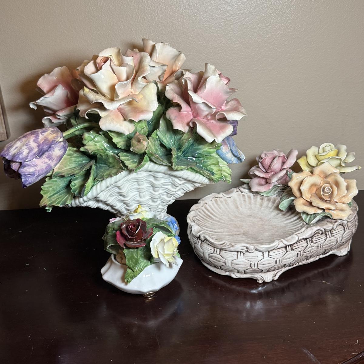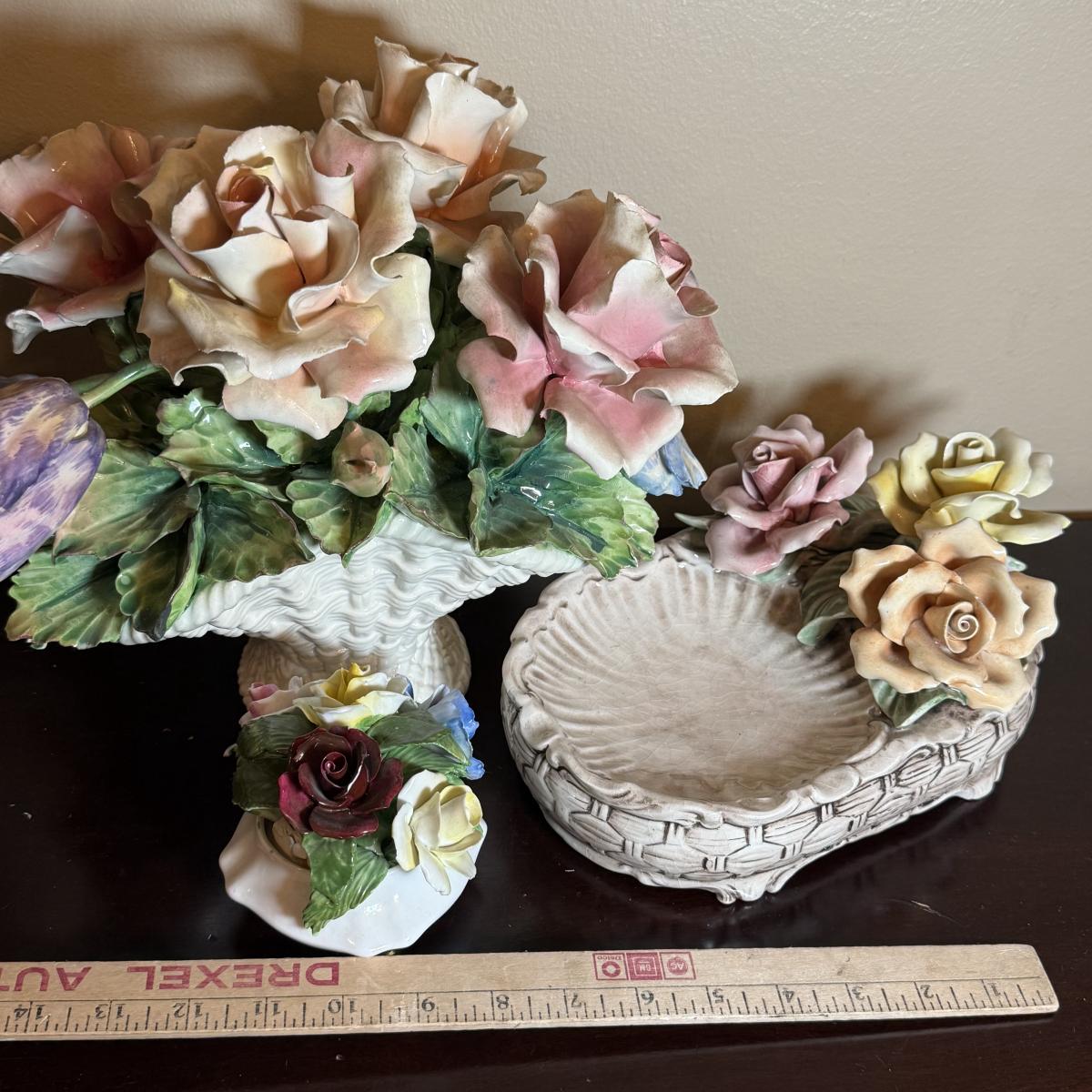 LOT 33: Vintage Signed Italian Porcelain Flower Basket & Radnor China Trinket Dish