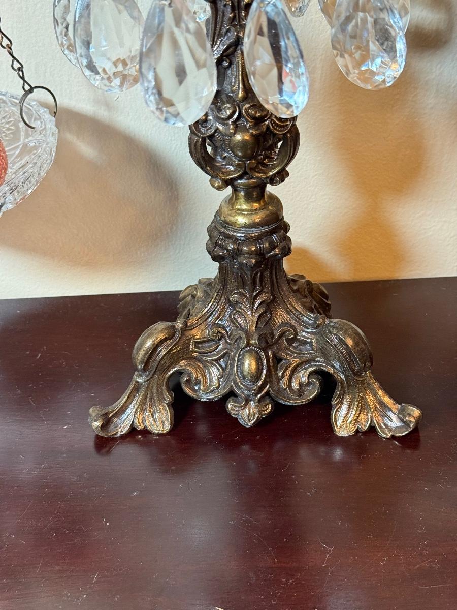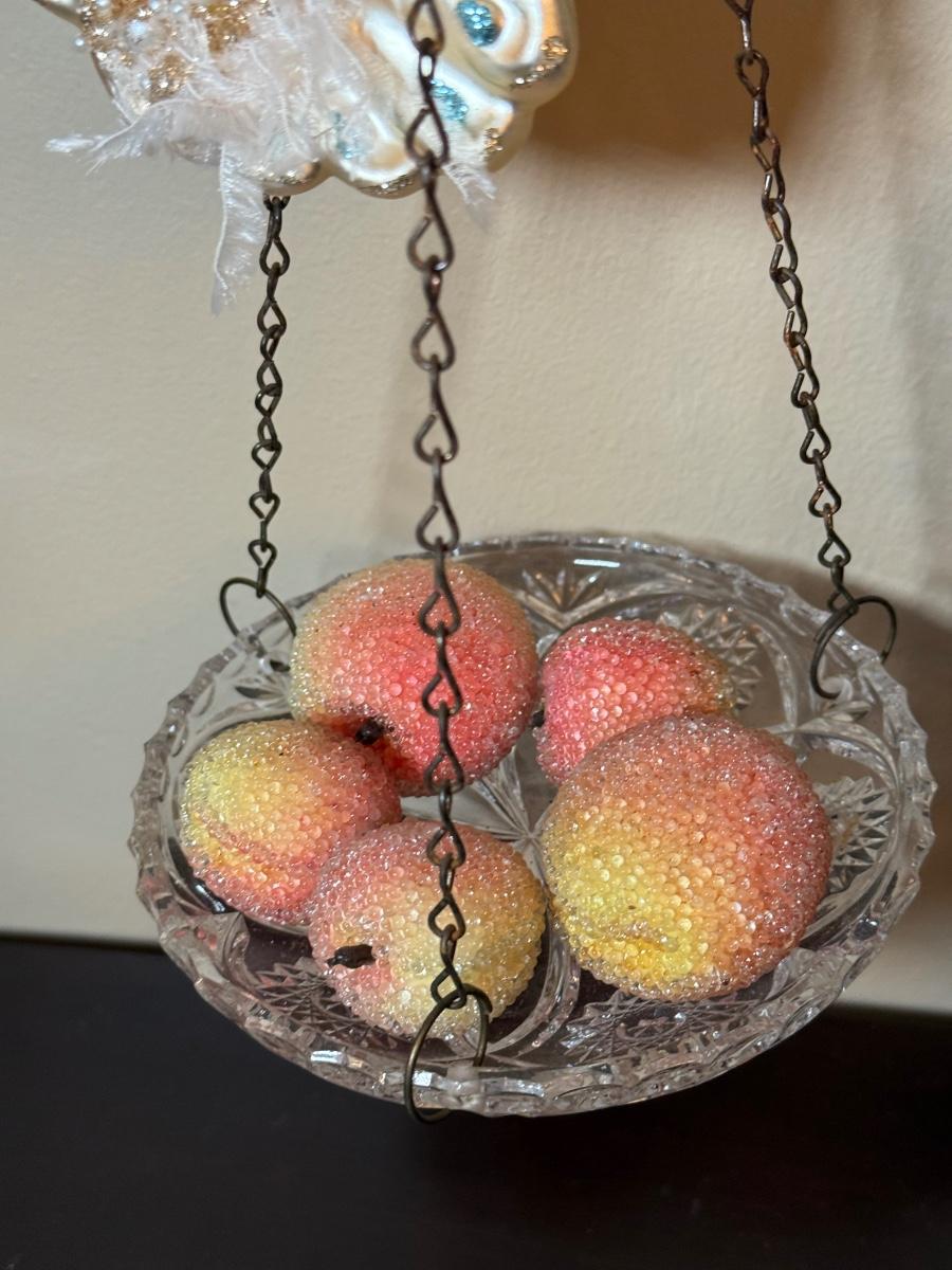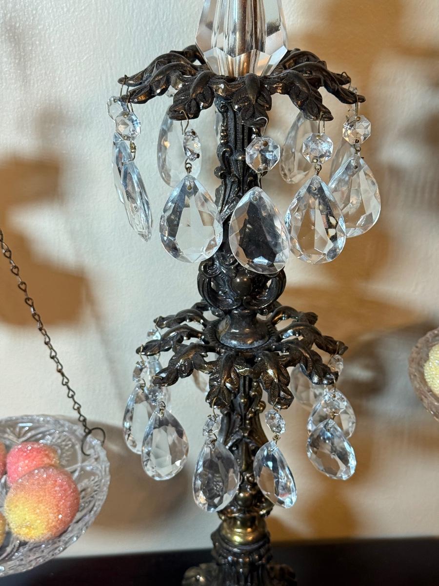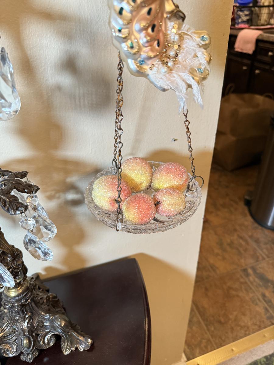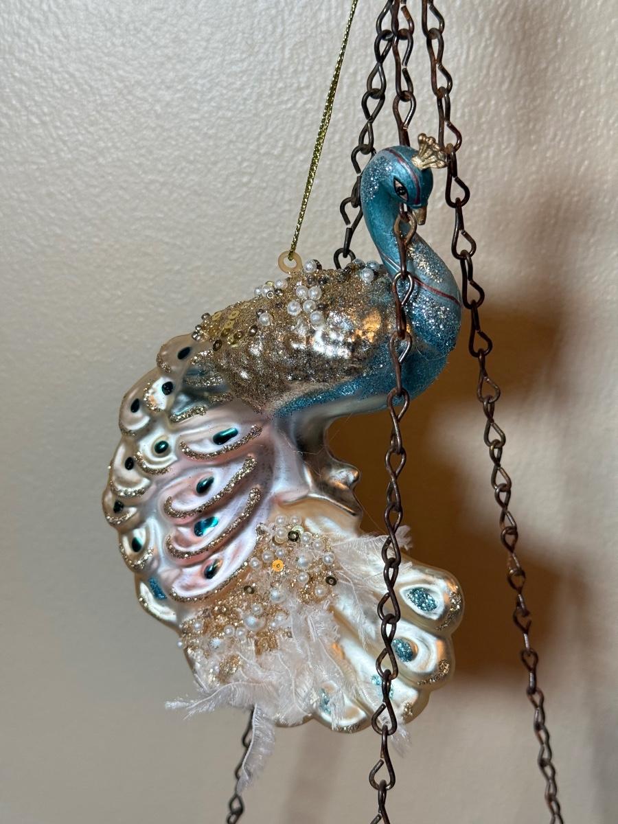 LOT 36: Vintage Brass & Crystal Scale w/ Peacock Ornaments