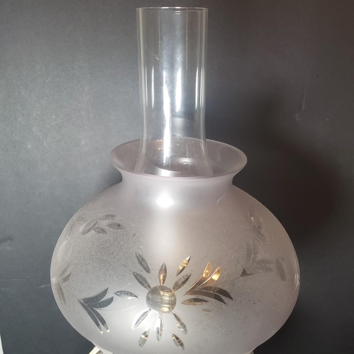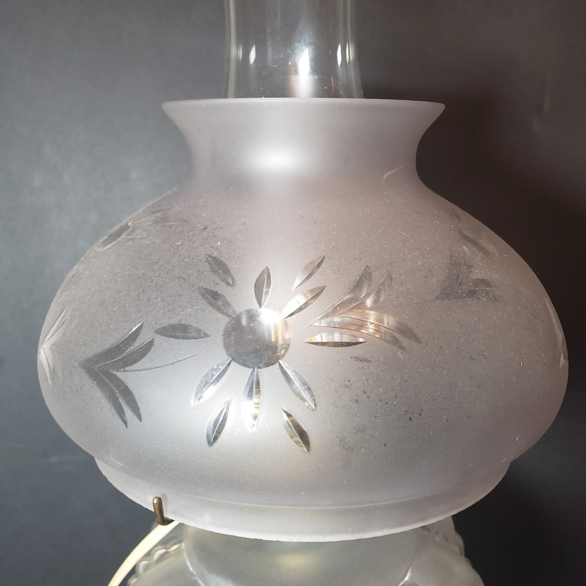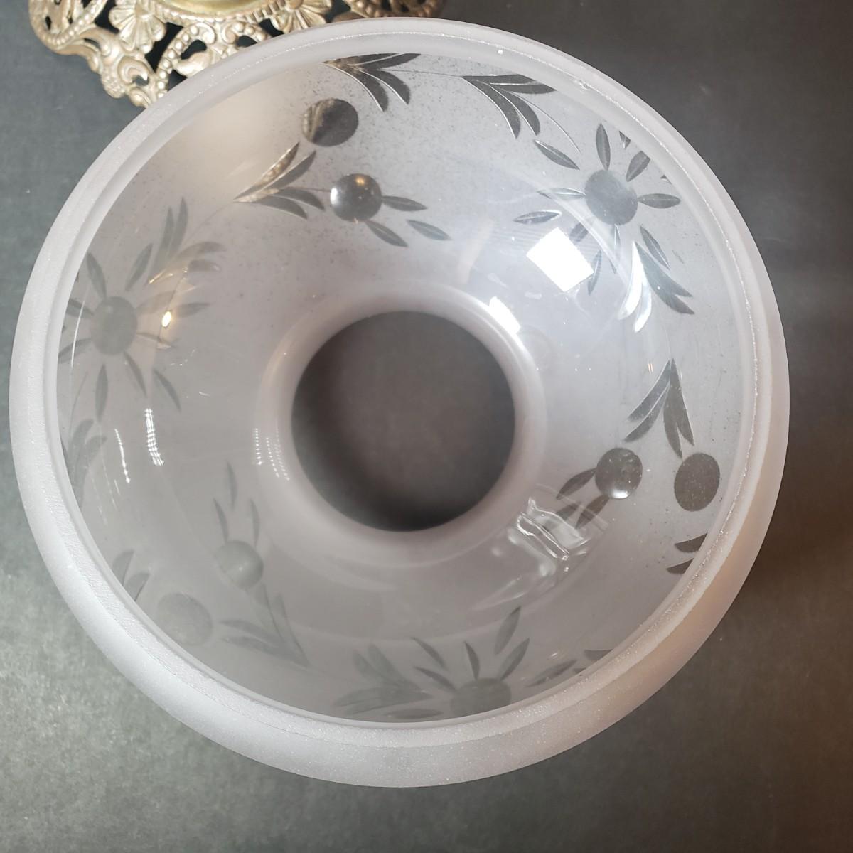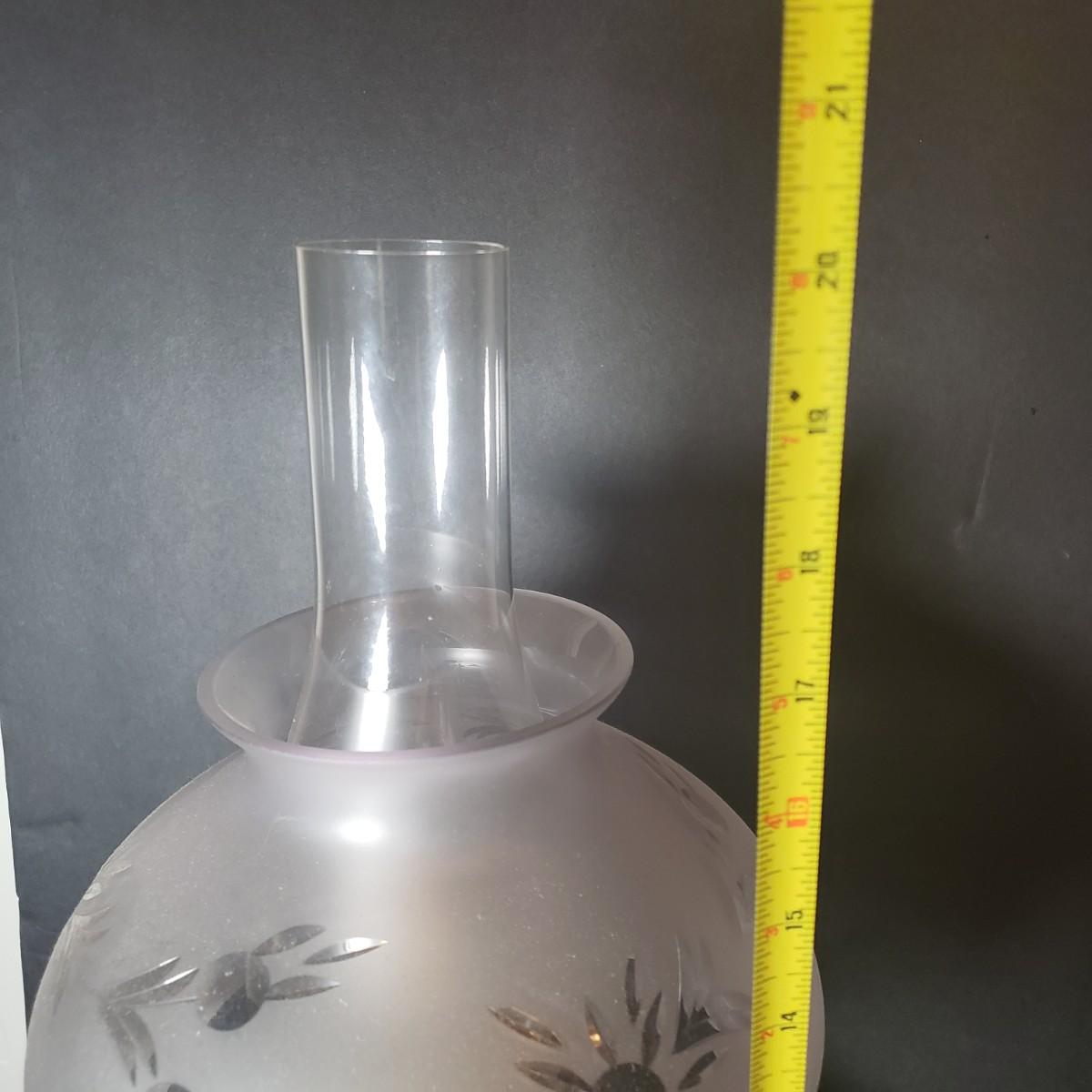 LOT 41: Antique Beaded Drape Frosted Glass Lamp with Etched Glass Shade