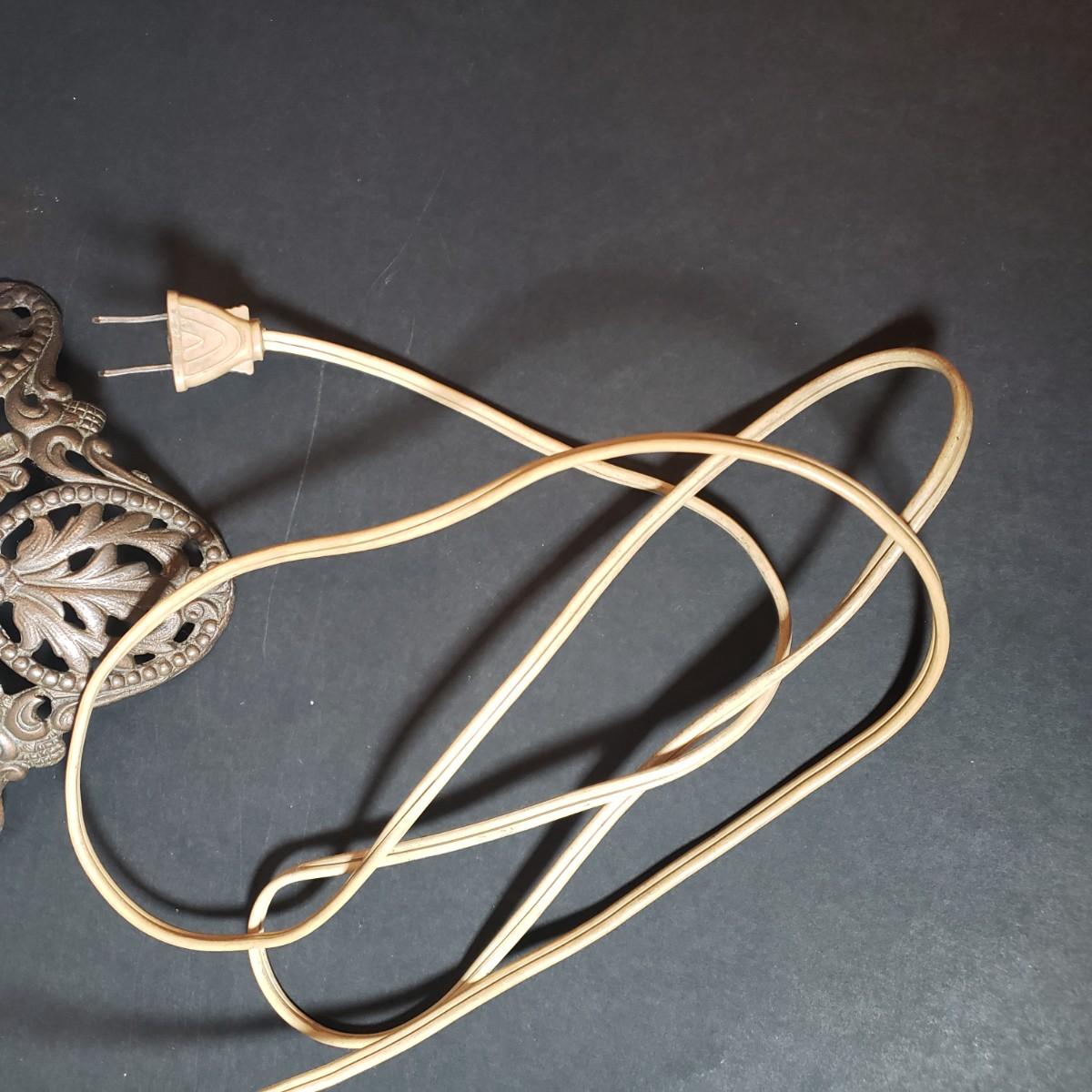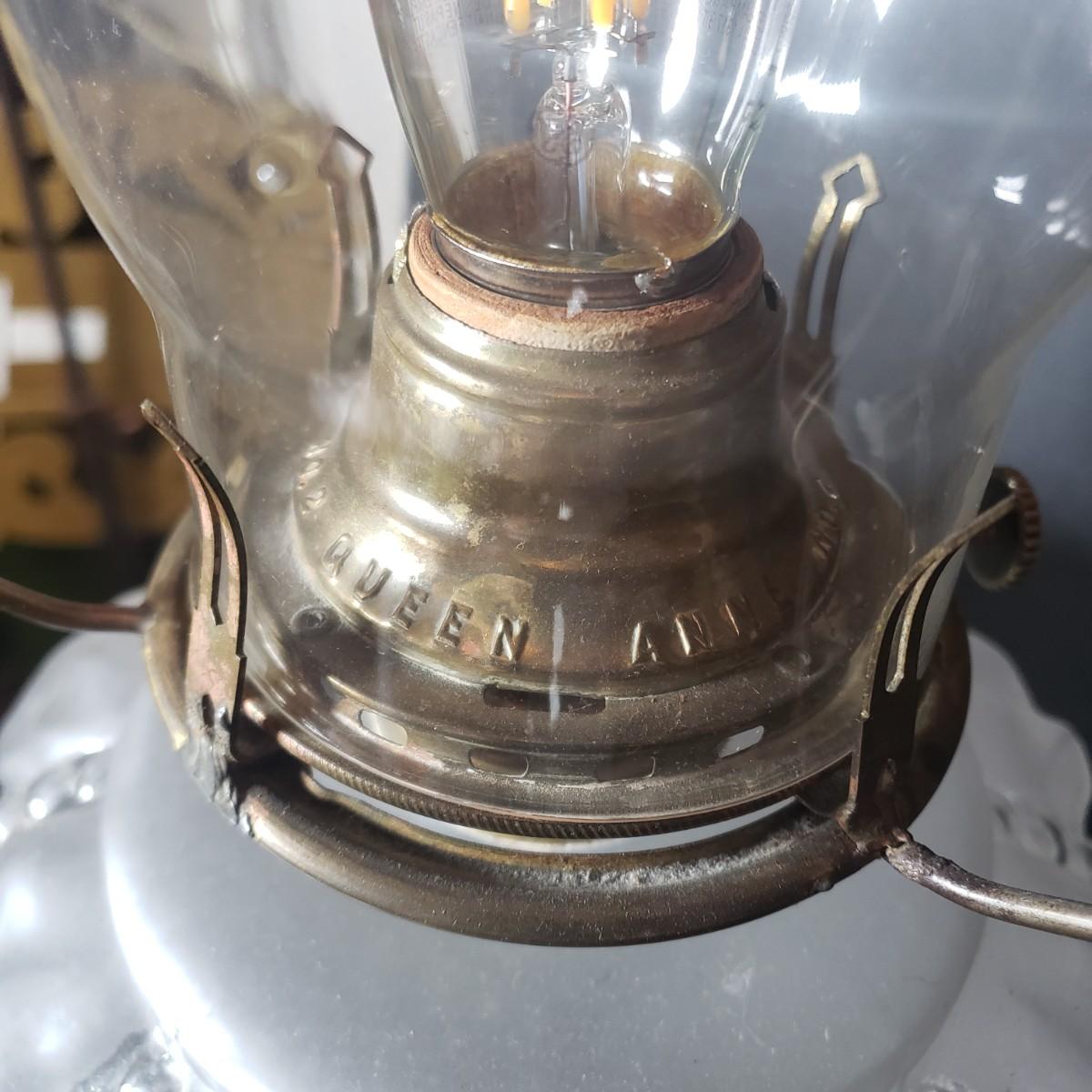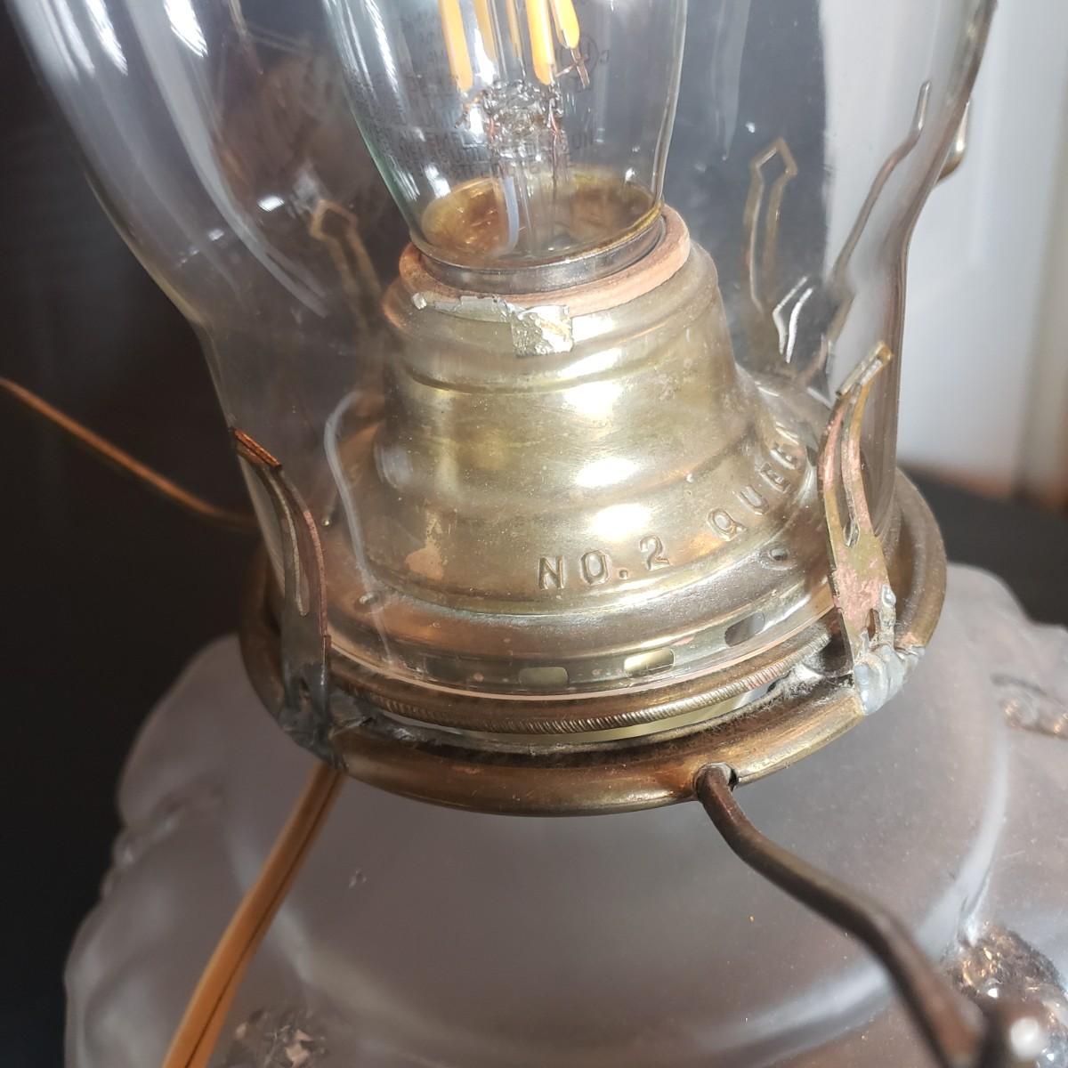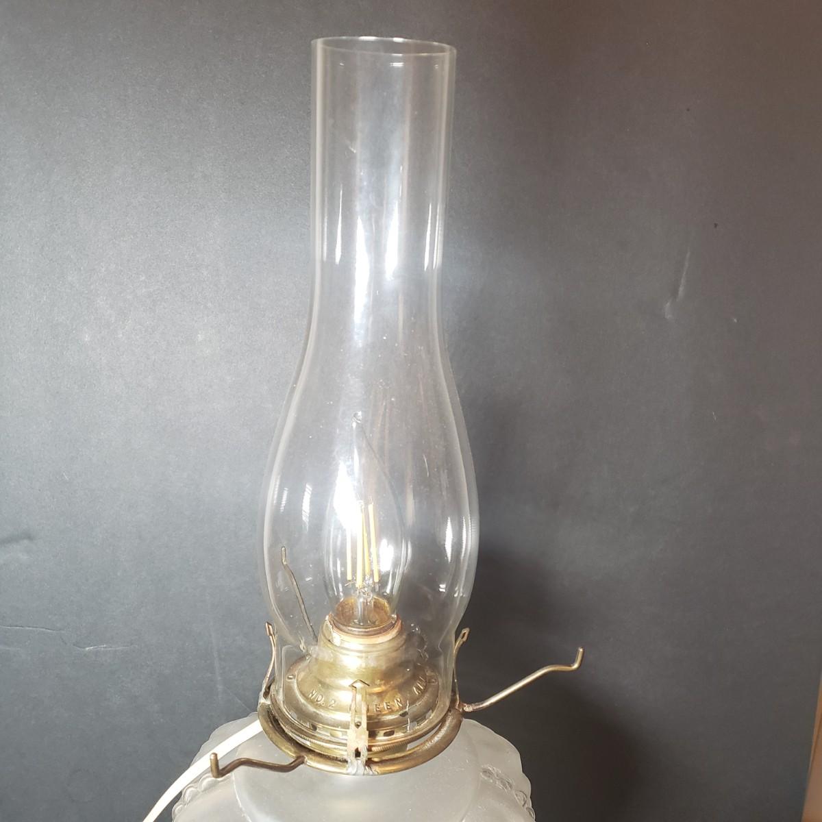 LOT 41: Antique Beaded Drape Frosted Glass Lamp with Etched Glass Shade