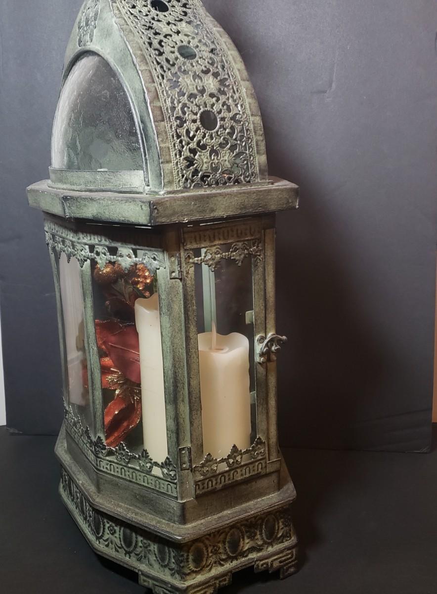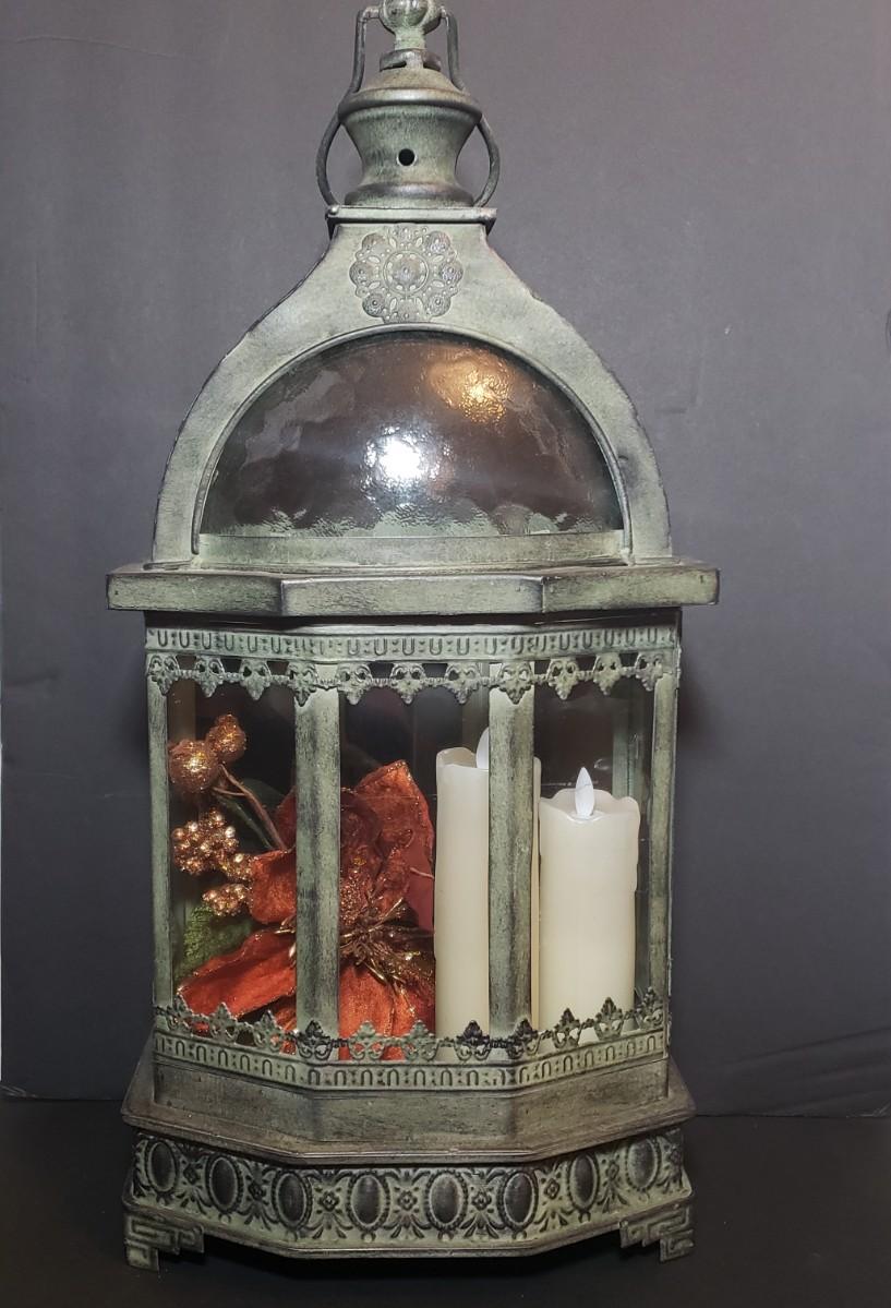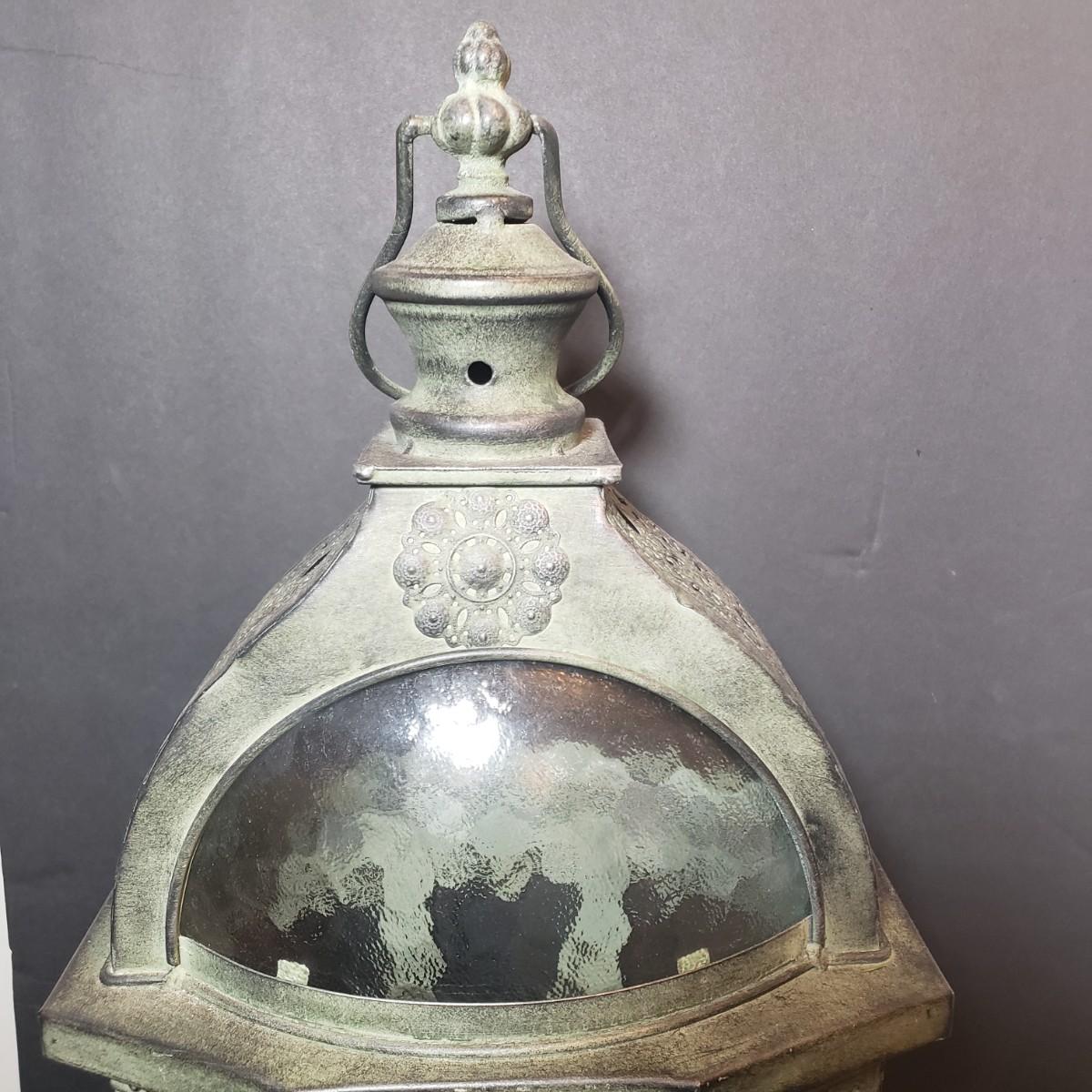 LOT 42: Large Metal Decorative Lantern with Glass Panels & Door