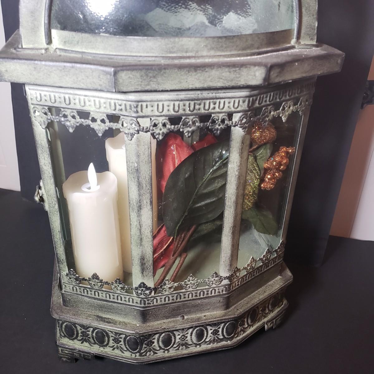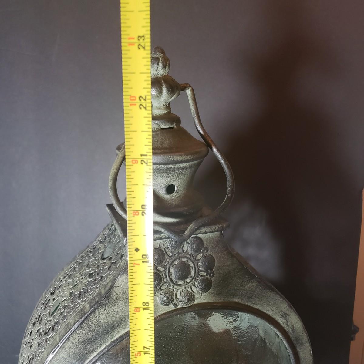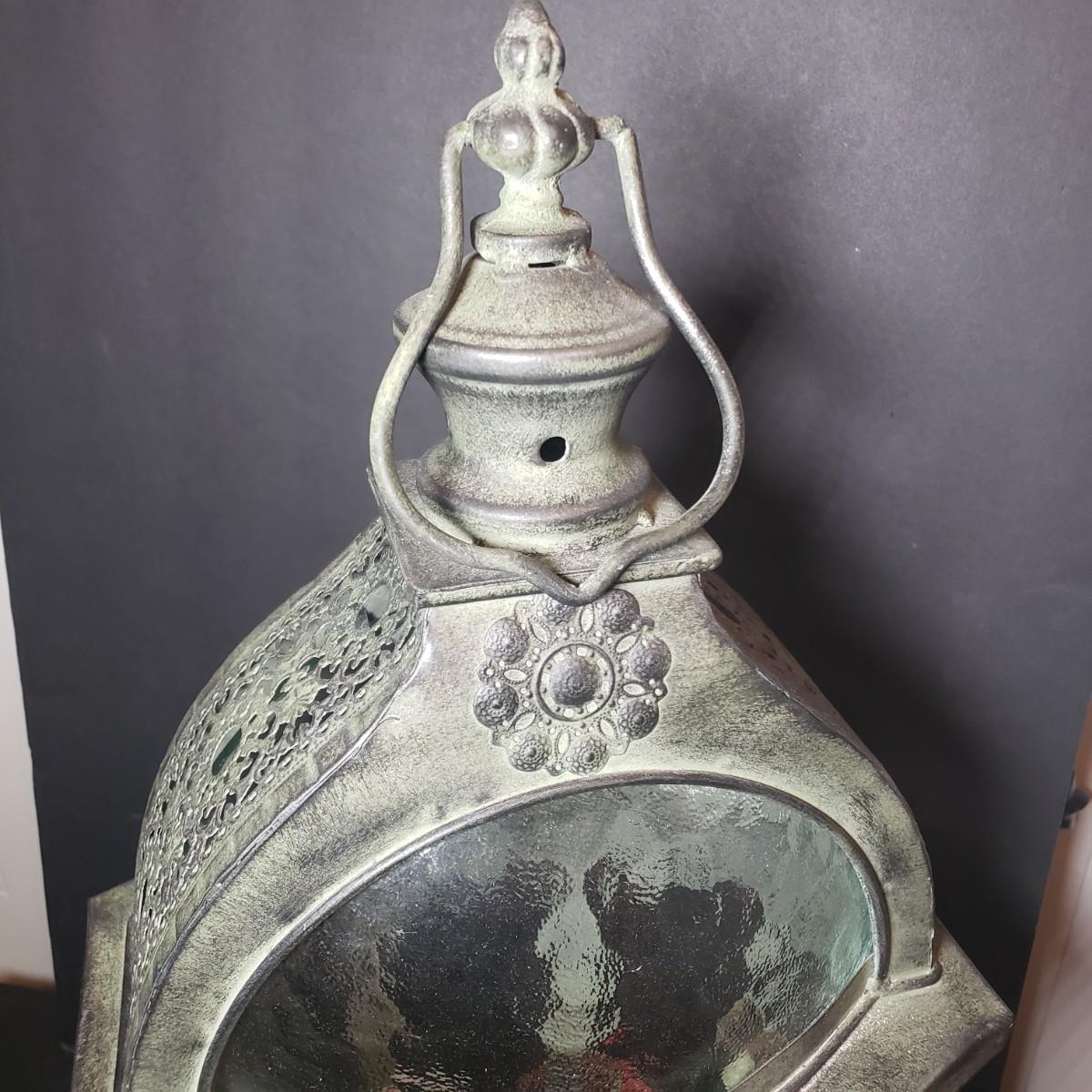 LOT 42: Large Metal Decorative Lantern with Glass Panels & Door