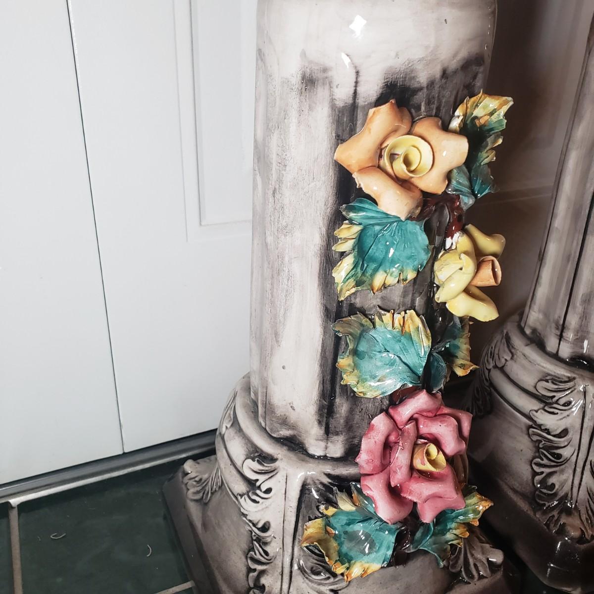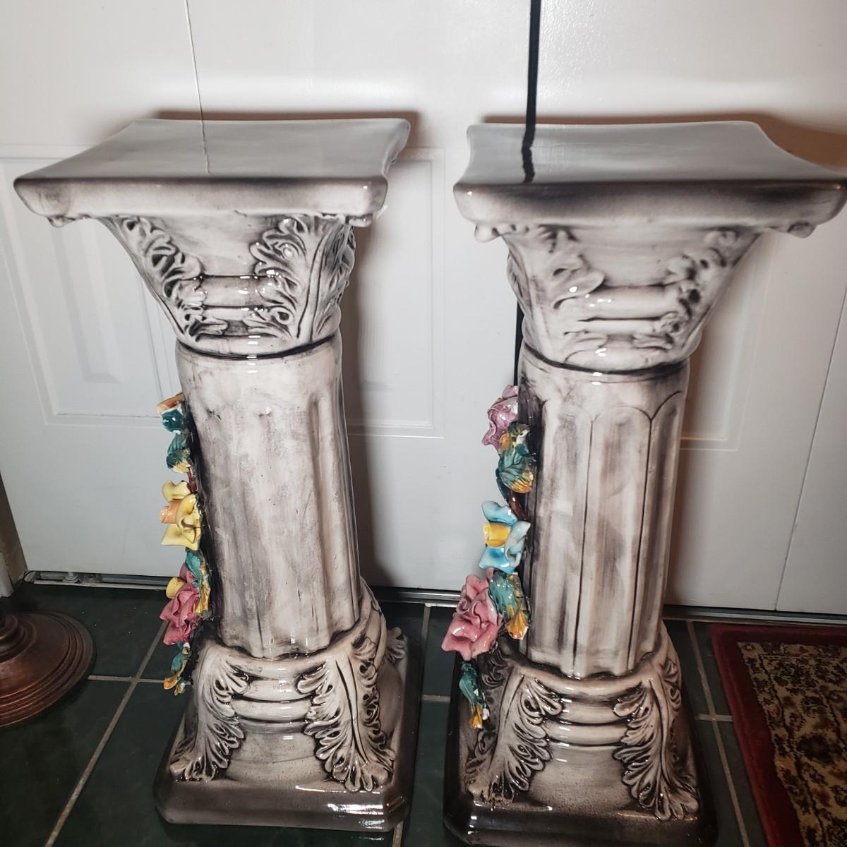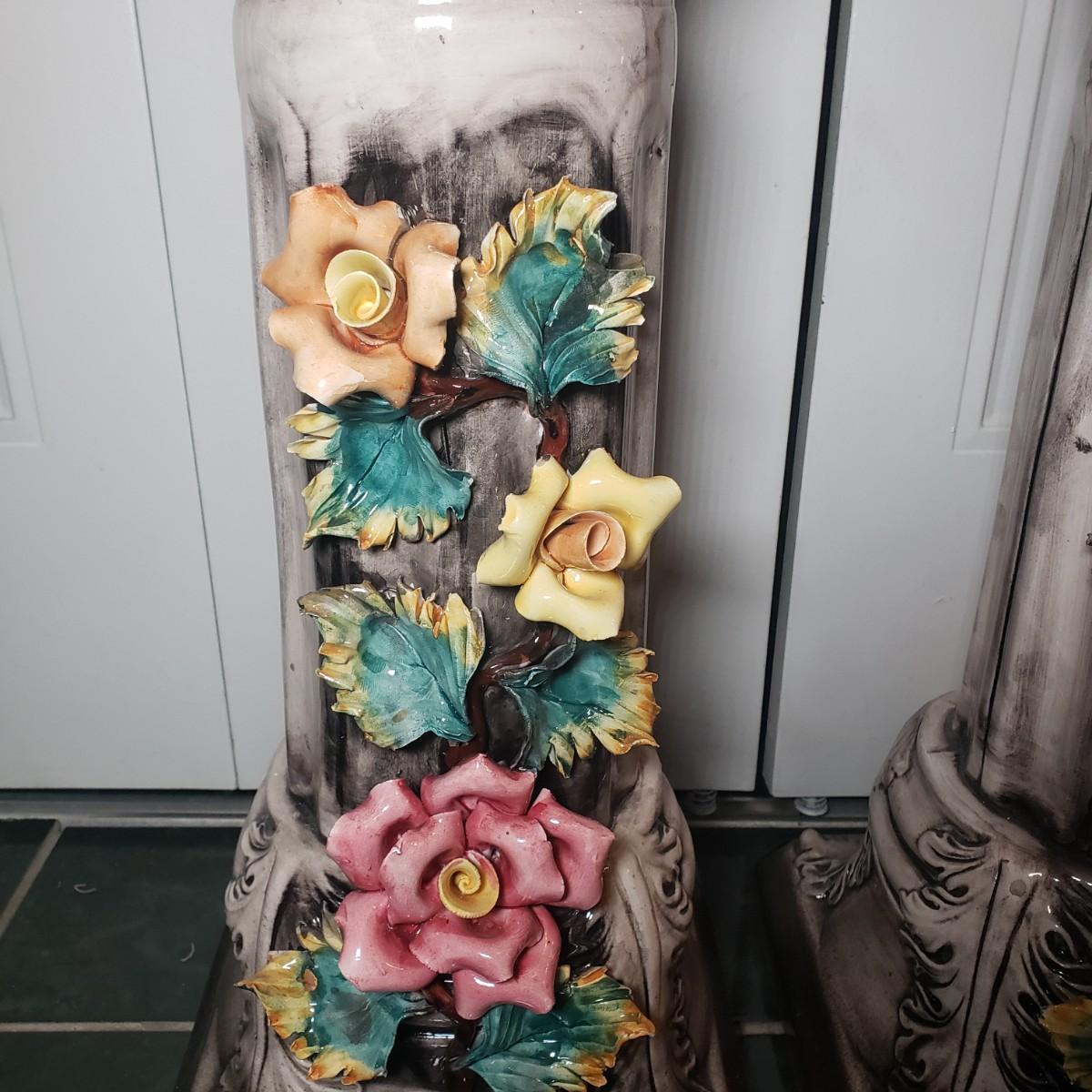 LOT 50: Pair of Gorgeous Italian Ceramic Capodimonte Floral Pedestal/Plant Stands