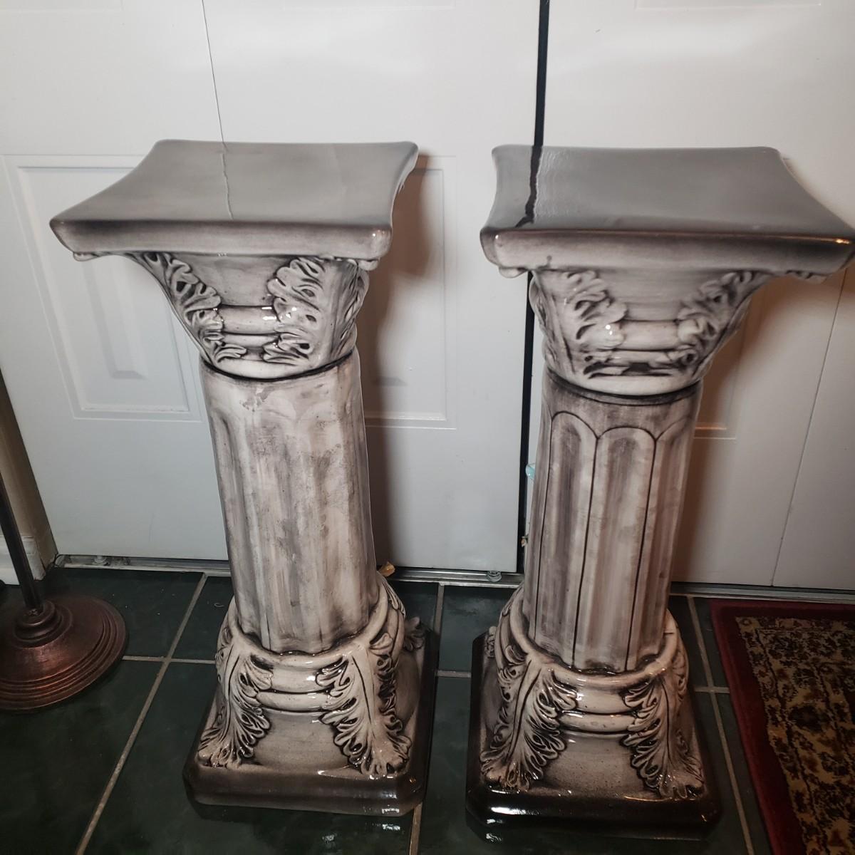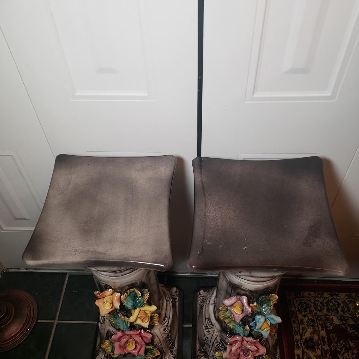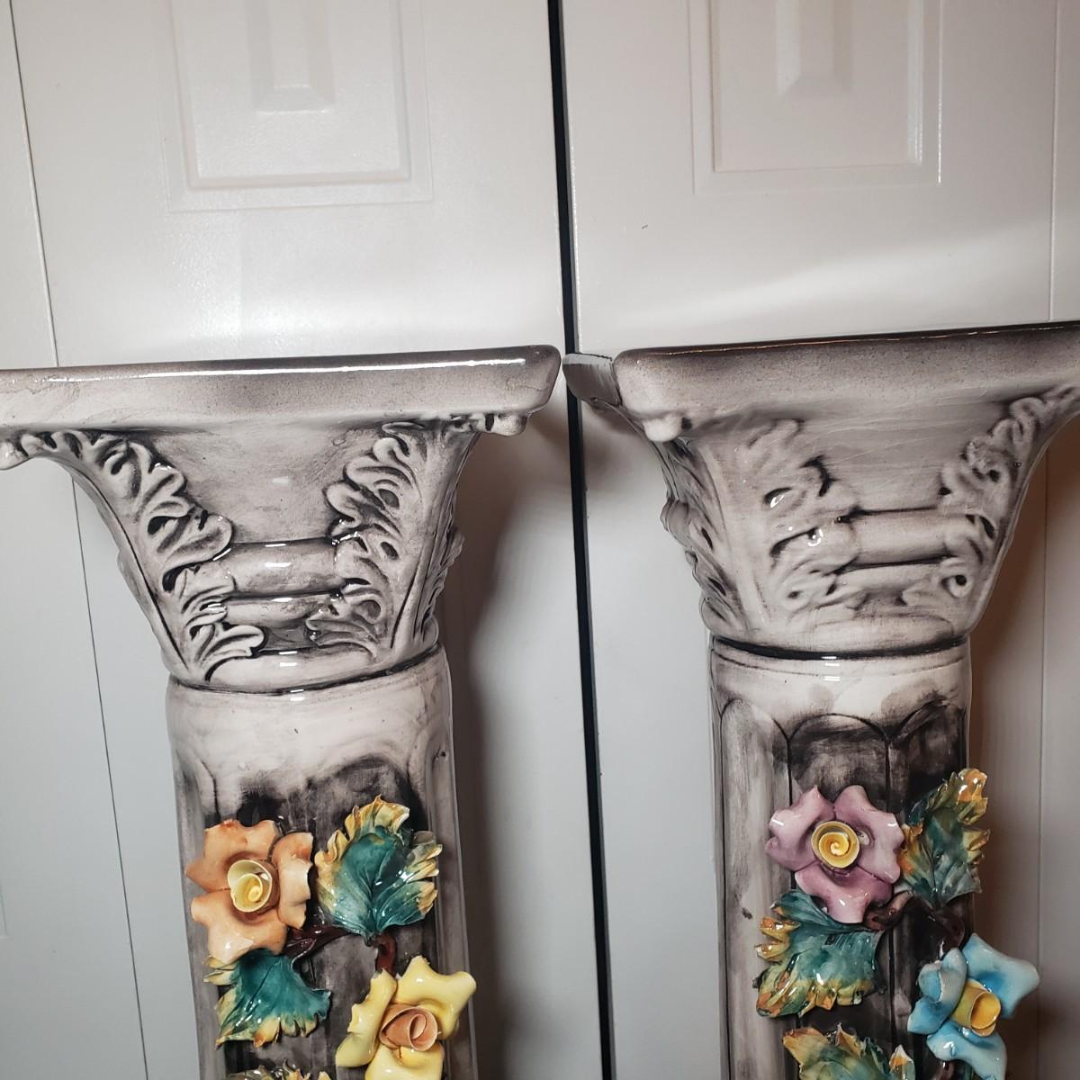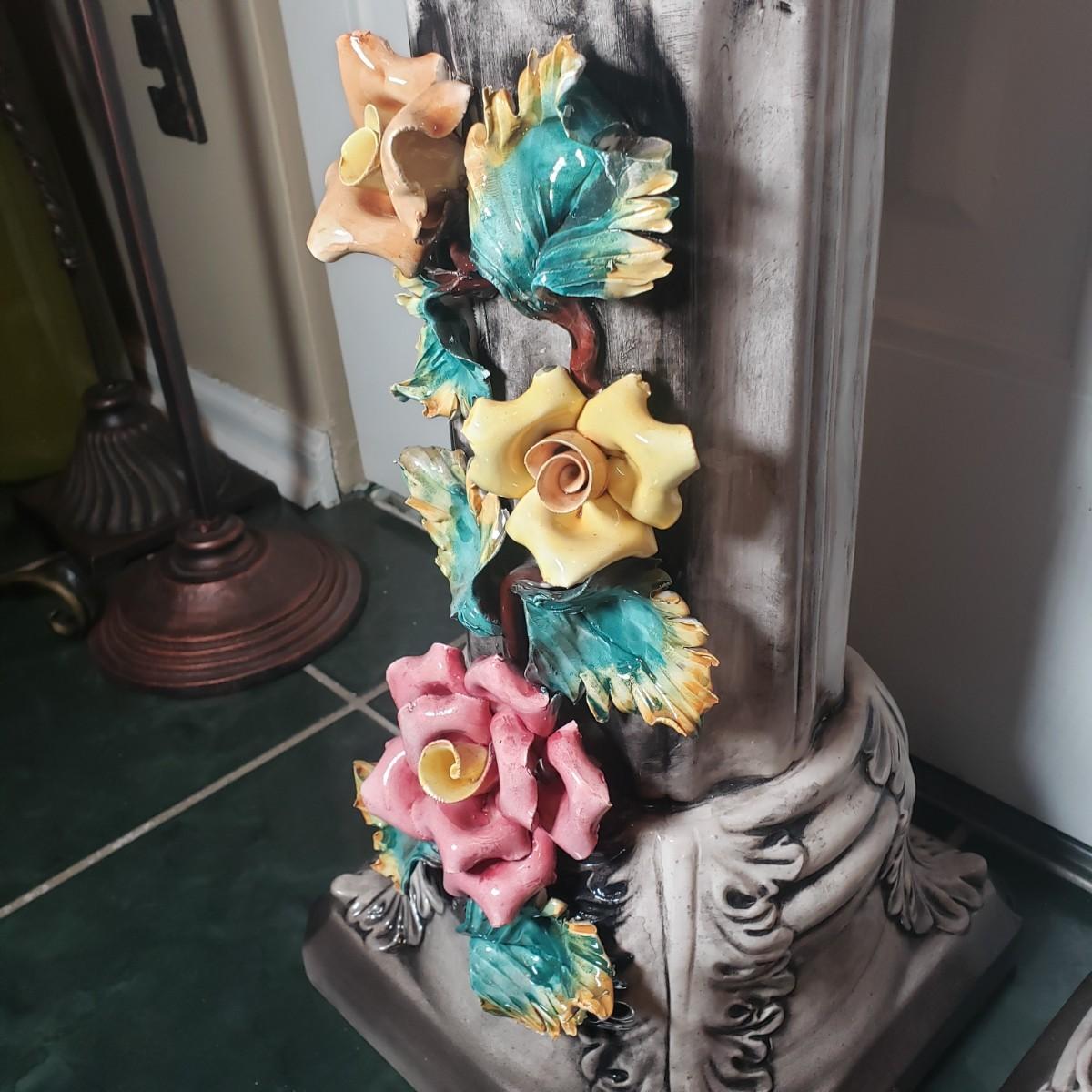 LOT 50: Pair of Gorgeous Italian Ceramic Capodimonte Floral Pedestal/Plant Stands