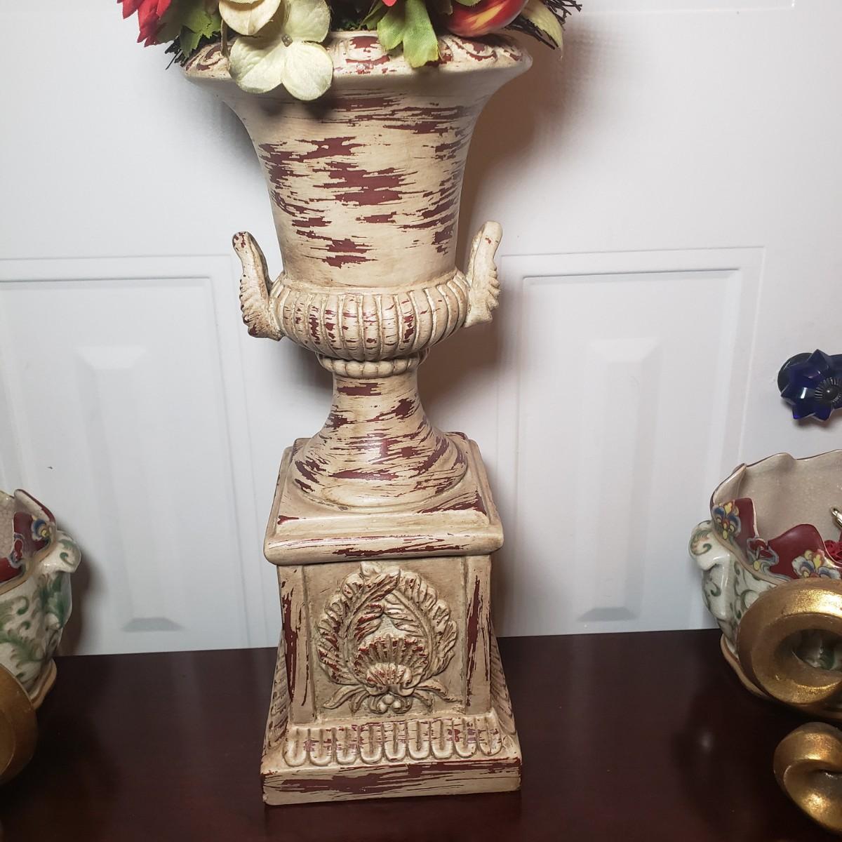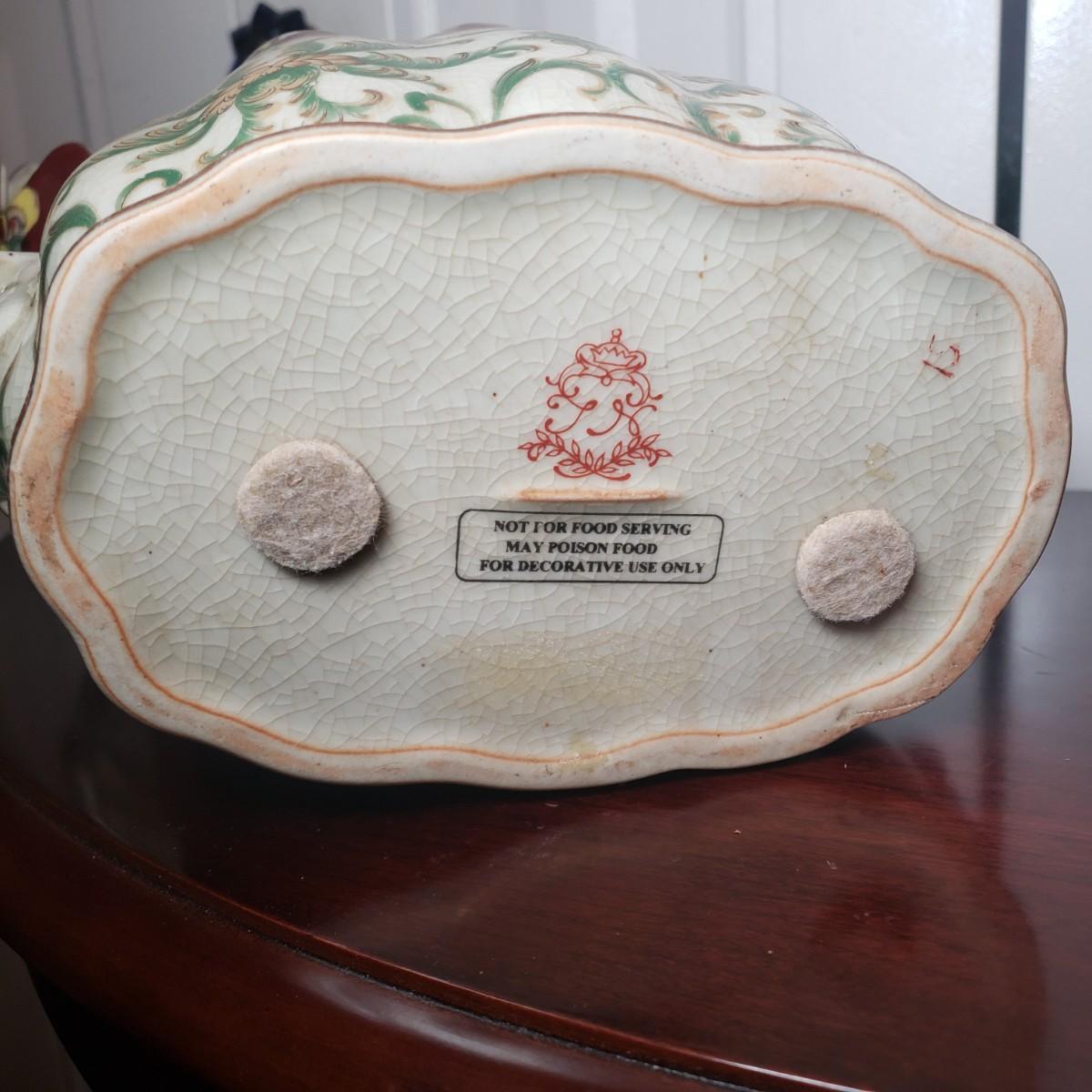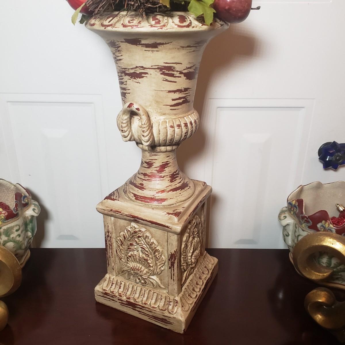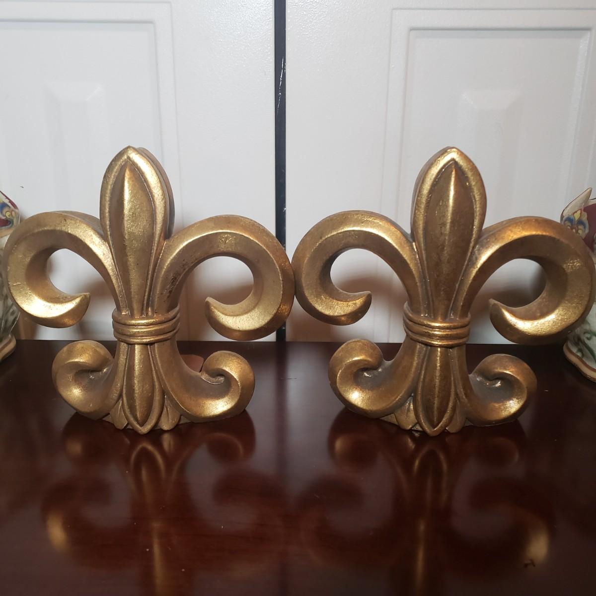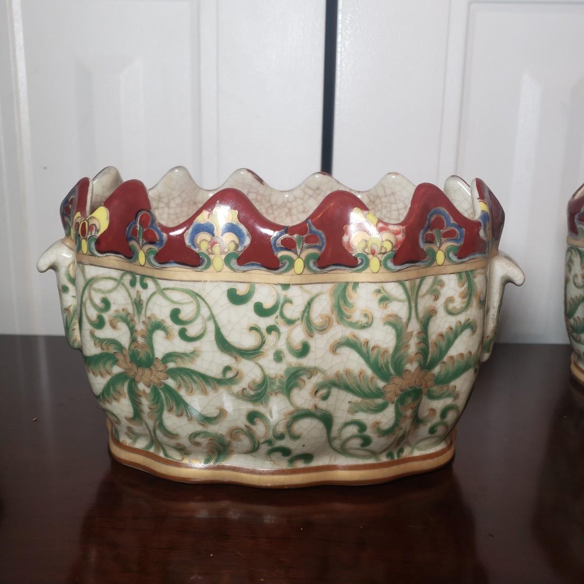 LOT 51: Fleur De Lis Bookends, Chinese Porcelain Planters & Faux Floral Topiary