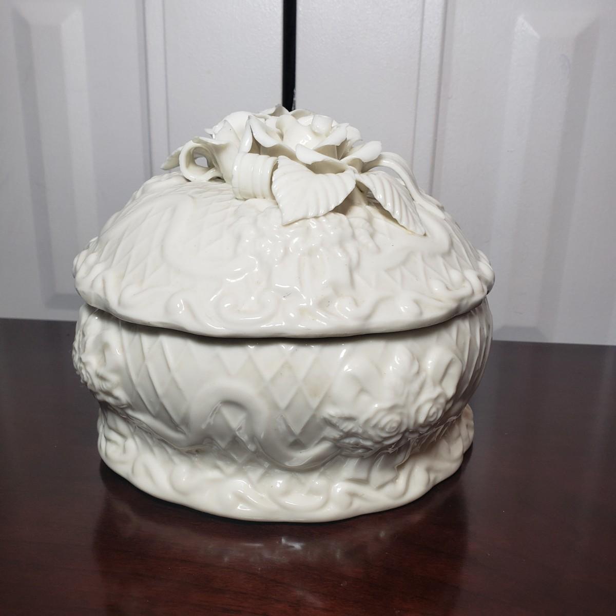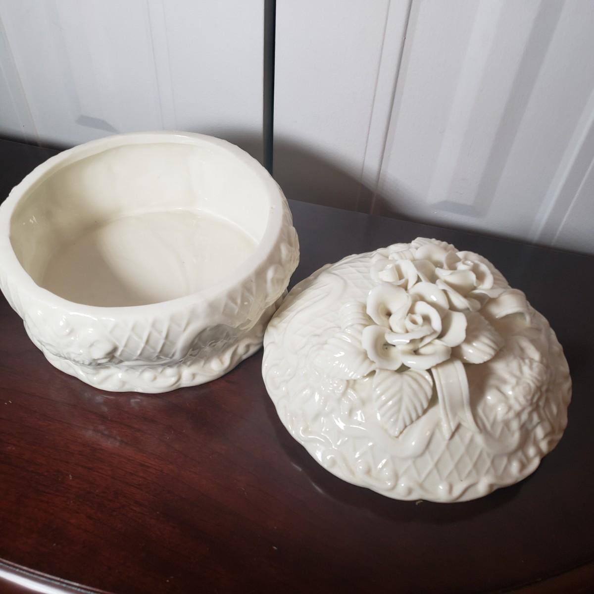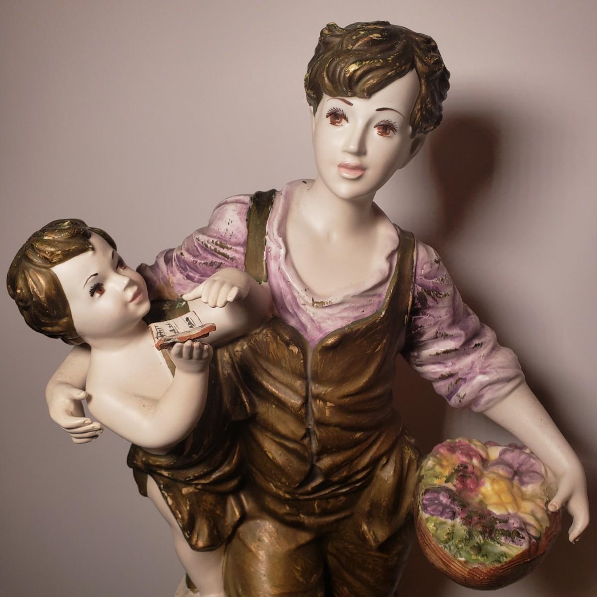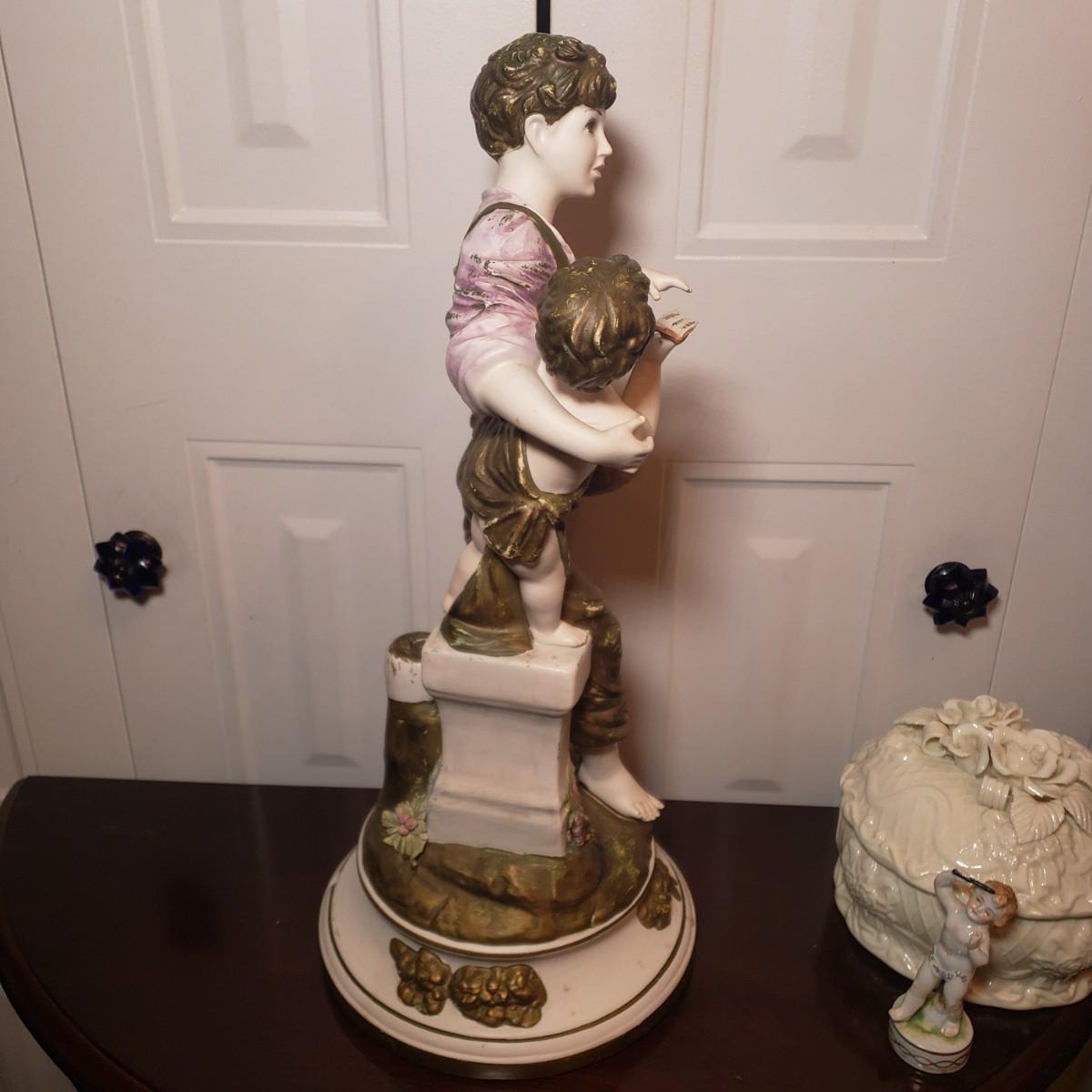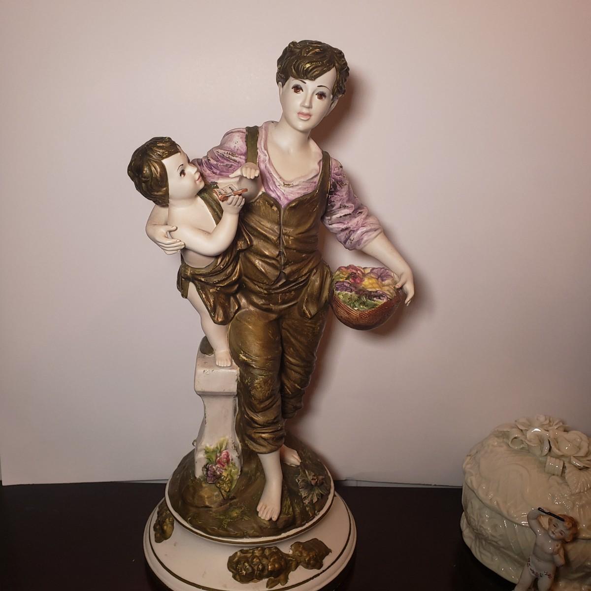 LOT 53: Italian Capodimonte Statue/Lamp Base, Cherub Figurine & Floral Ceramic Box