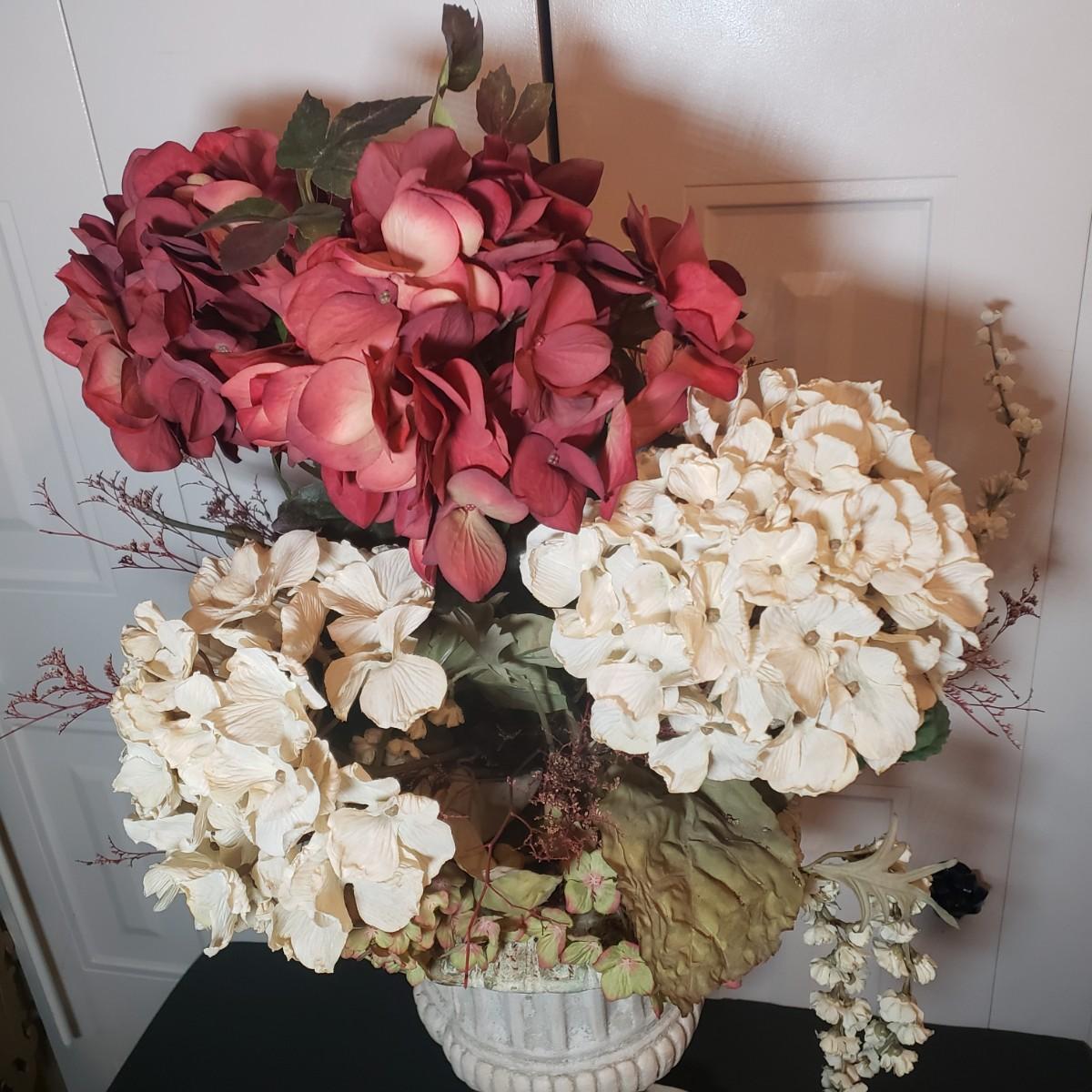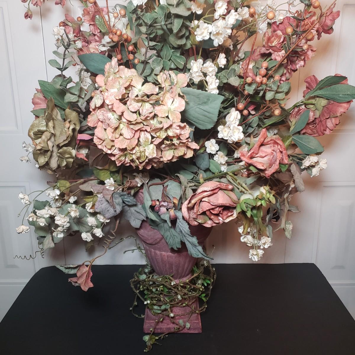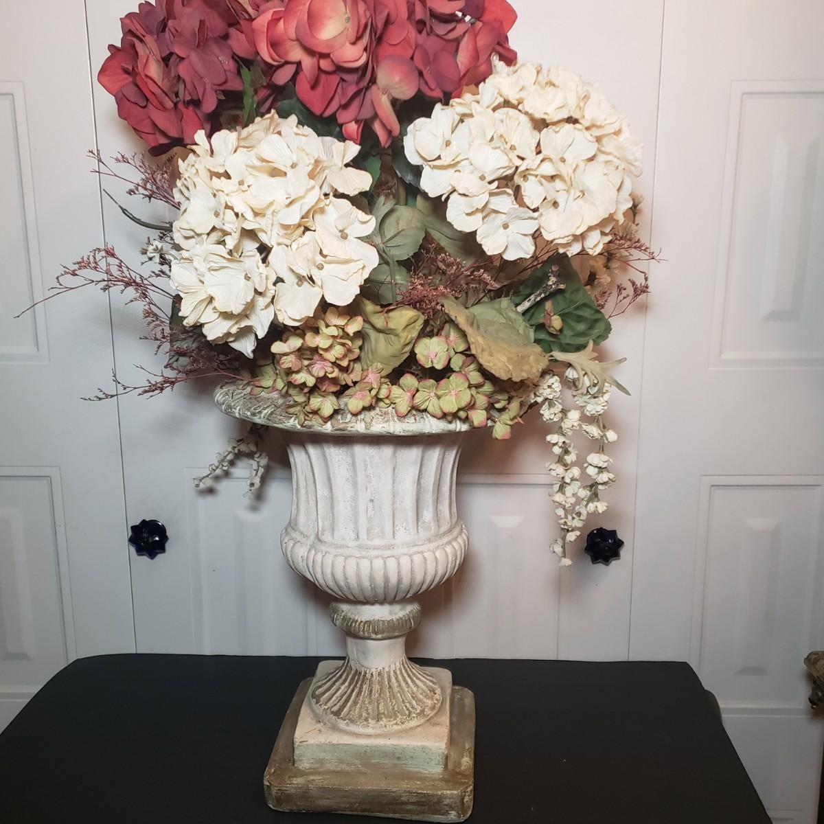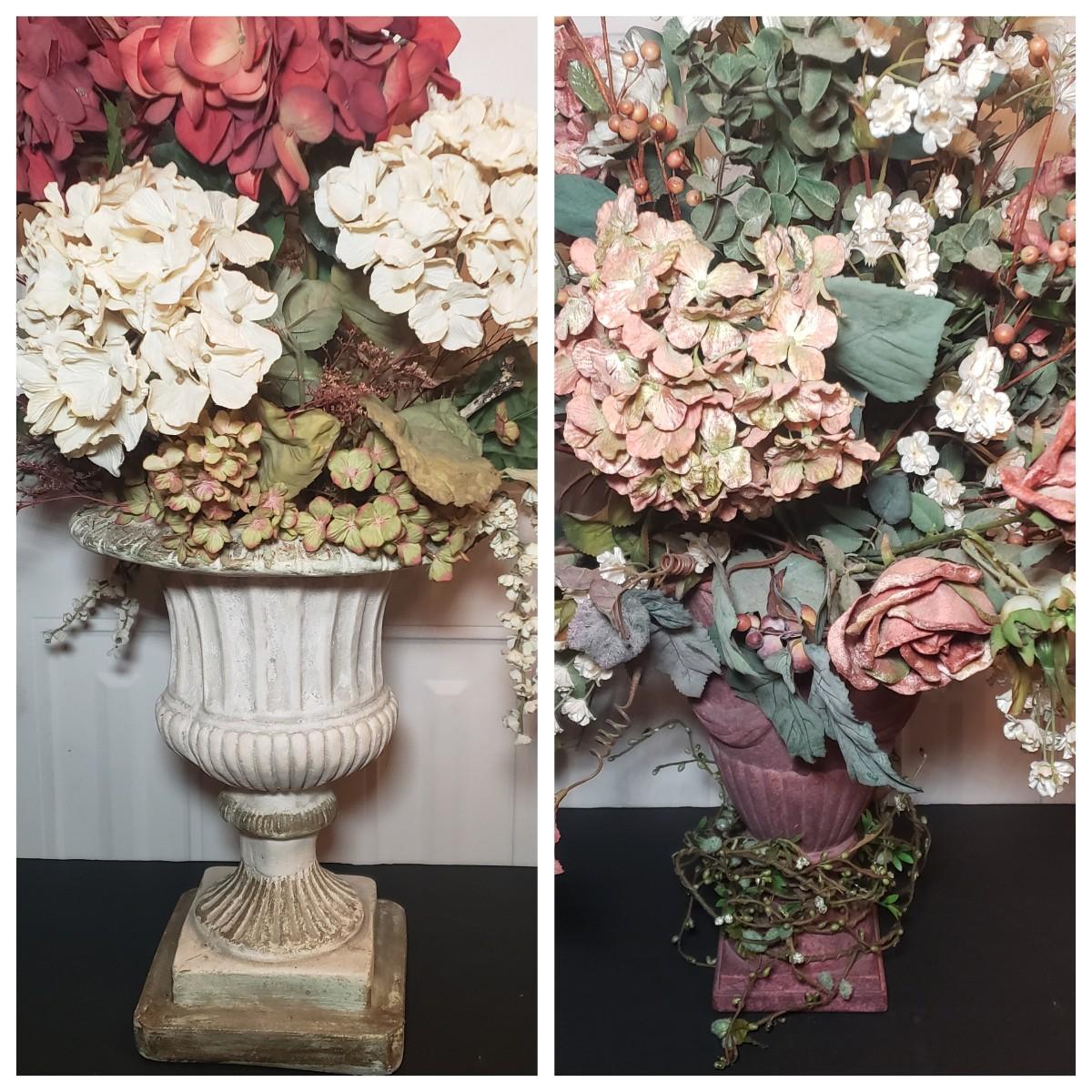 LOT 57: Beautiful Faux Floral Arrangements in Beautiful Urn Style Planters