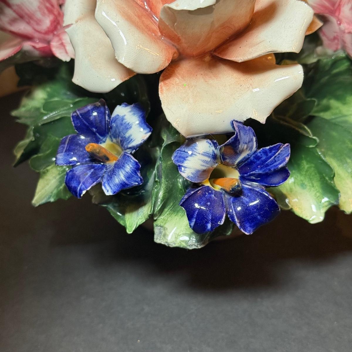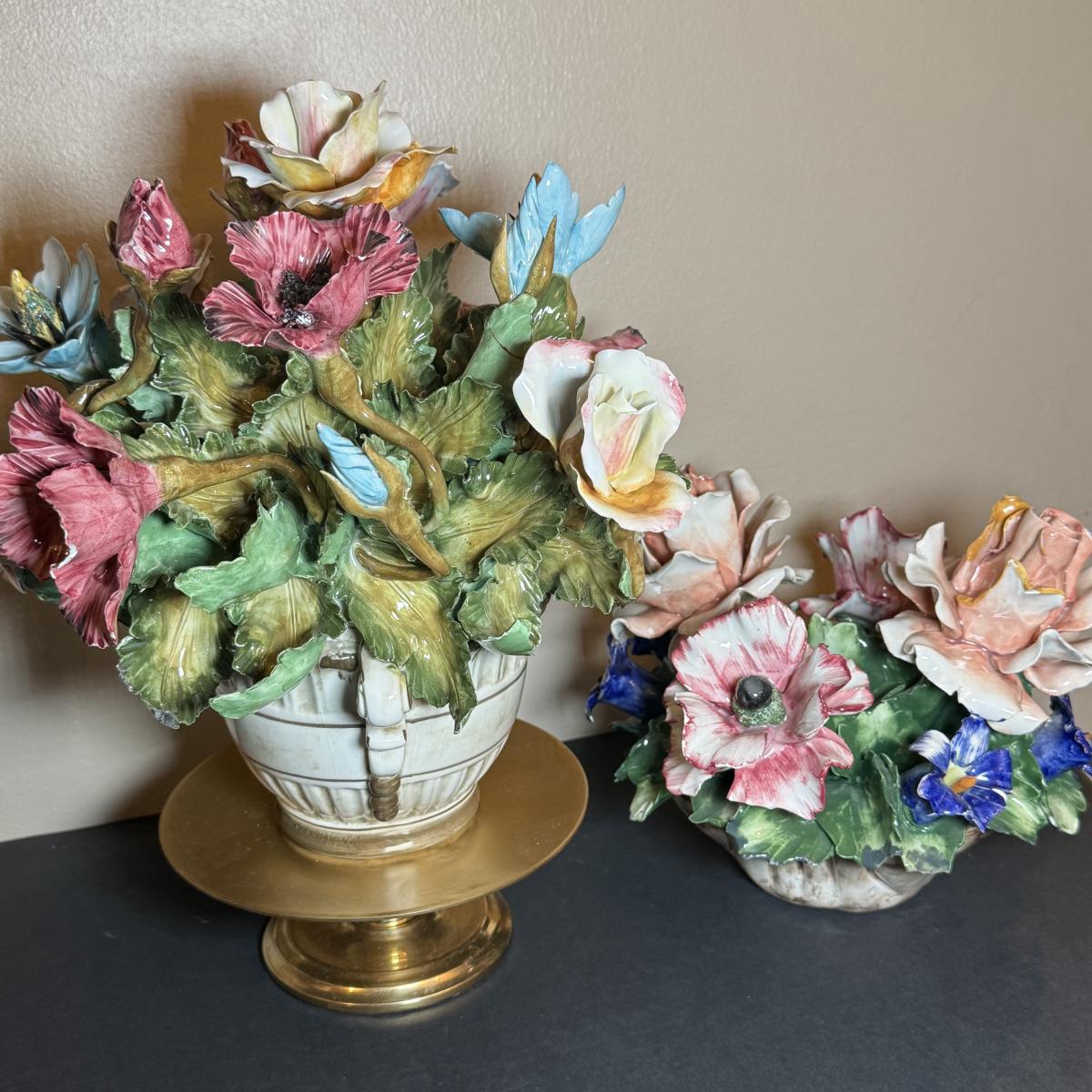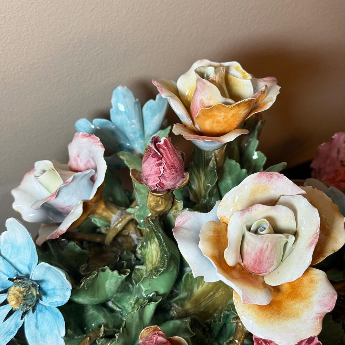 LOT 66: Vintage Italian Flower Basket Porcelain Sculptures