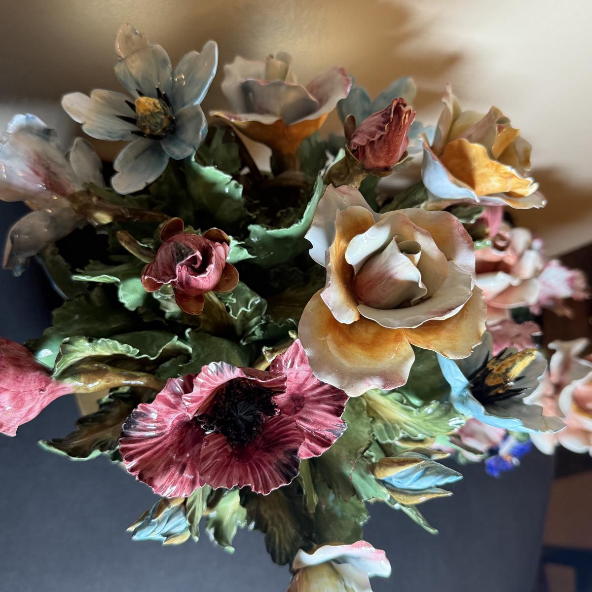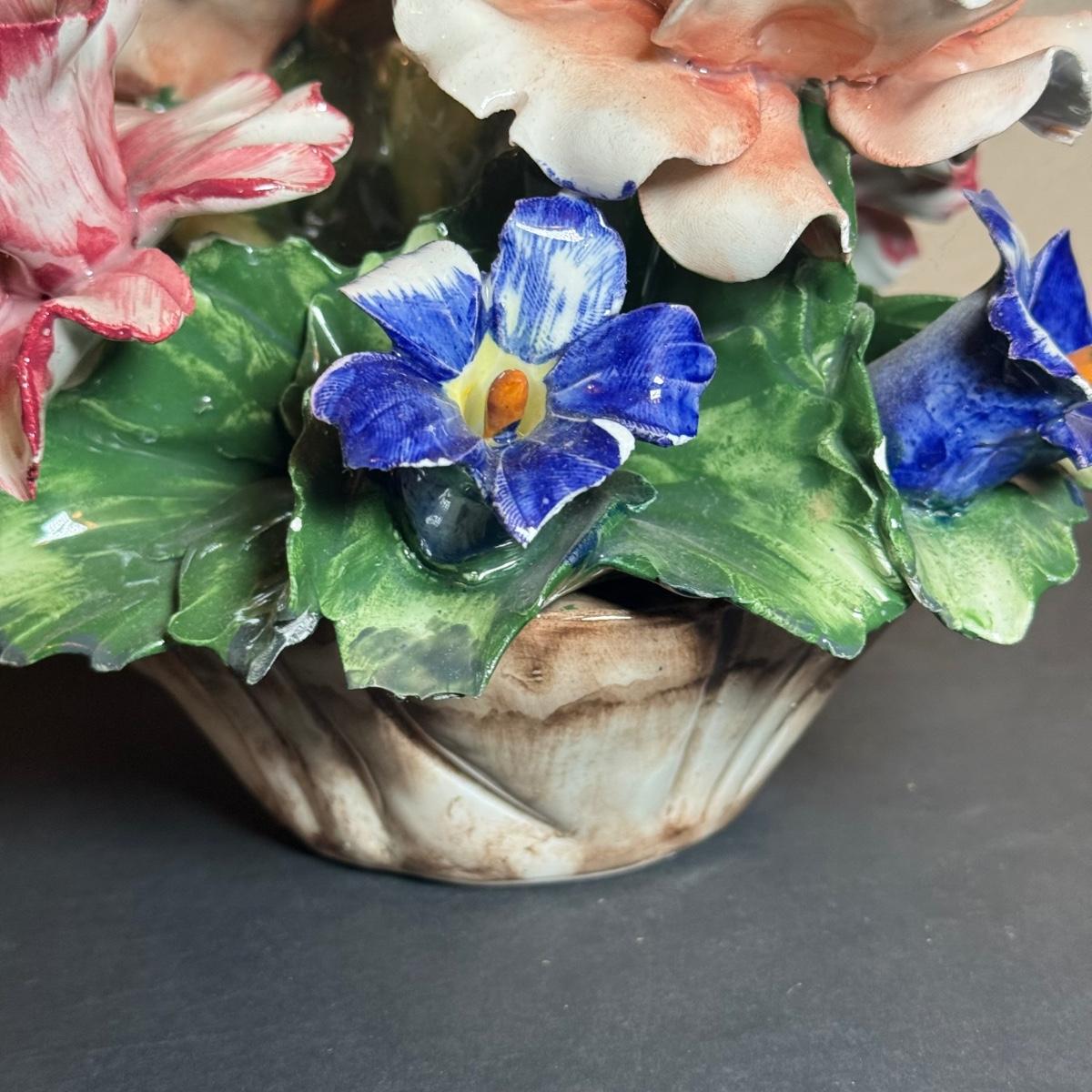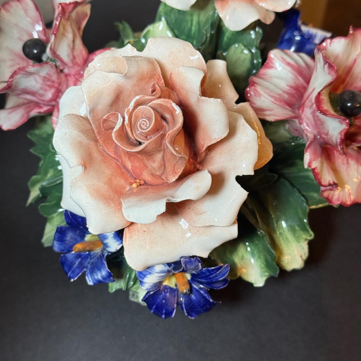 LOT 66: Vintage Italian Flower Basket Porcelain Sculptures