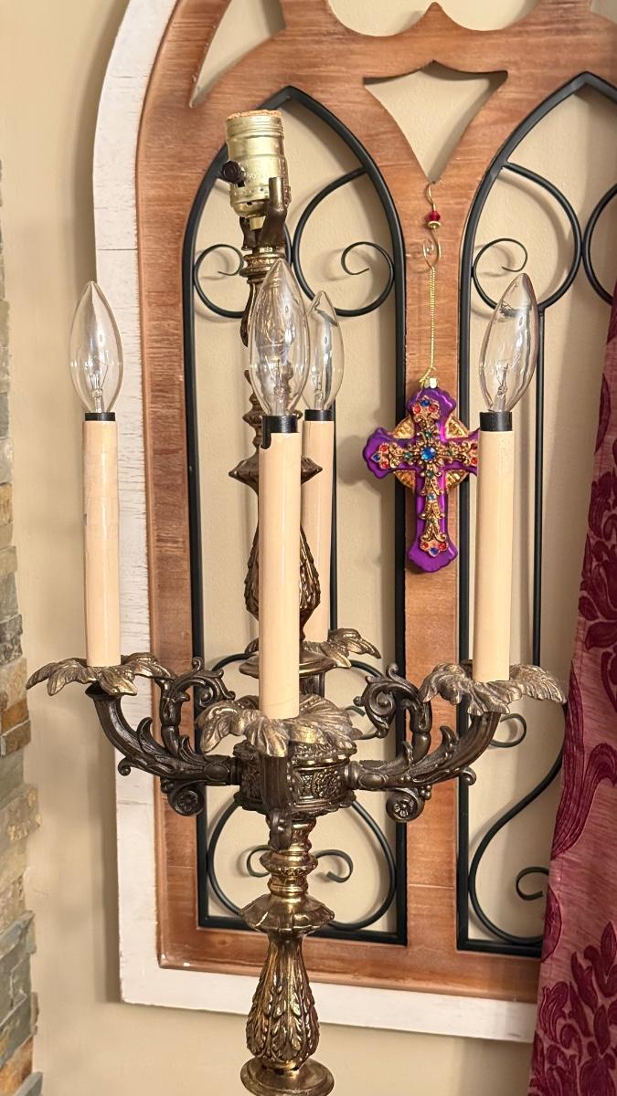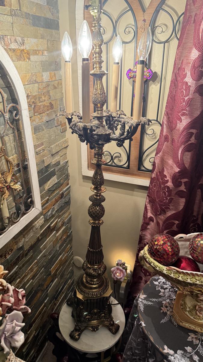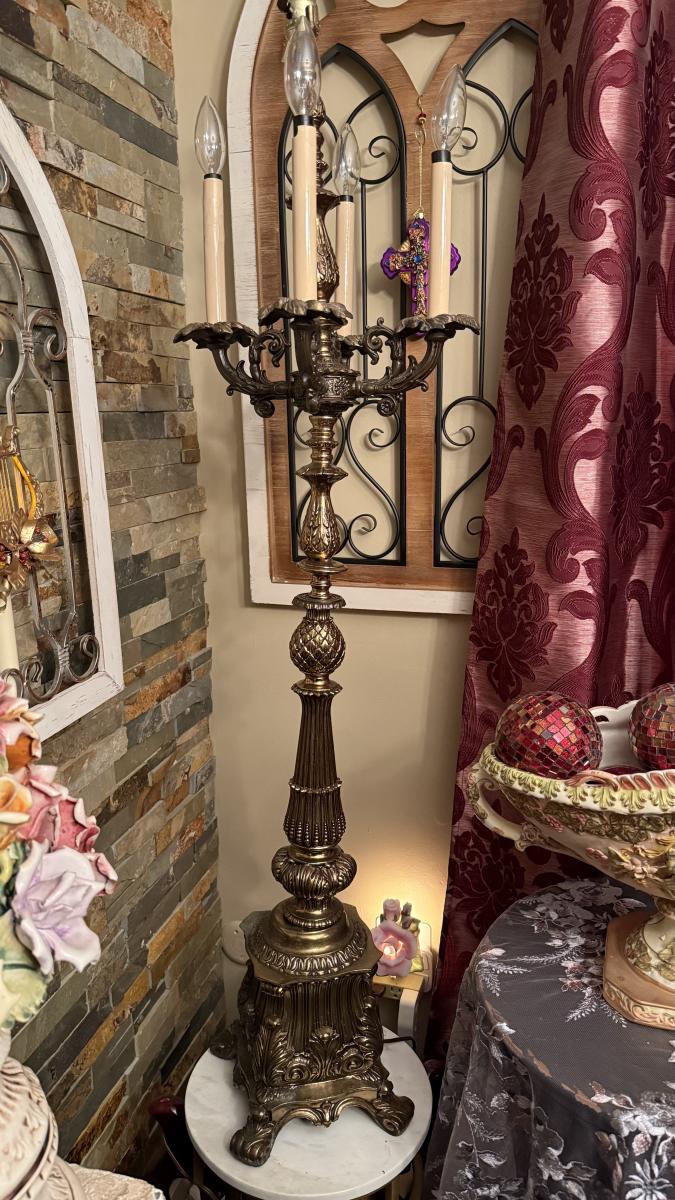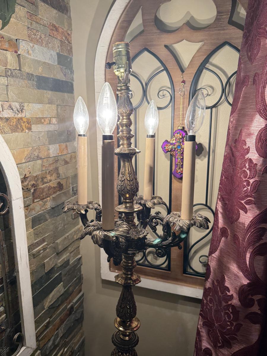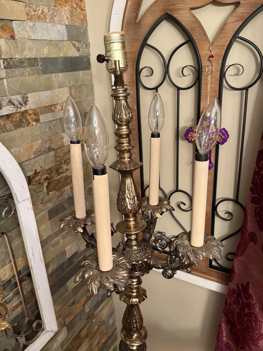 LOT 68: Tall Vintage Brass Candlestick Holder Style Lamp