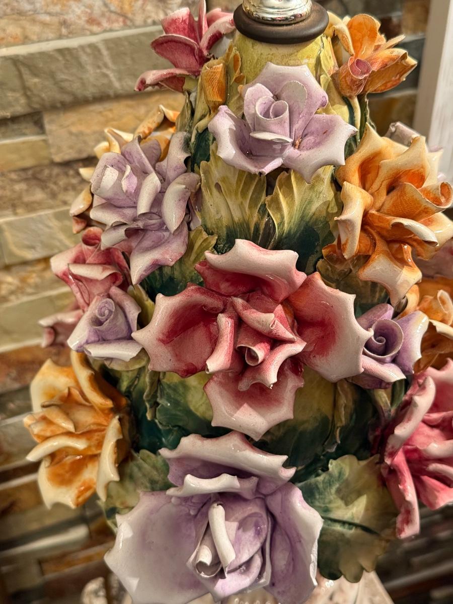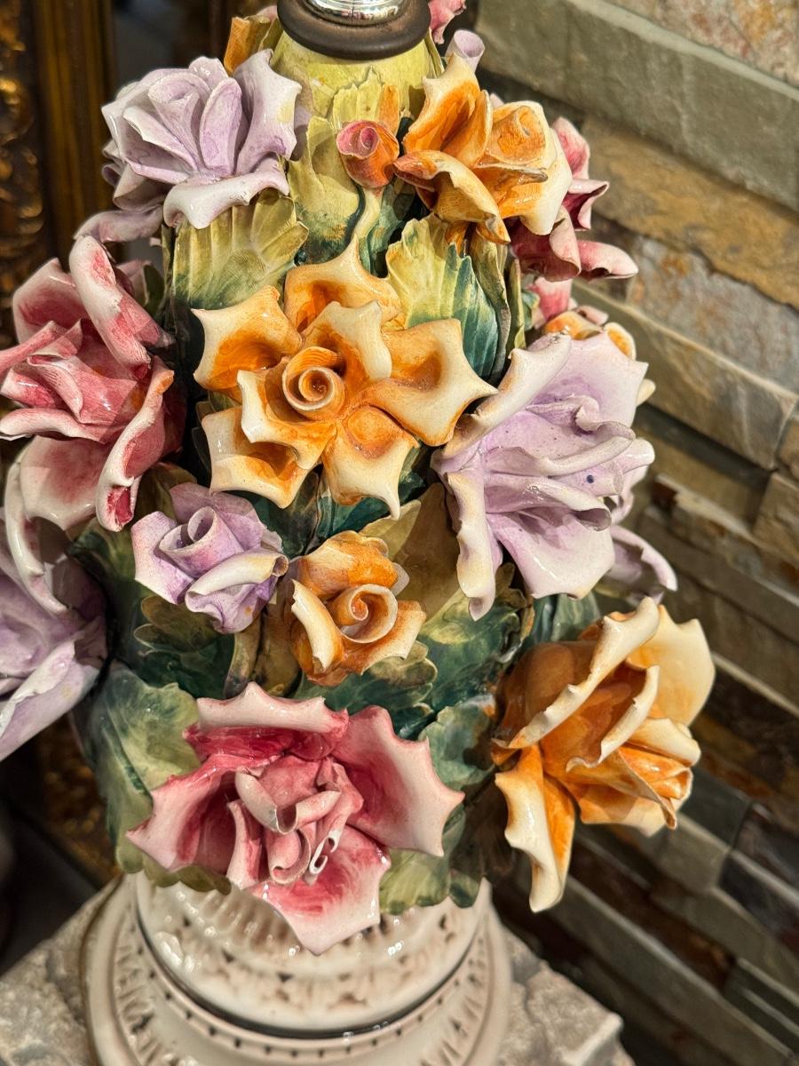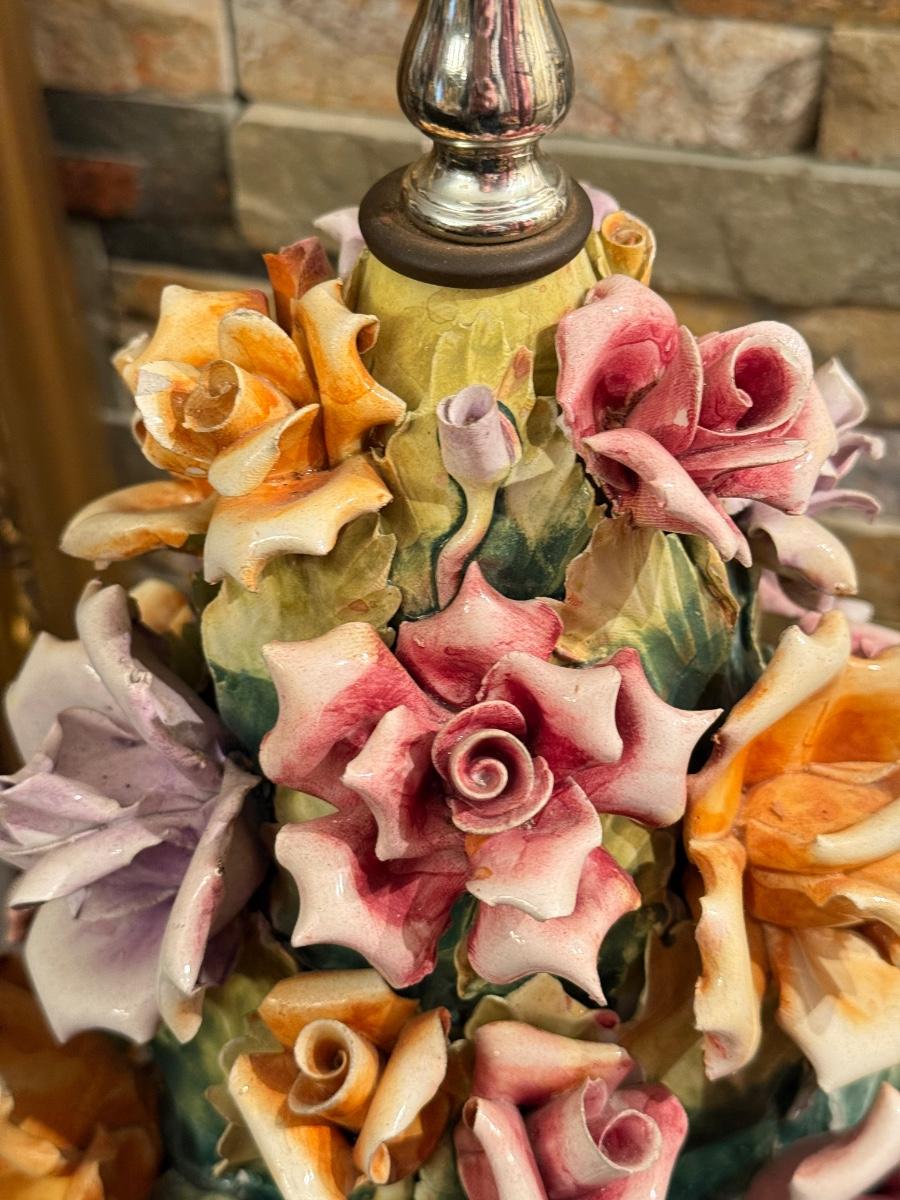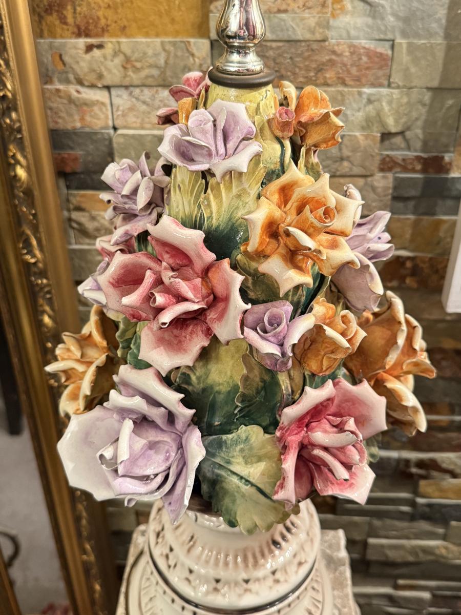 LOT 69: Vintage Capodimonte Style Bouquet Porcelain Sculpture Lamp