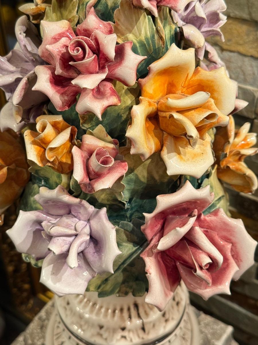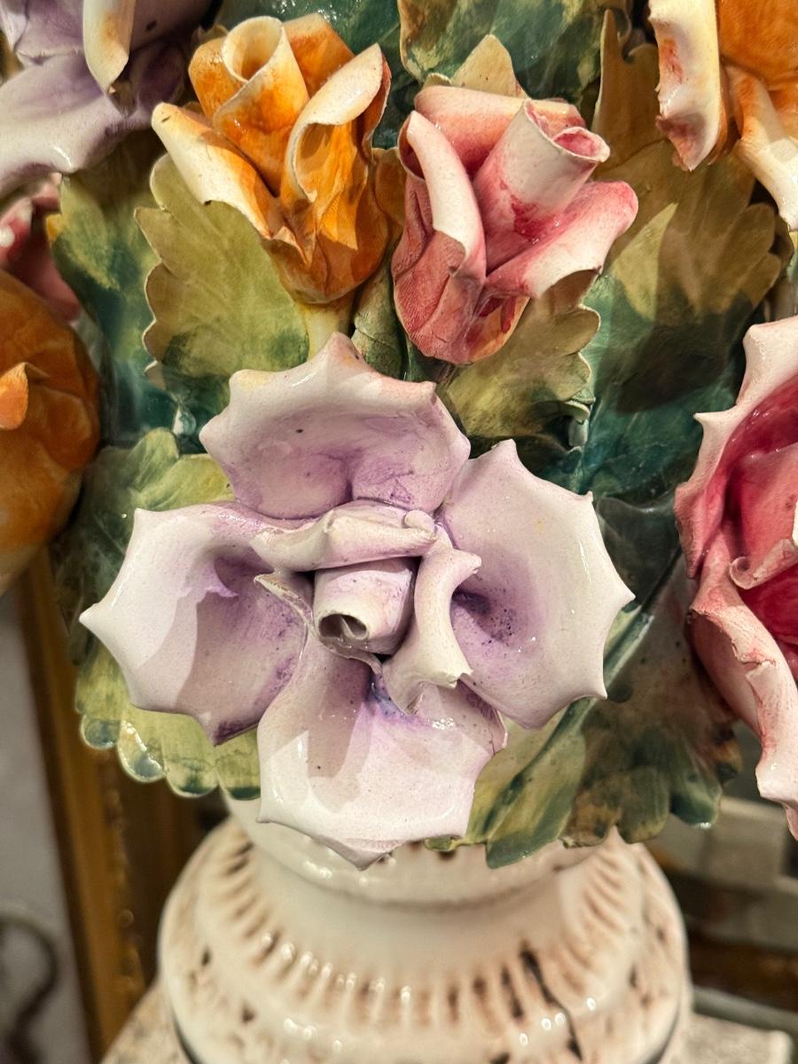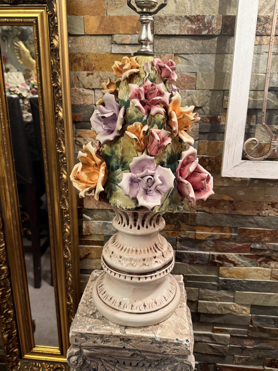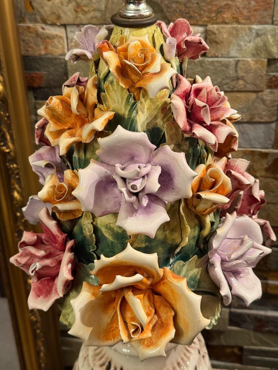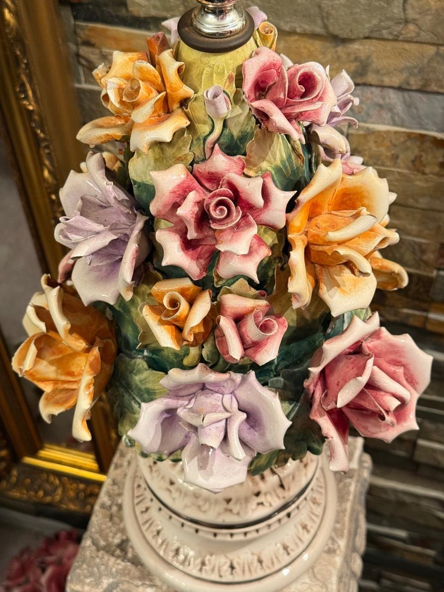 LOT 69: Vintage Capodimonte Style Bouquet Porcelain Sculpture Lamp