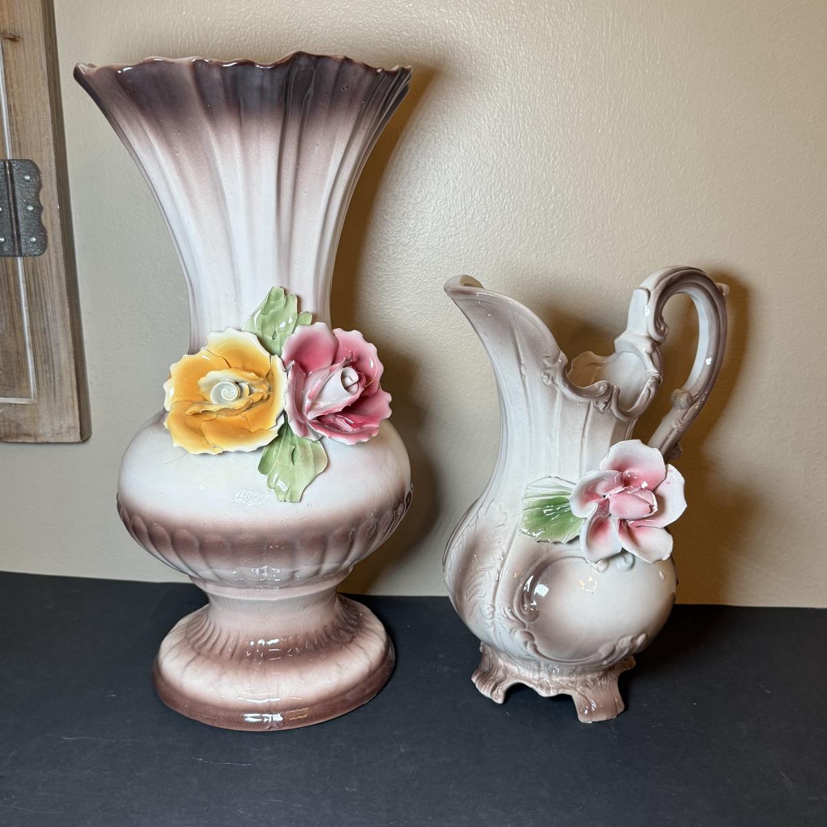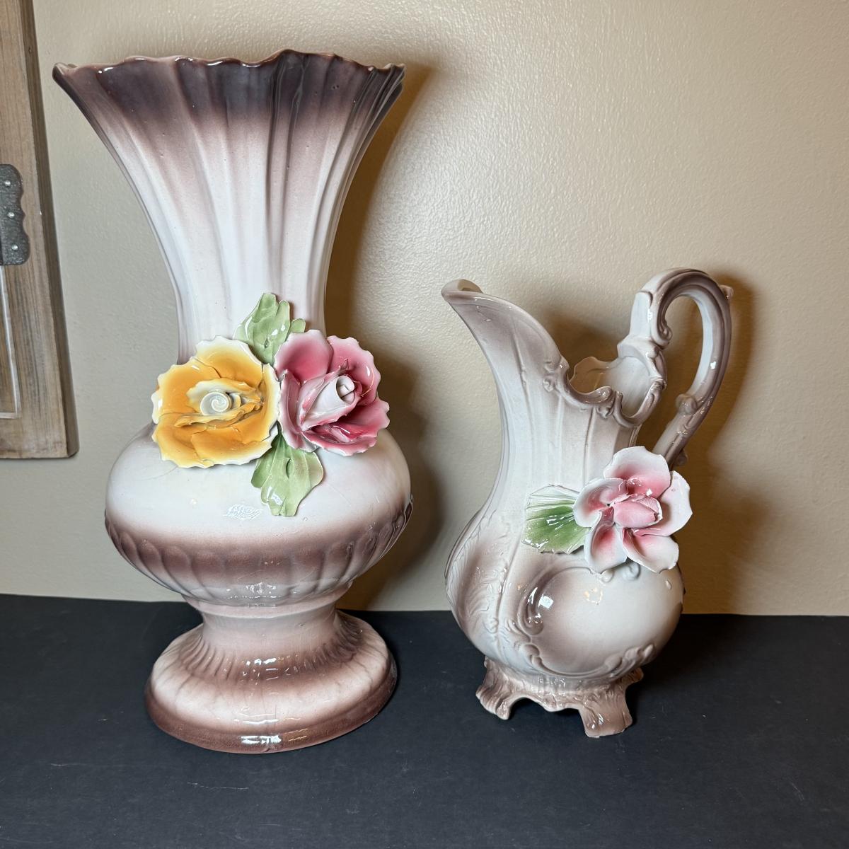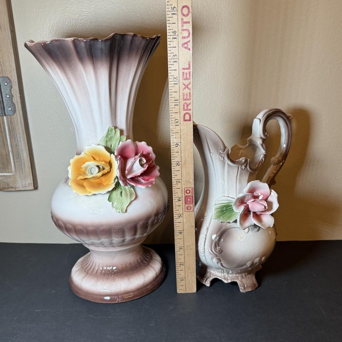 LOT 75: Vintage Capodimonte Porcelain Vase & Ewer