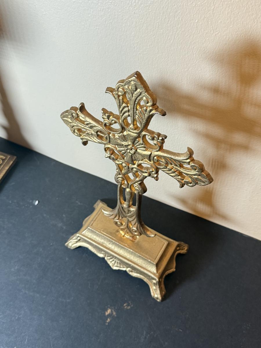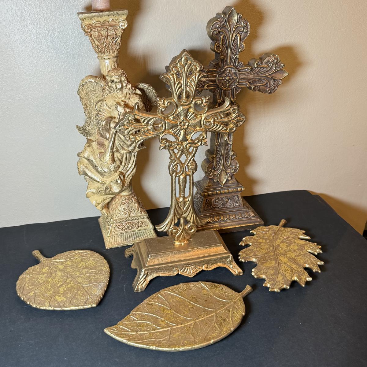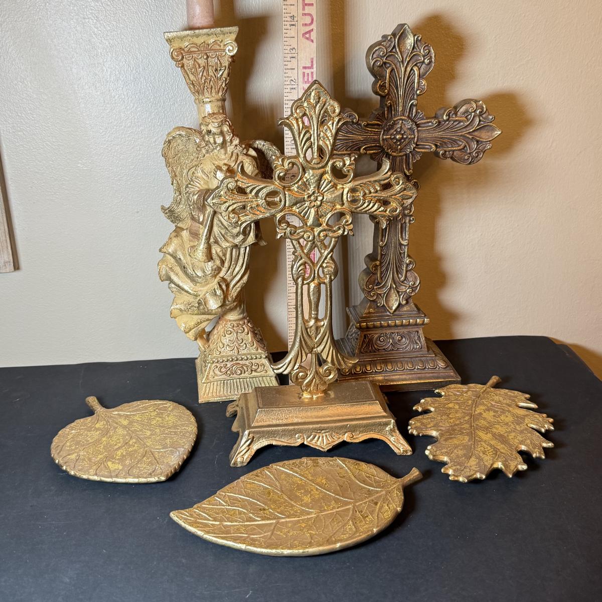LOT 78: Metal Cross, Angel Candle Holder & More