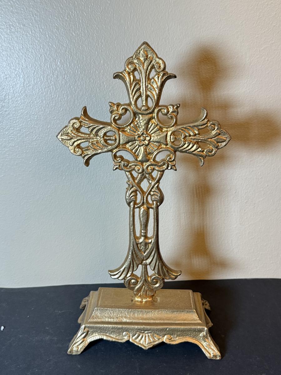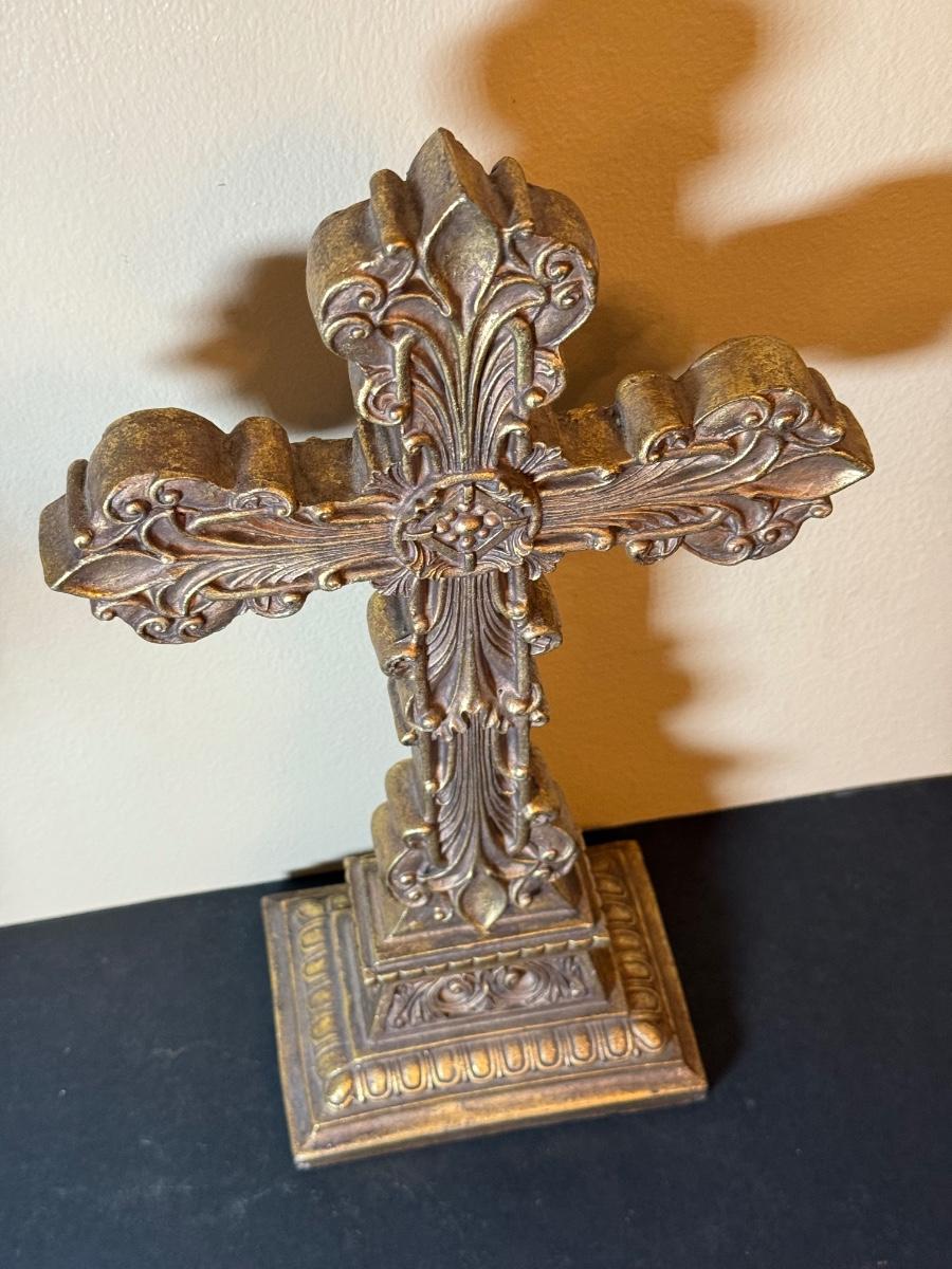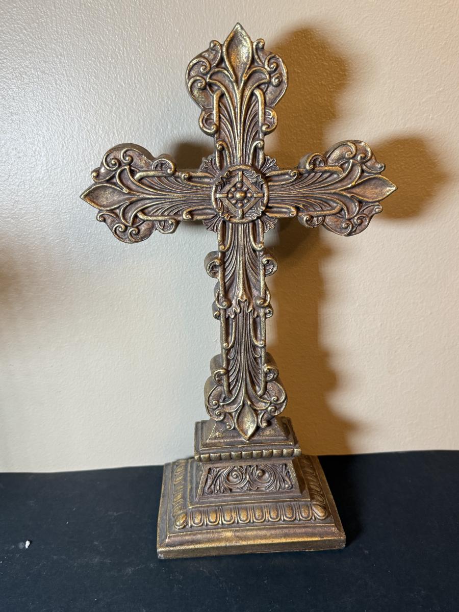LOT 78: Metal Cross, Angel Candle Holder & More