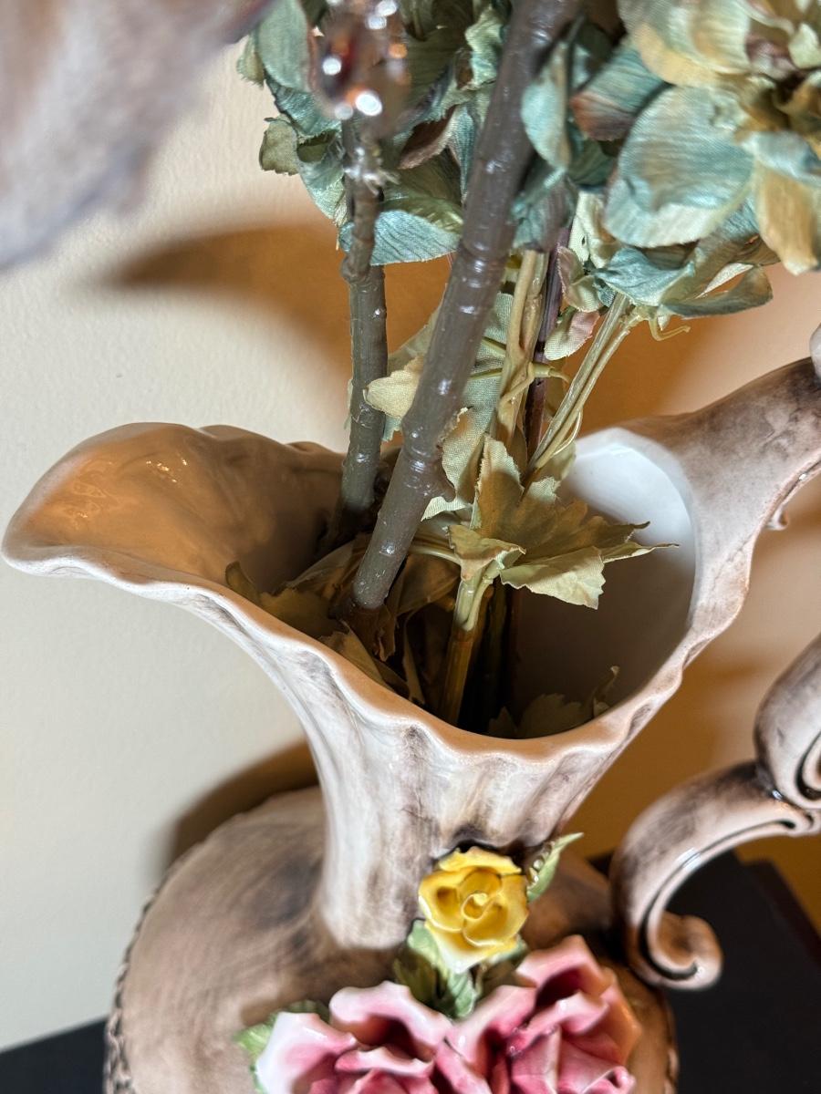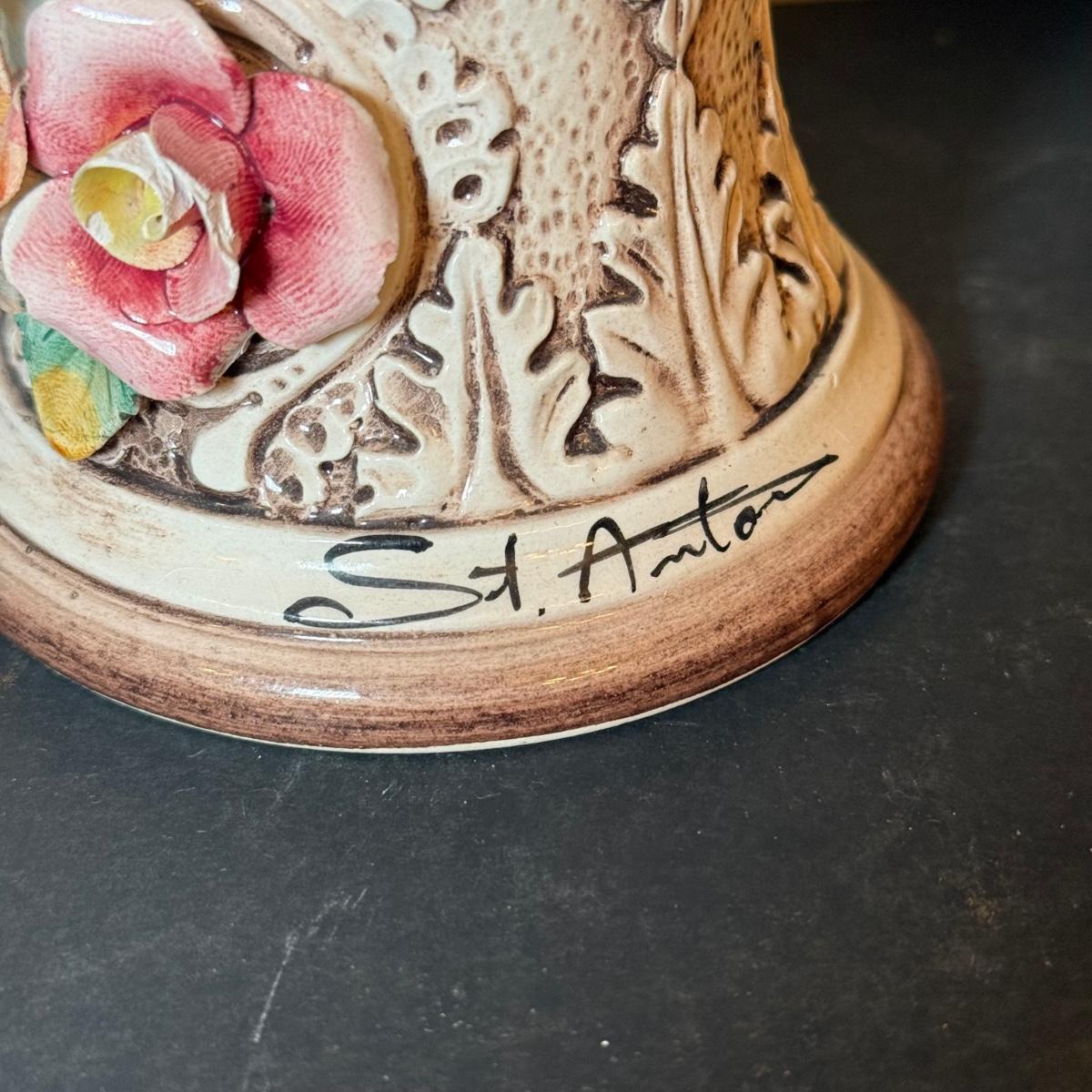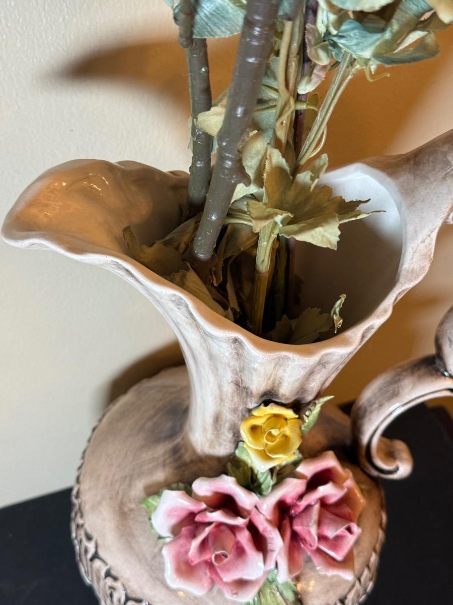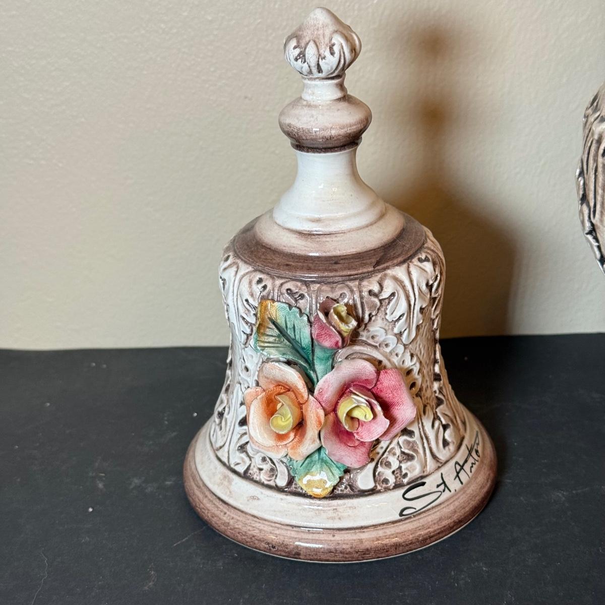 LOT 81: Vintage Signed Capodimonte Porcelain Bell & Vintage Italian Floral Sculpture Ewer Vase