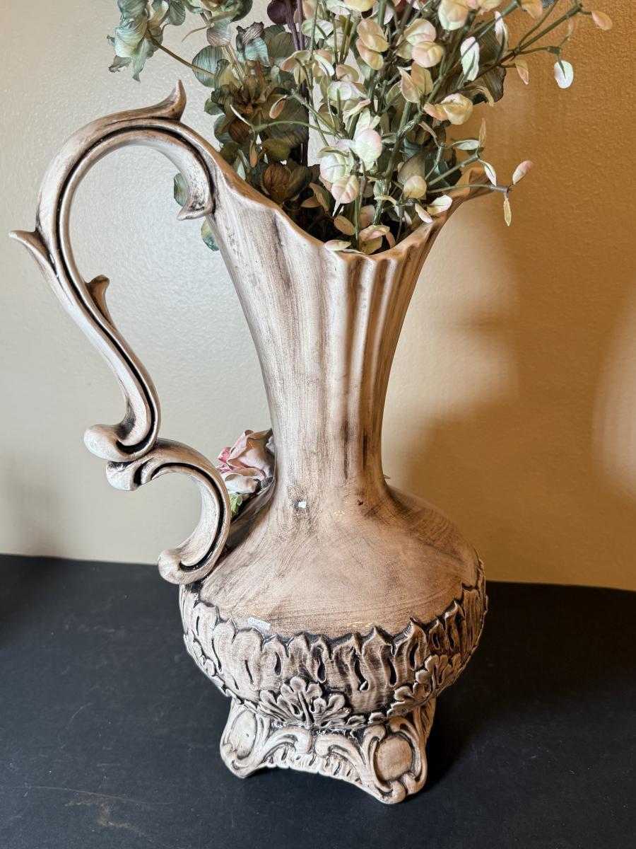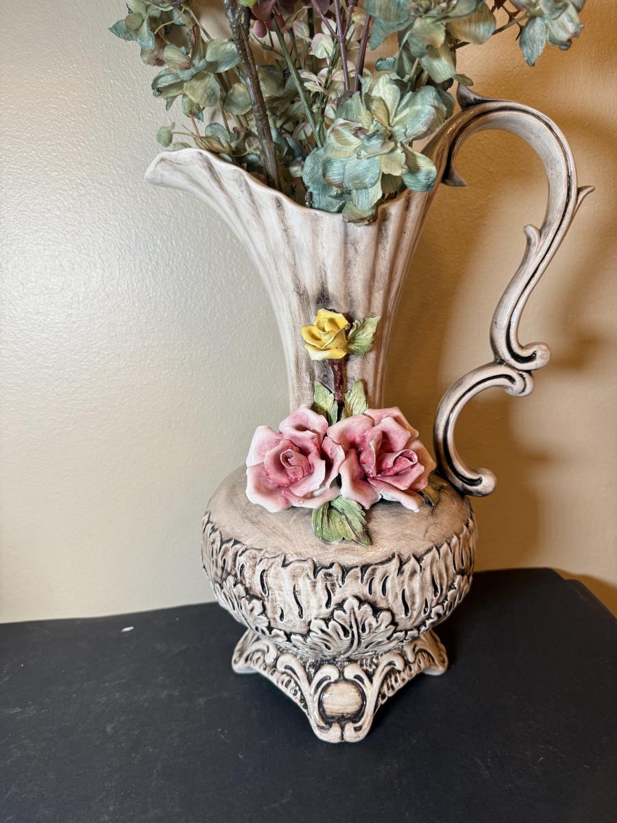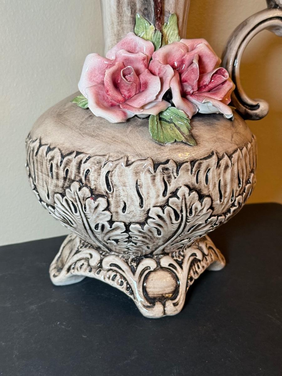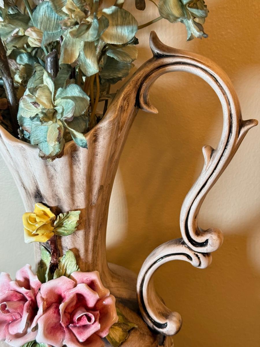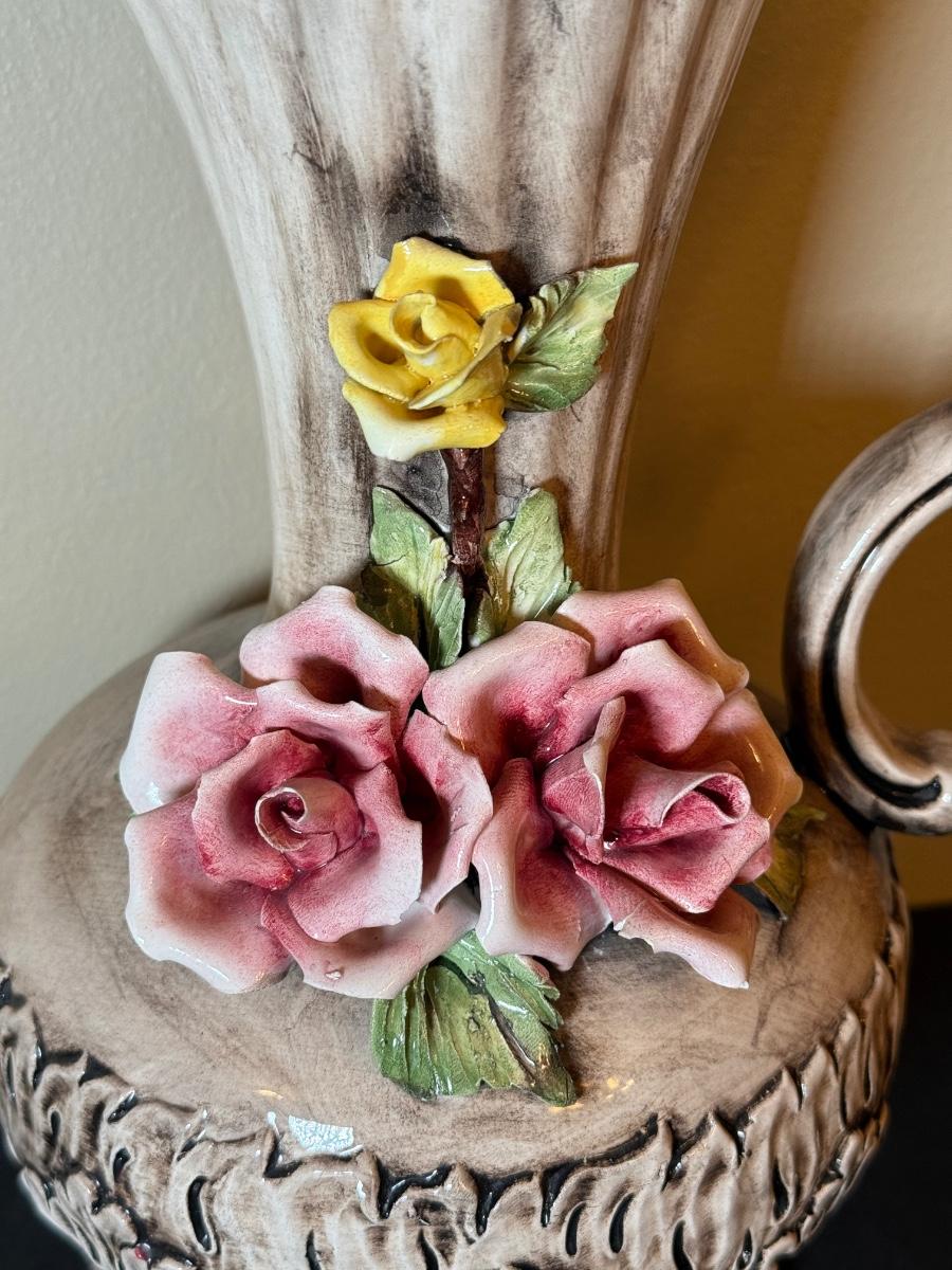 LOT 81: Vintage Signed Capodimonte Porcelain Bell & Vintage Italian Floral Sculpture Ewer Vase