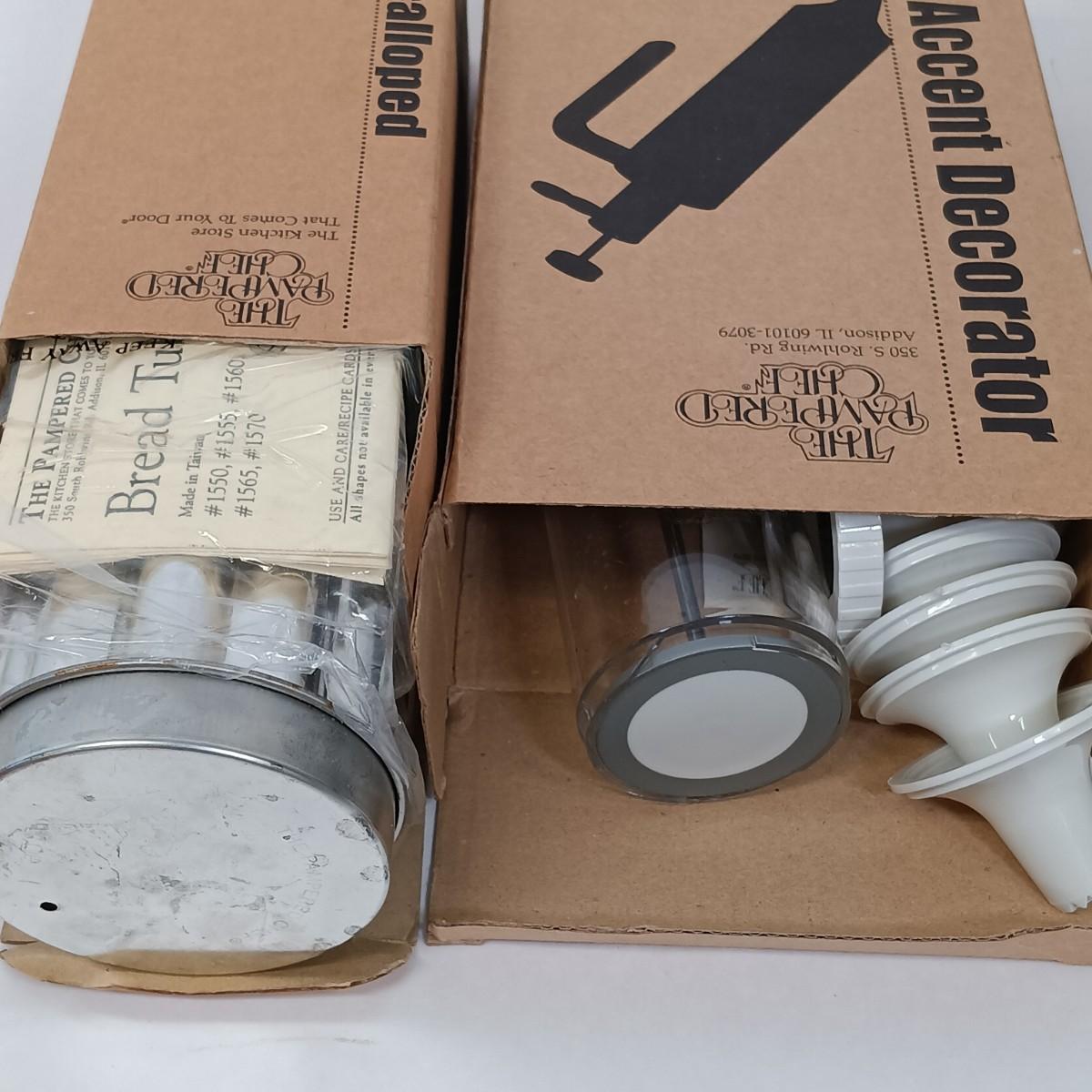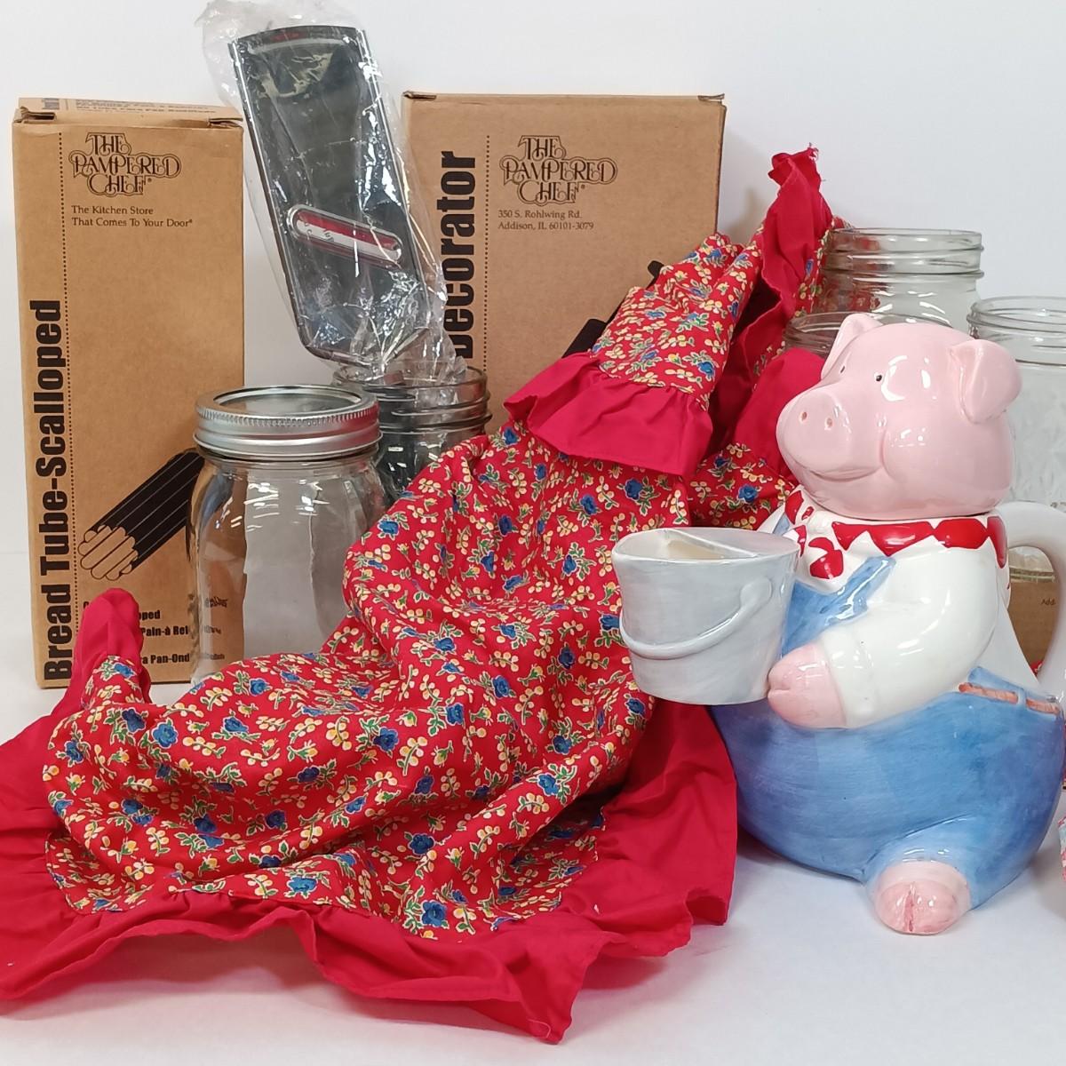 LOT 4: The Pampered Chef Easy Accent Decorator, Bread Tube and Bottle Set with Russ Pig Teapot & More