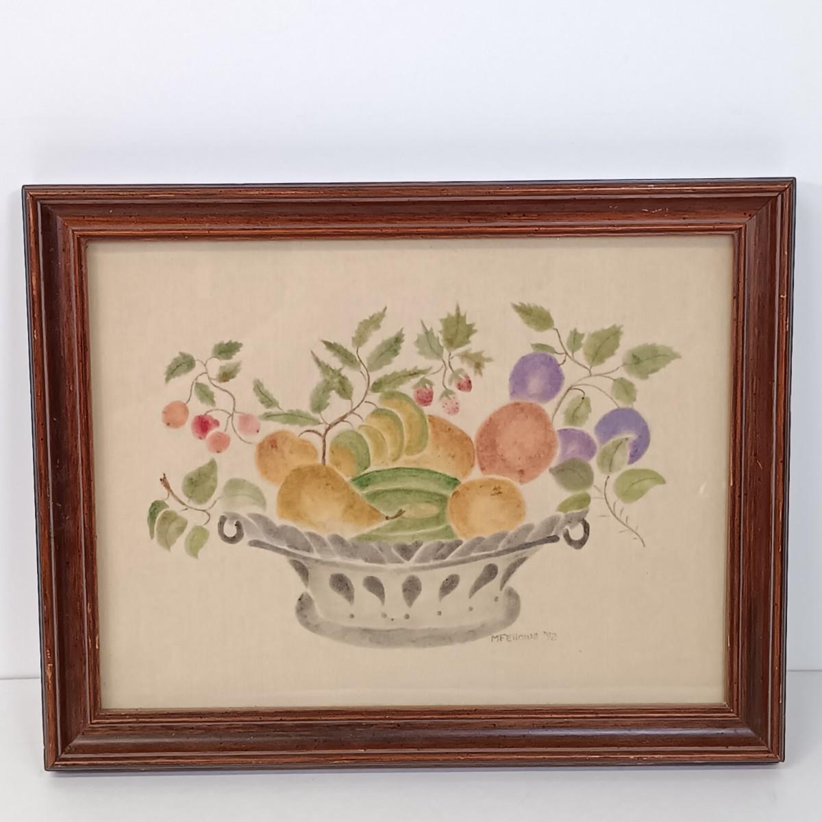 *An original vintage piece of signed Folk Art (a still life of fruit in a bowl, in the 'Theorem' style of painting, popular in the 19th century)