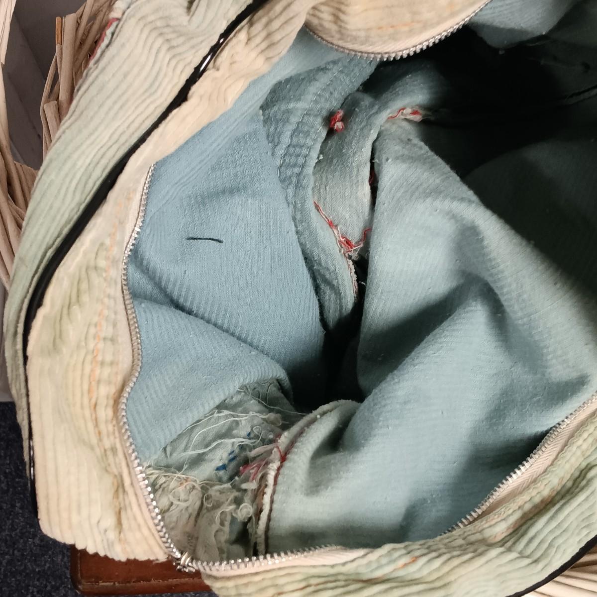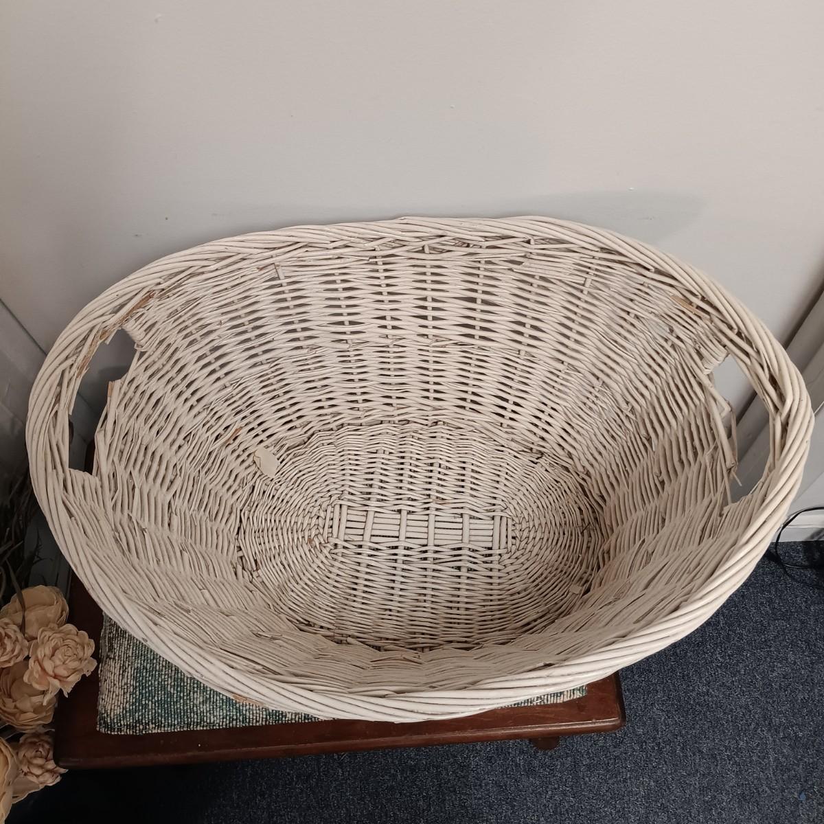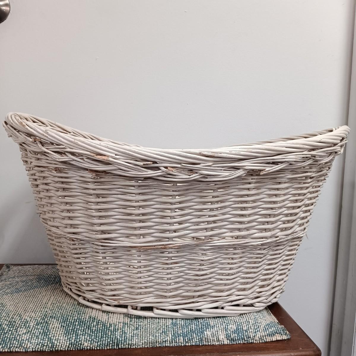 LOT 20: Wicker Basket, Corduroy Jeans Bag, Vintage dressing stool/table & More