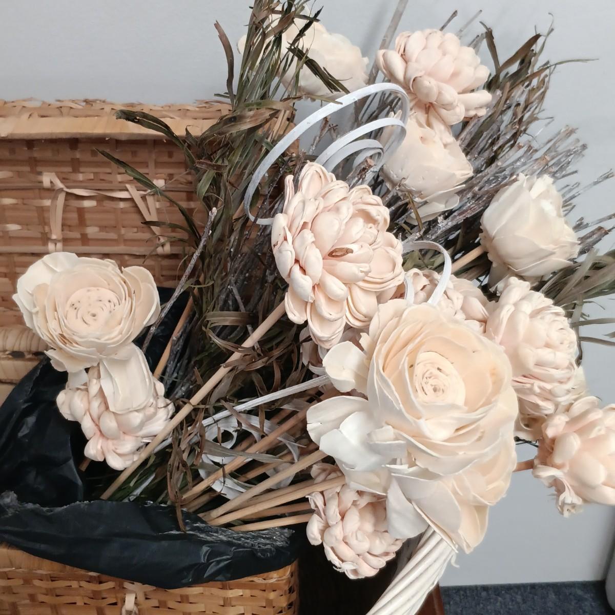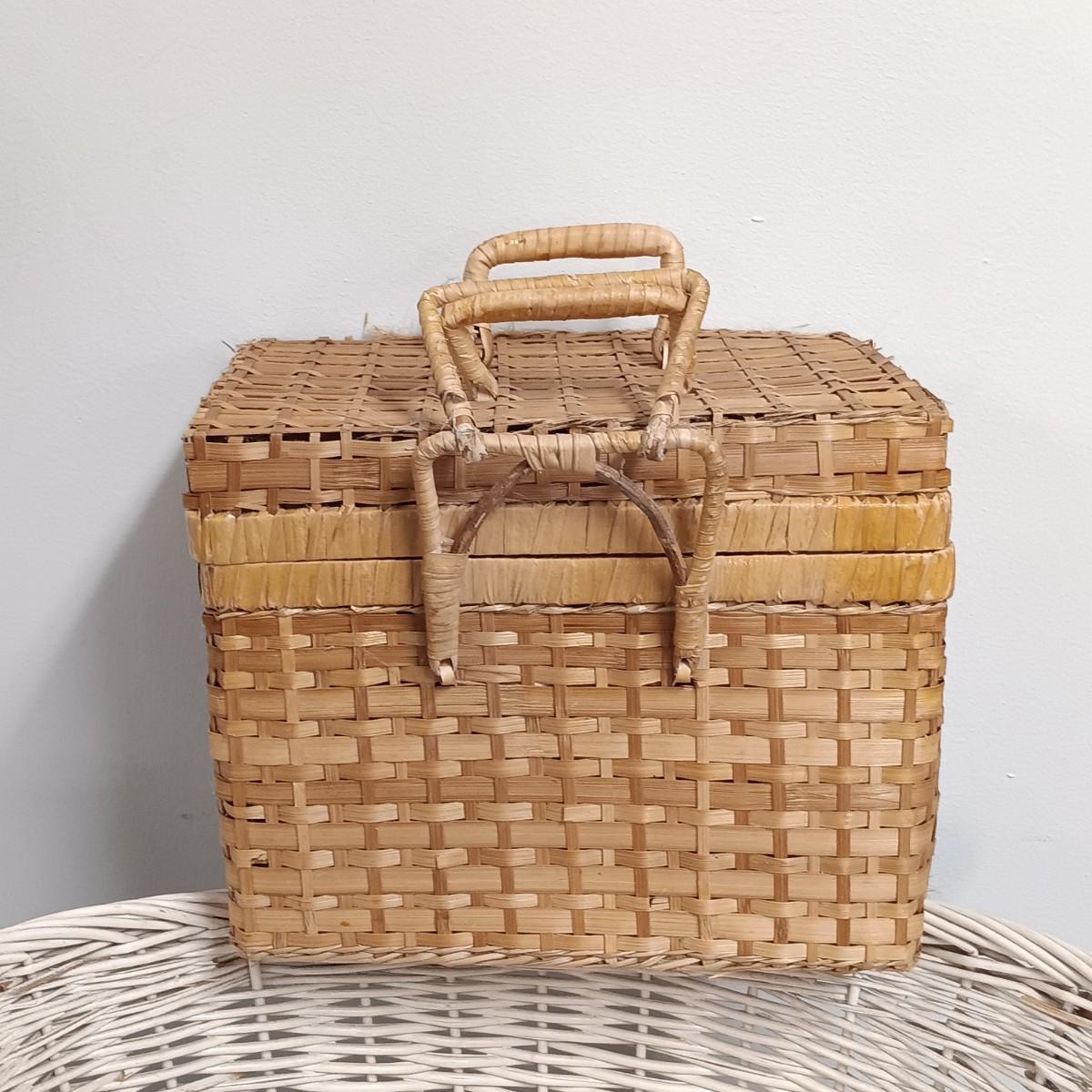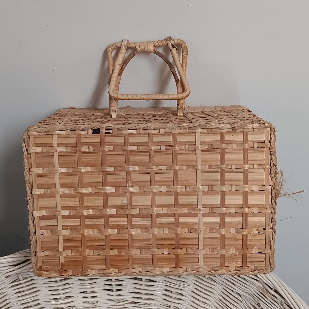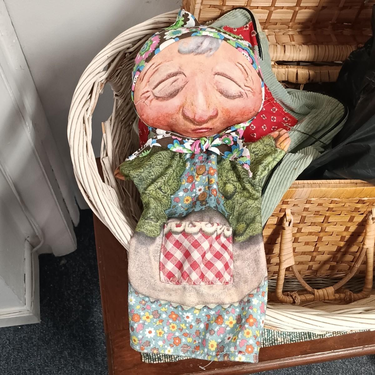 LOT 20: Wicker Basket, Corduroy Jeans Bag, Vintage dressing stool/table & More