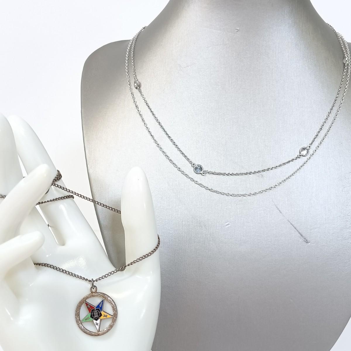 LOT 26: Sterling 925 Eastern Star Society Pendant and Chain with Sterling and Crystal Gemstone Necklace & Thin Sterling Chain