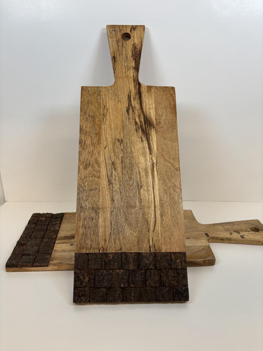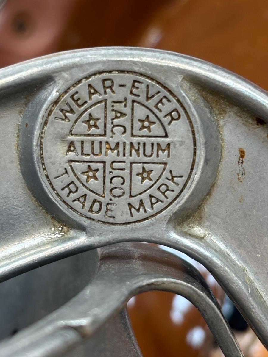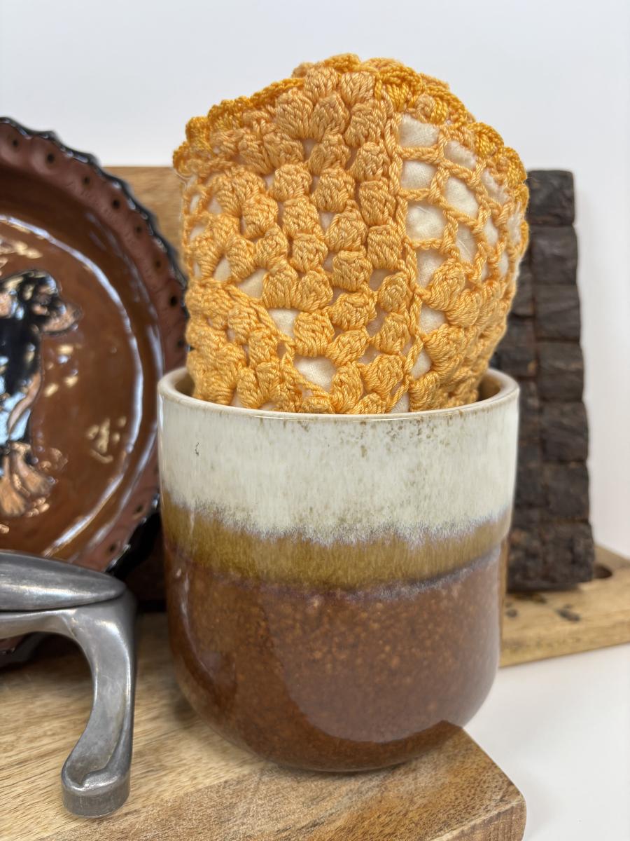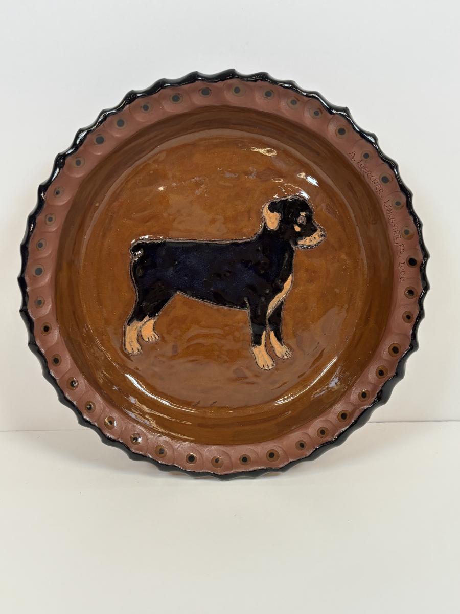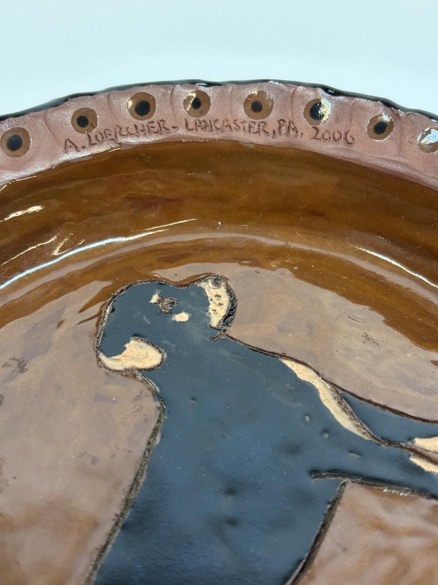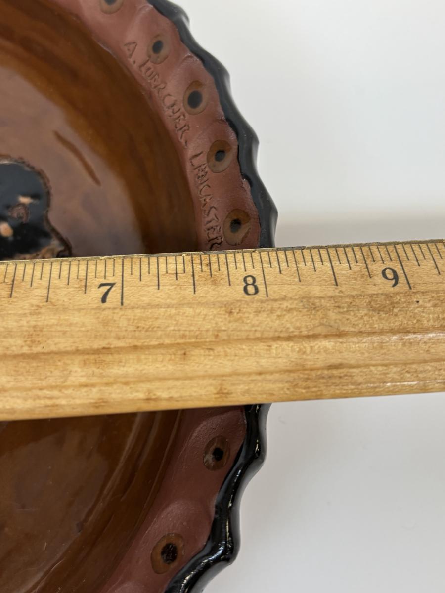LOT 28: Wooden Charcuterie Boards, Vintage Wear-Ever Citrus Juicer, Crocheted Potholders, A. Loercher Earthenware/ Pottery Pie Plate Lancaster PA 2006 & More