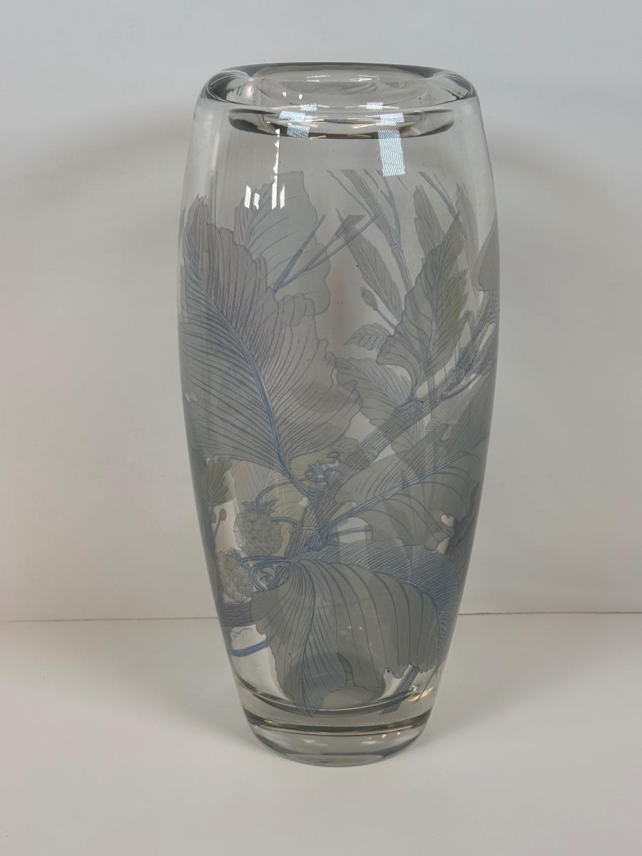 LOT 31: Beautiful Rosenthal Heavy Crystal Vase - Studio Linie - Frosted Design circa 1970's Era approx. 10" tall