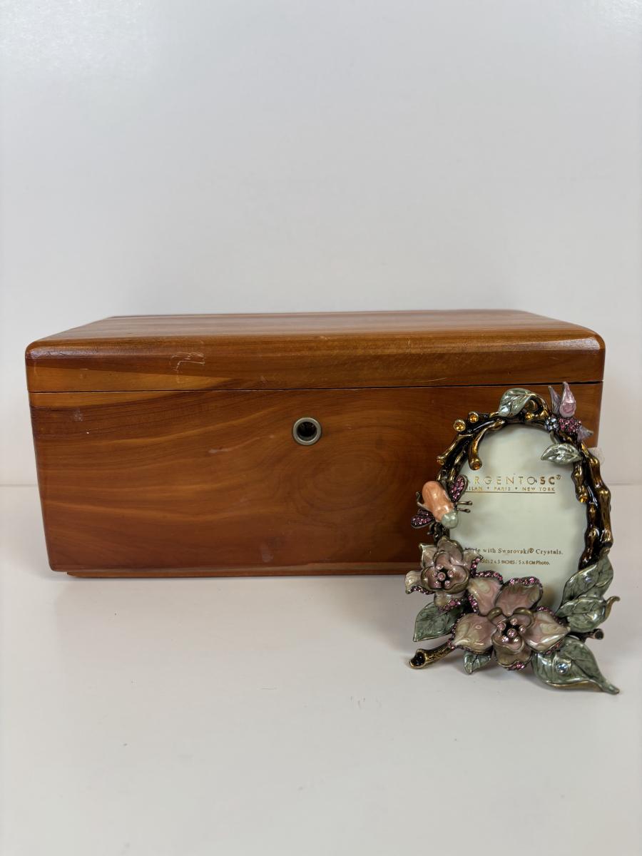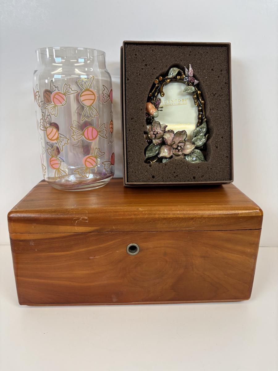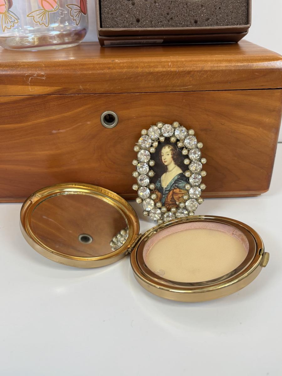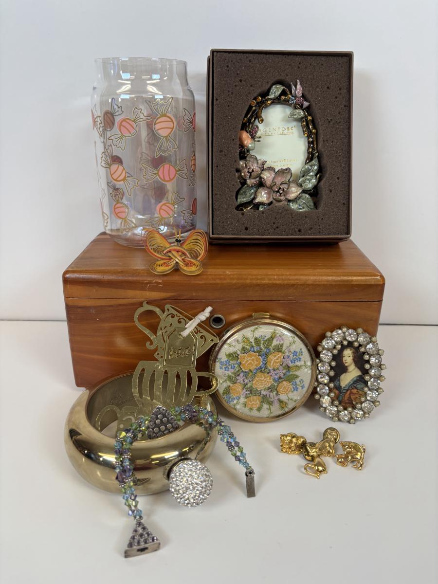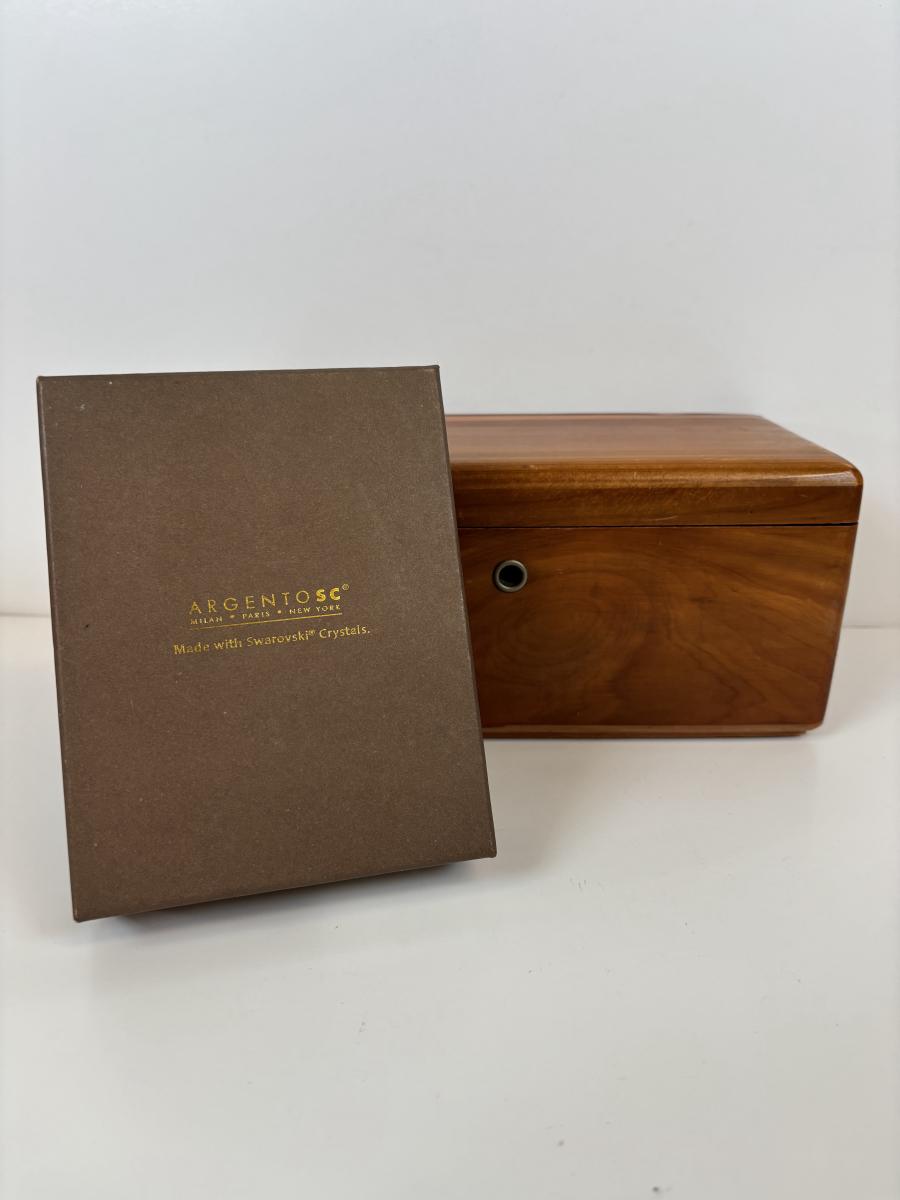 LOT 33: Argentos SC Made w/Swarovski Crystals, Lane Cedar Mini Chest, Chic & Tonic Bangle Flask, Floral Compact & More