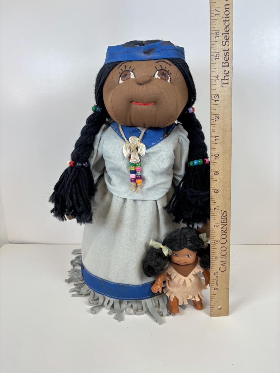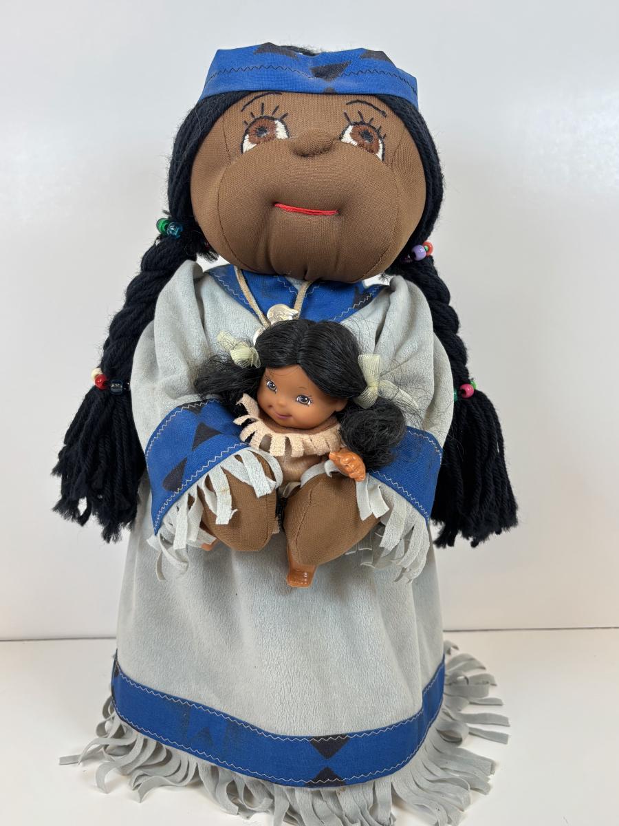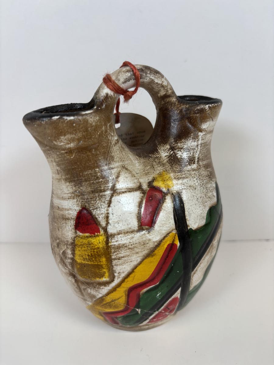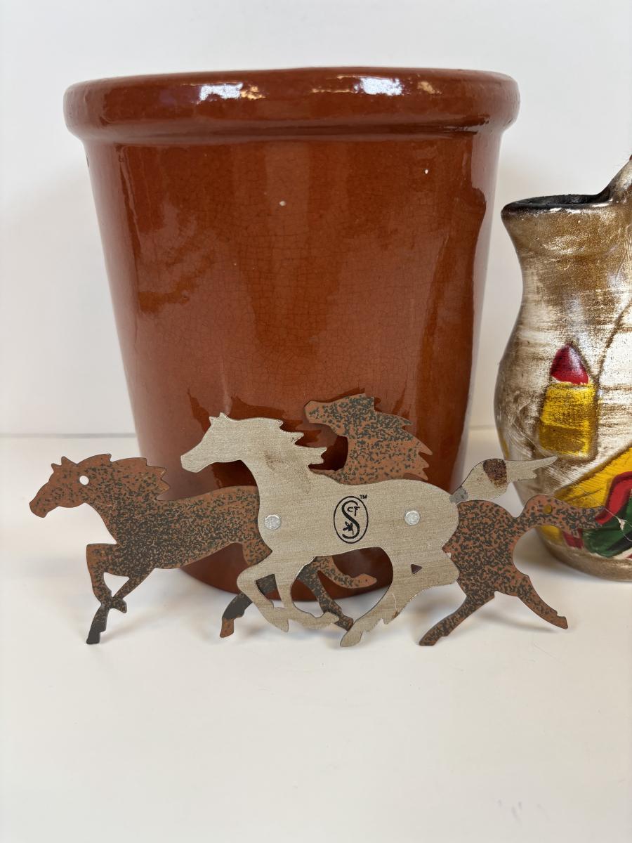LOT 35: Hand-Crafted Native American Doll Doorstop, Native American Wedding Pitcher, Brown Glazed Stoneware Crock