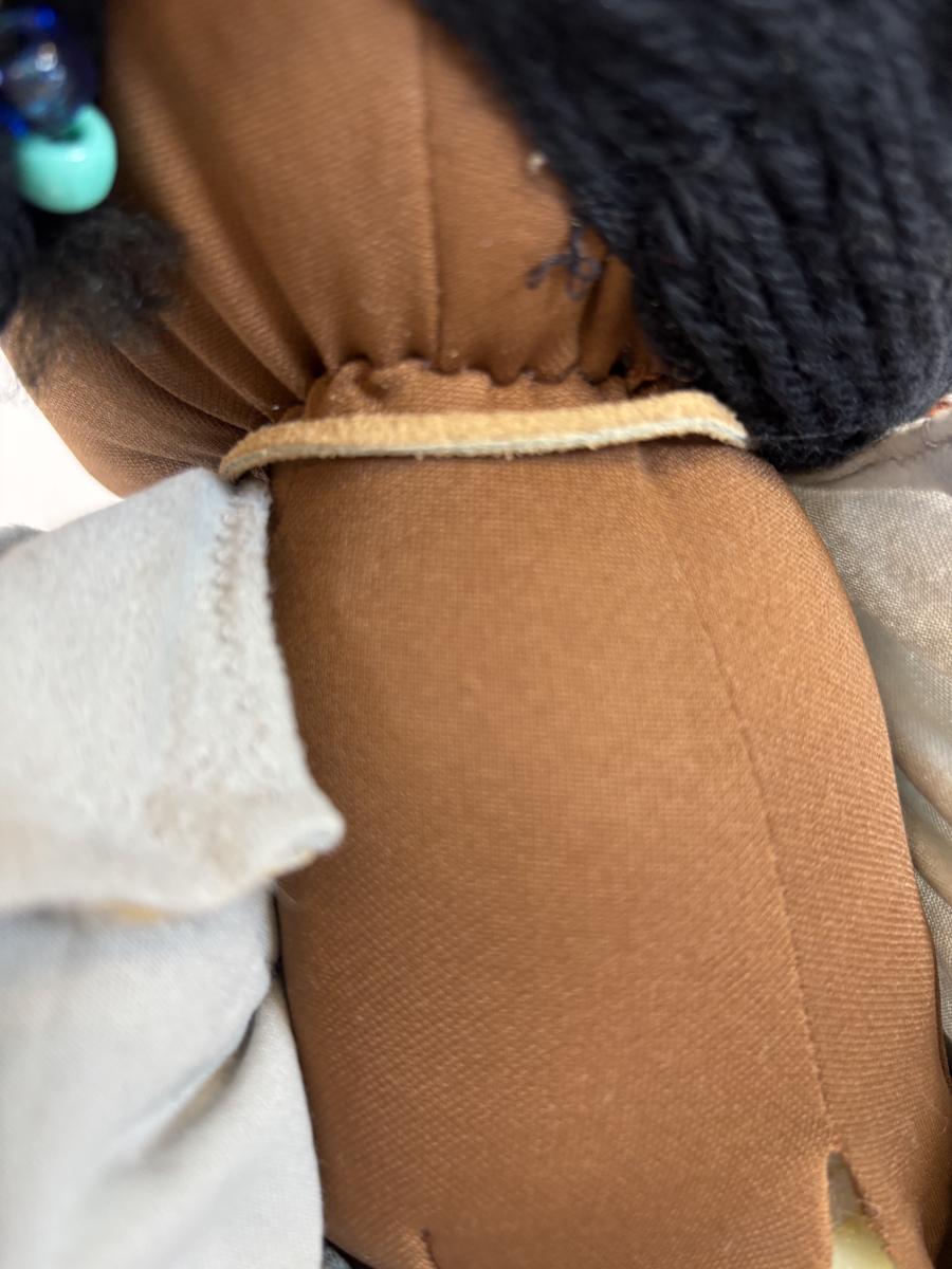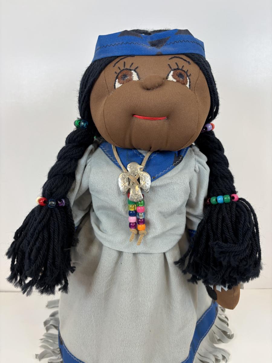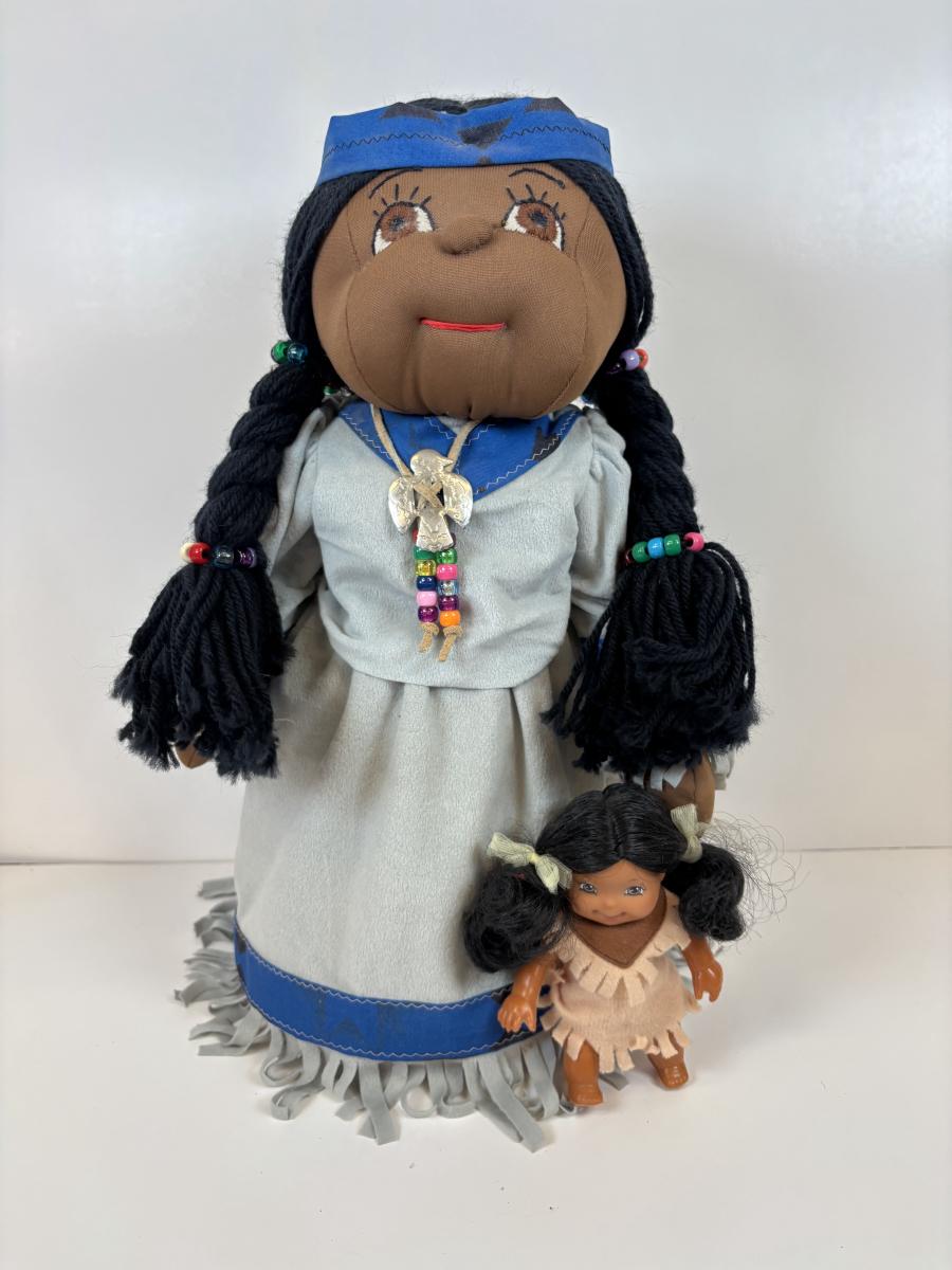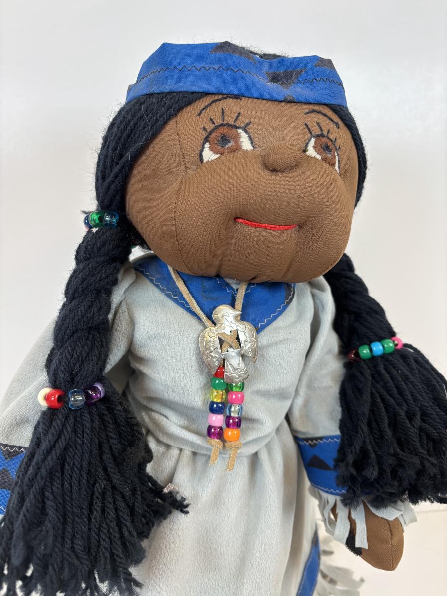 LOT 35: Hand-Crafted Native American Doll Doorstop, Native American Wedding Pitcher, Brown Glazed Stoneware Crock