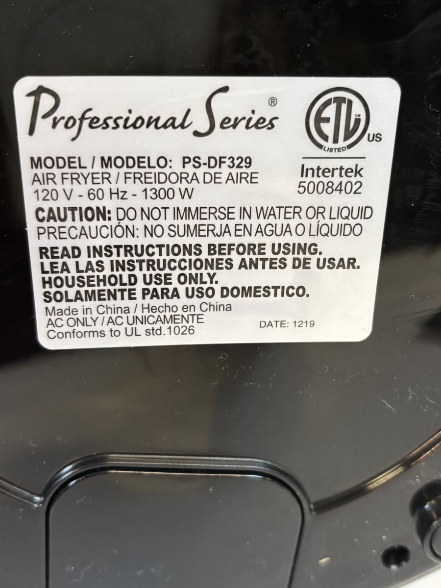 LOT 39: Professional Series Air Fryer Model PS-DF329