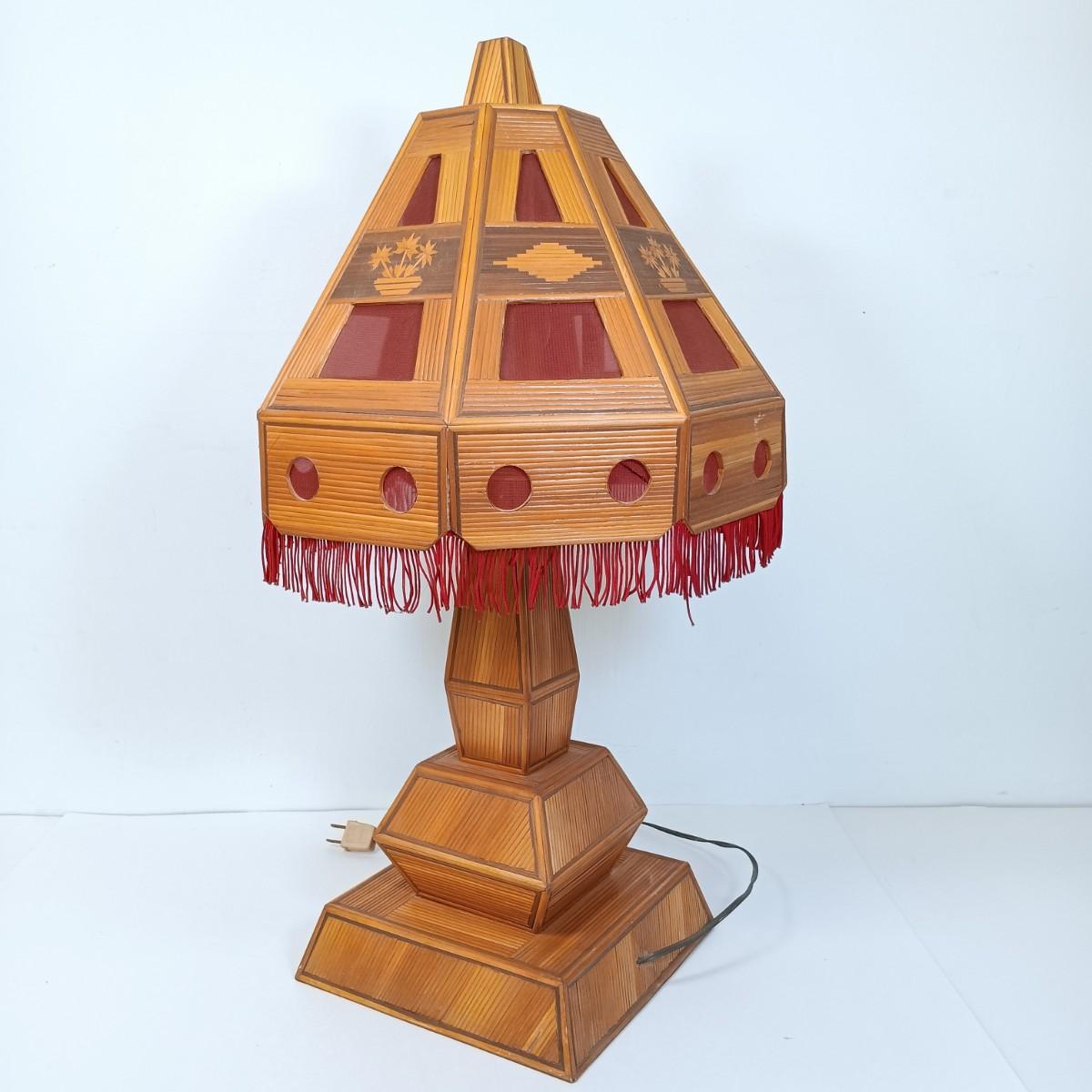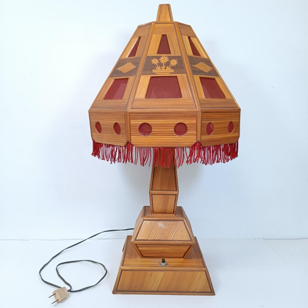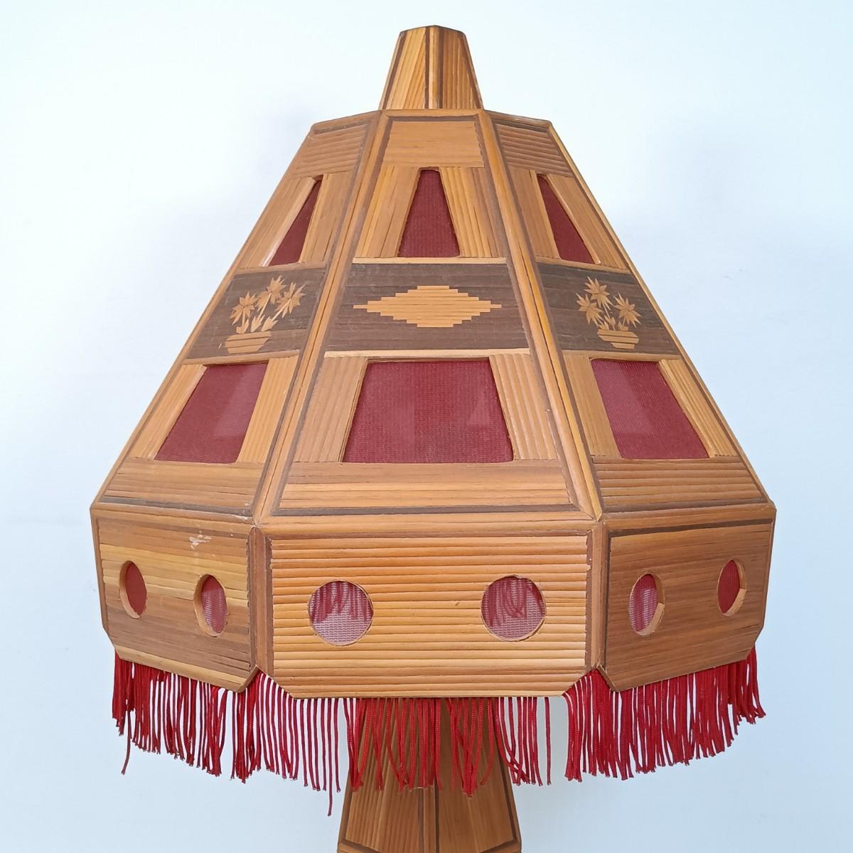 LOT 40: Vintage Handcrafted Tramp Art Style Wood Lamp