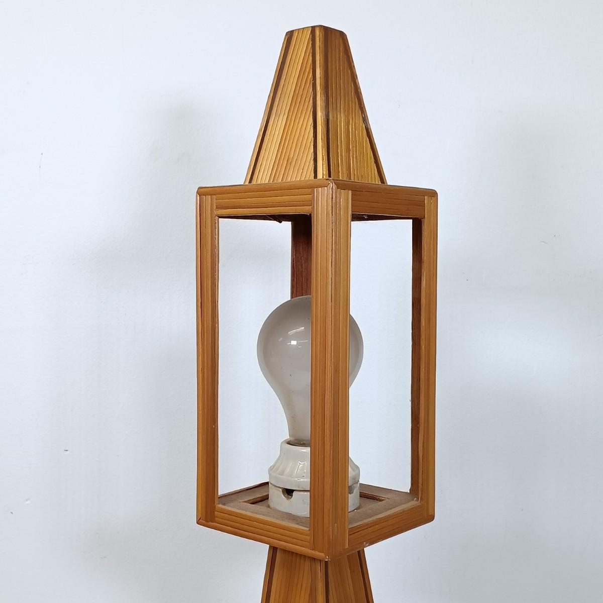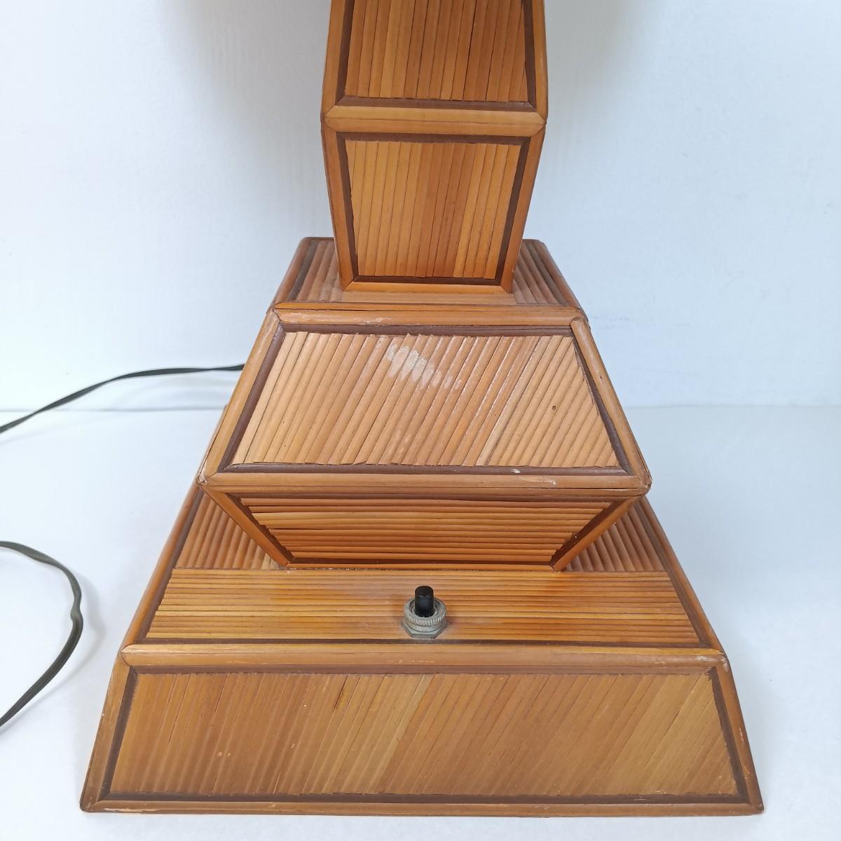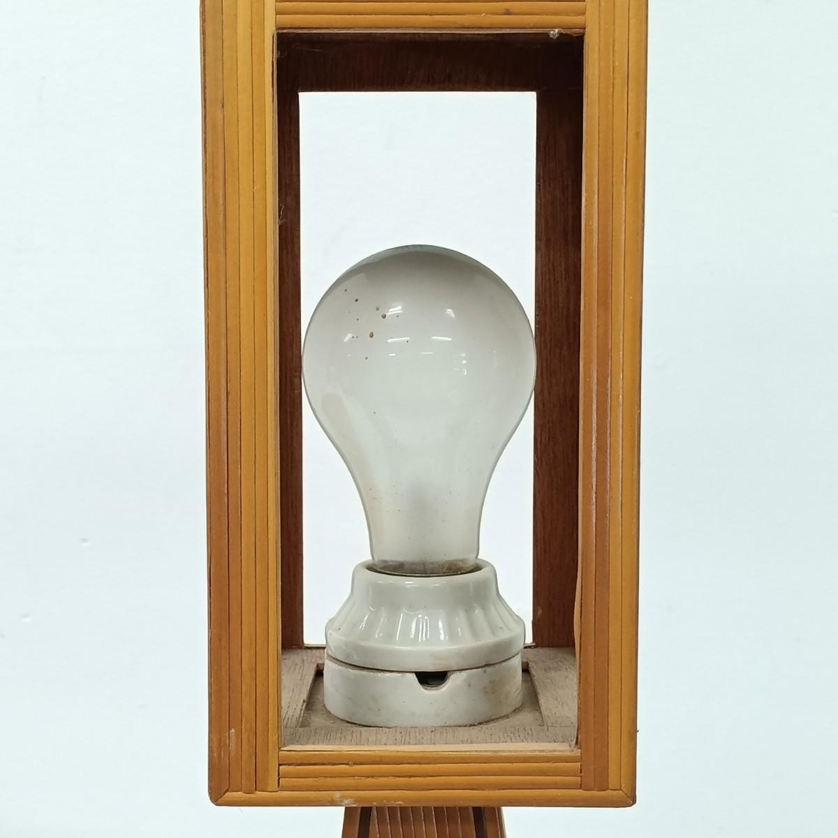 LOT 40: Vintage Handcrafted Tramp Art Style Wood Lamp