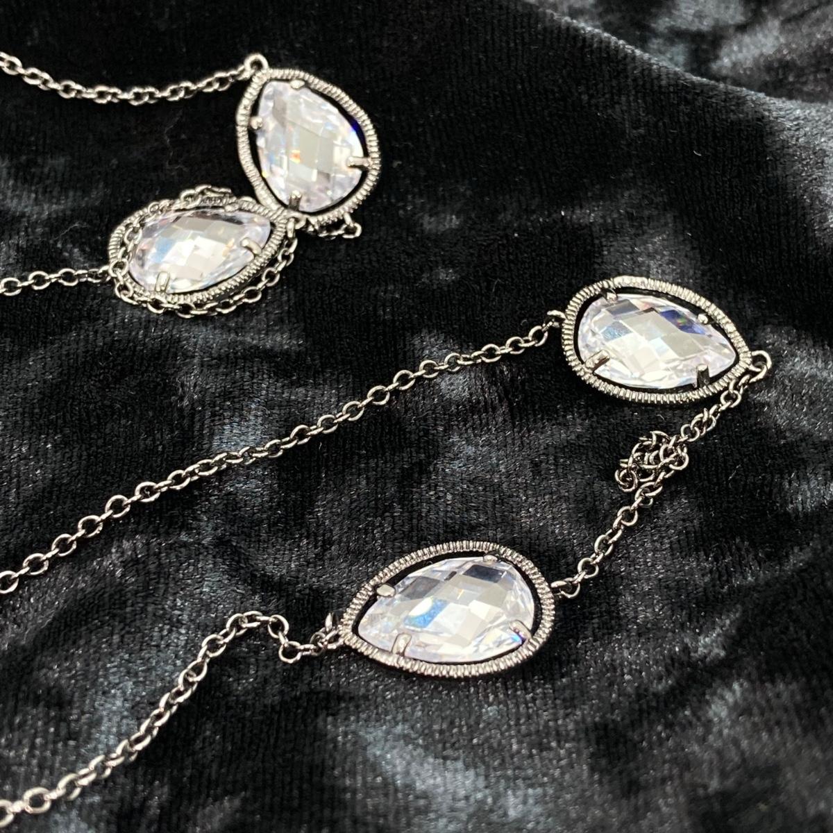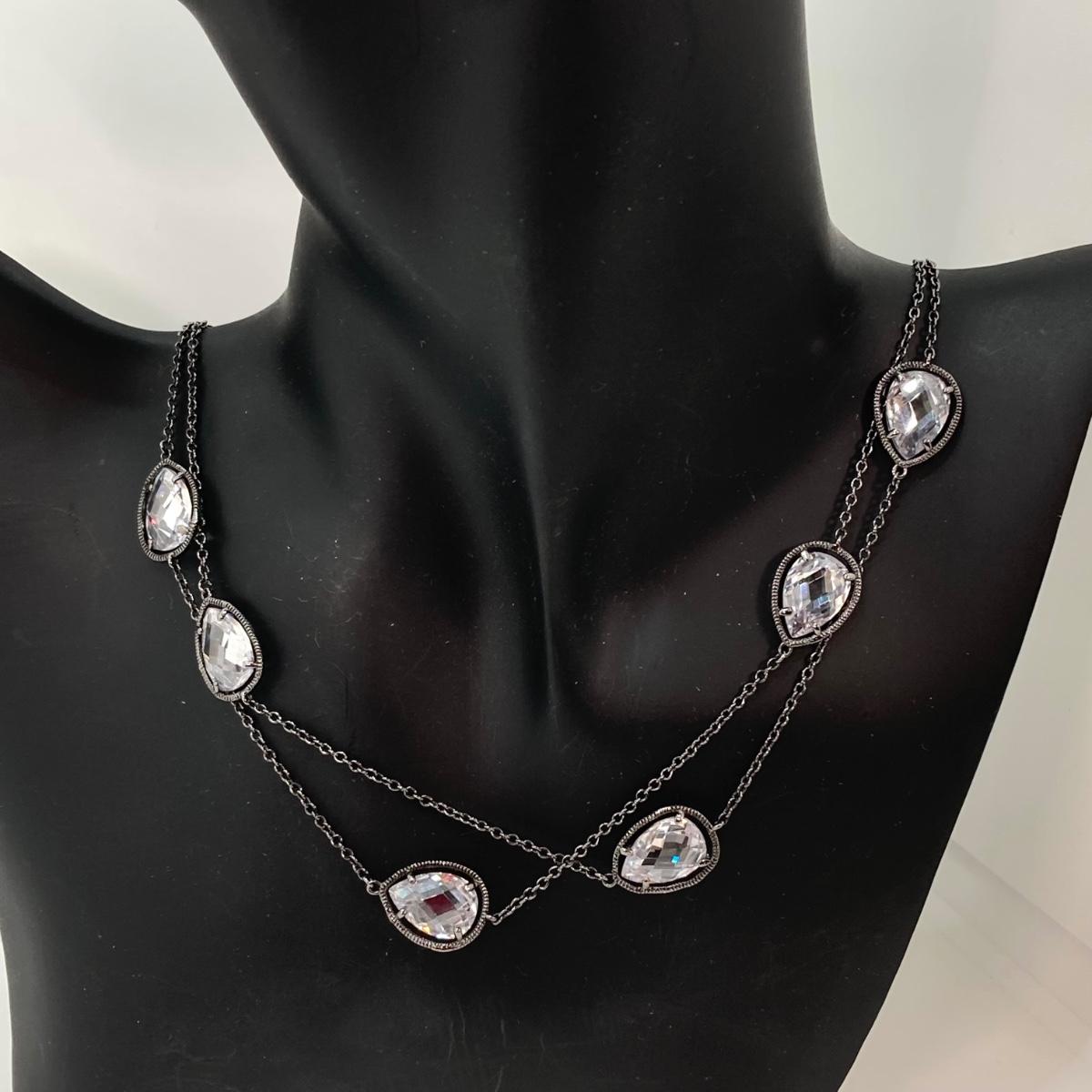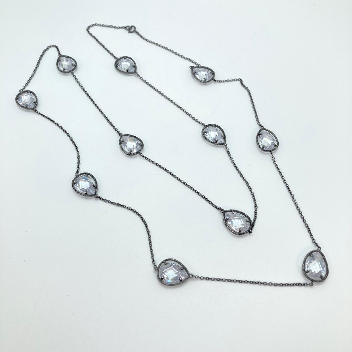 LOT 63: 925 Sterling and Pear Shaped Crystal Necklace - 20gtw, 36"