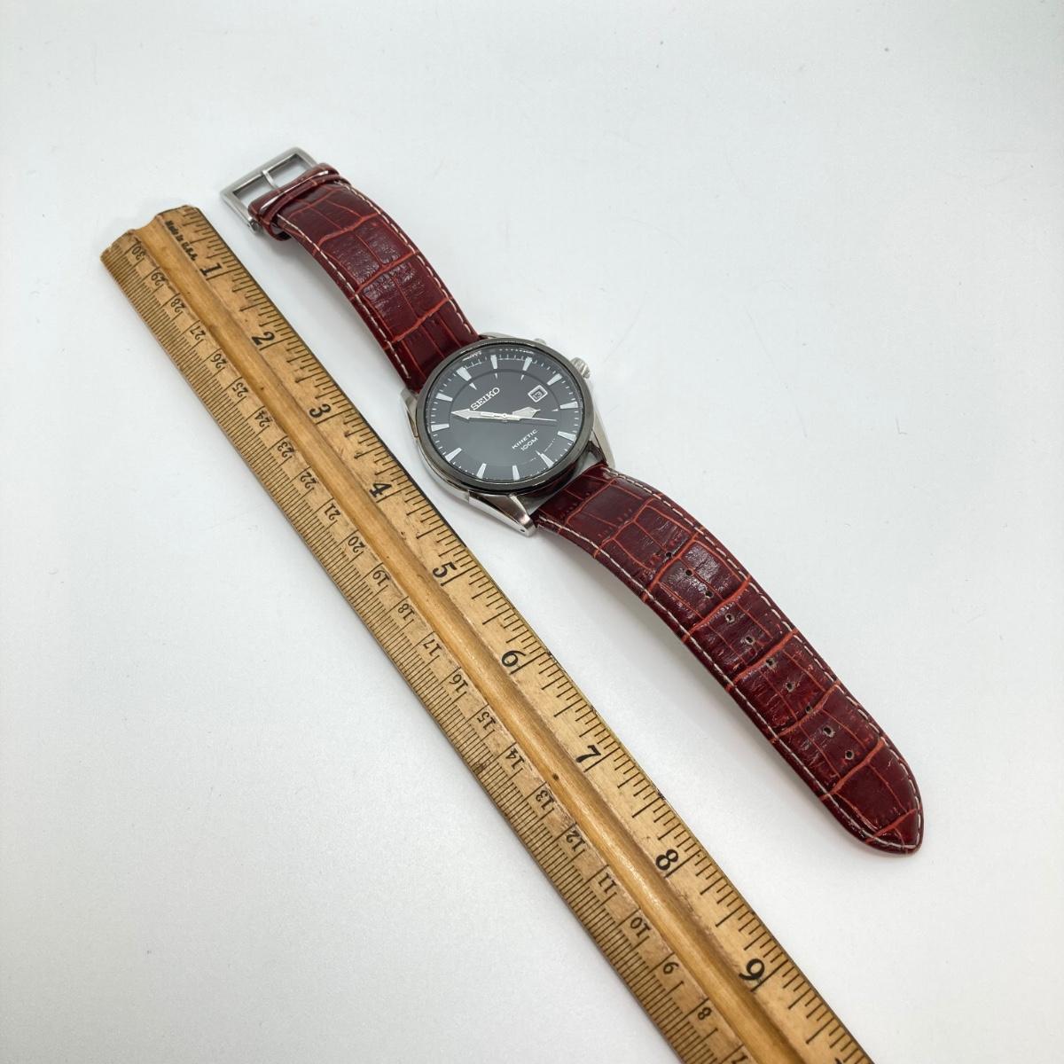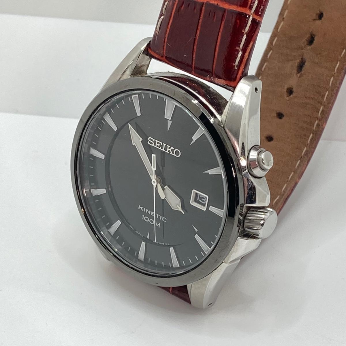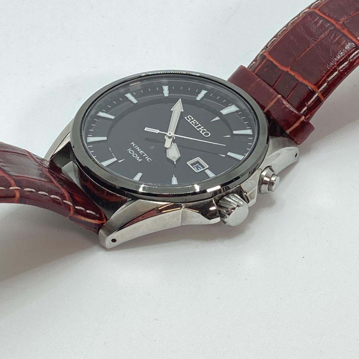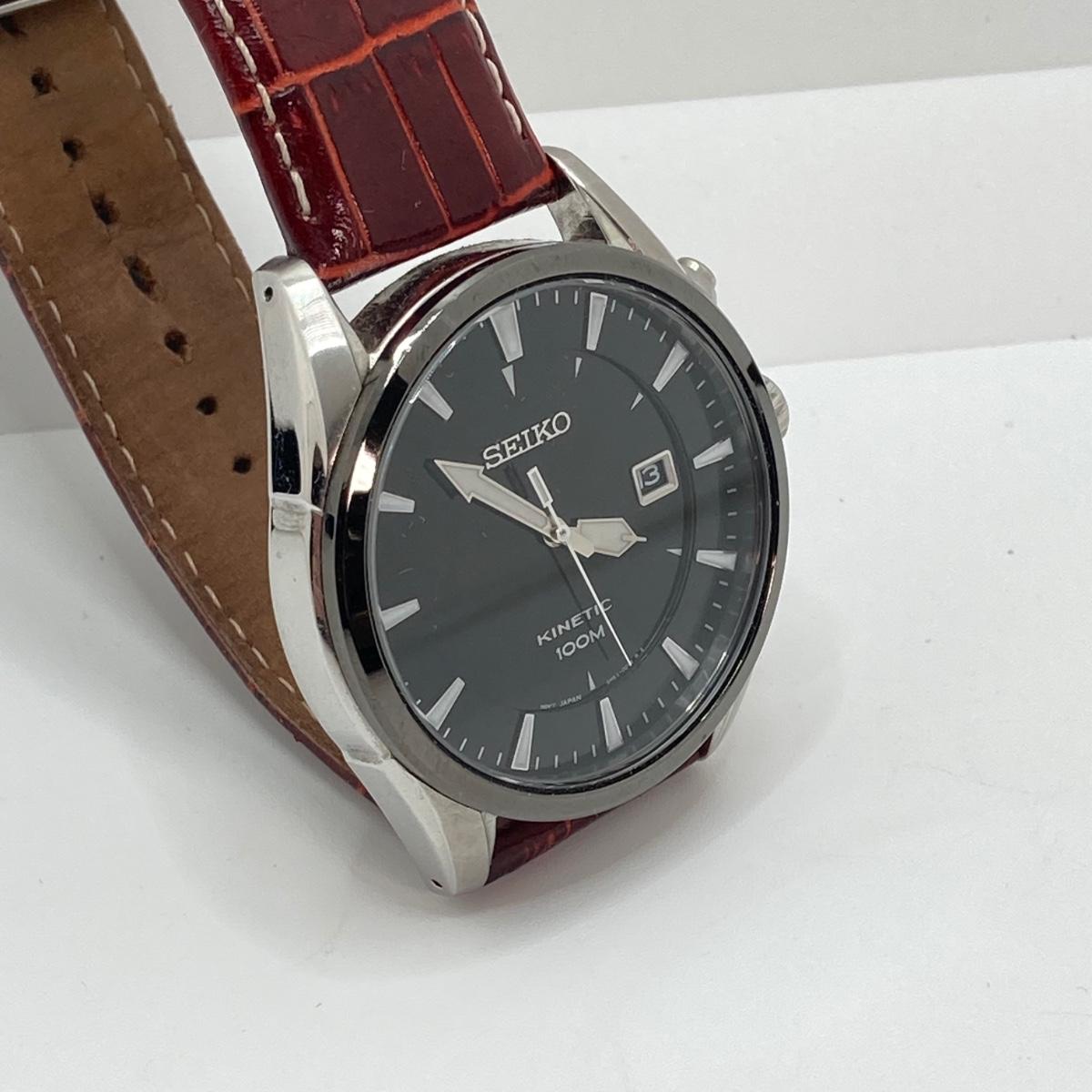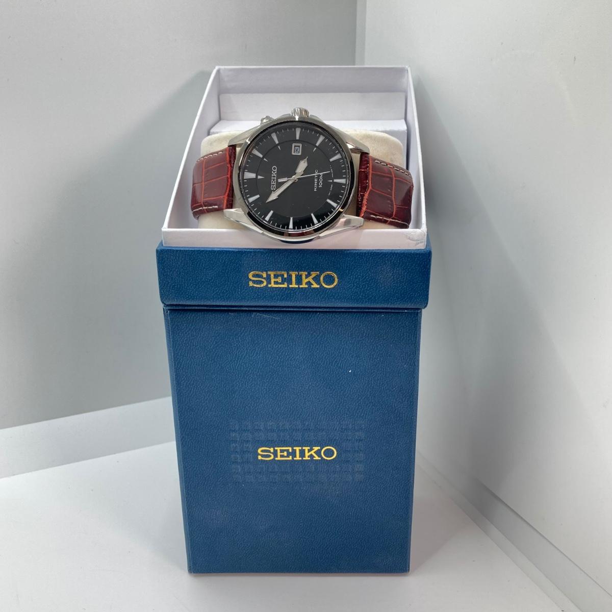 LOT 66: Seiko Kinetic 100M Calendar Watch with Leather Band and Box