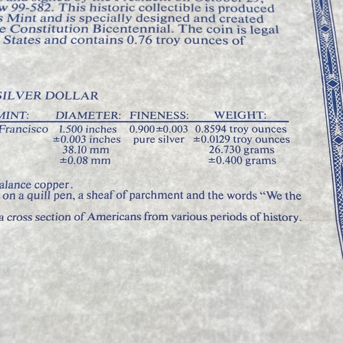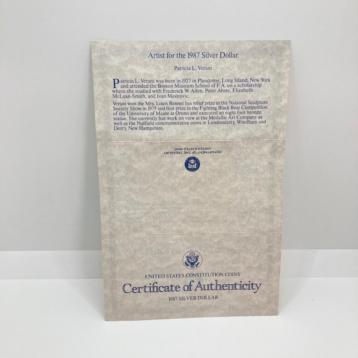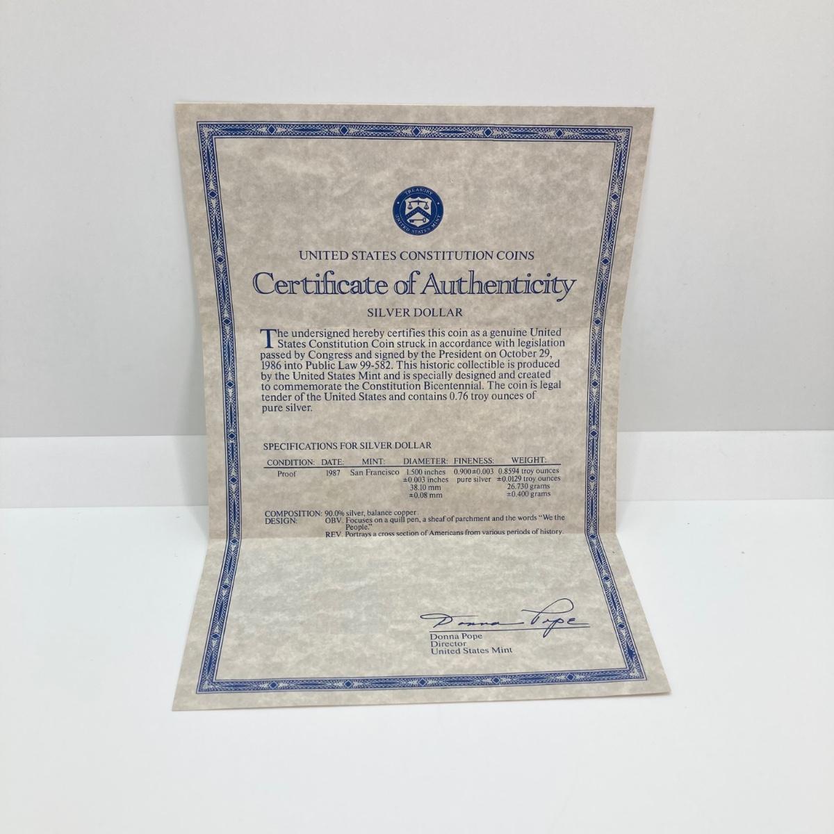 LOT 76: United States Mint - US Constitution Coin 1987 200th Anniversary - Silver Dollar / $1 Dollar Coin with Certificate of Authenticity - 90% Silver