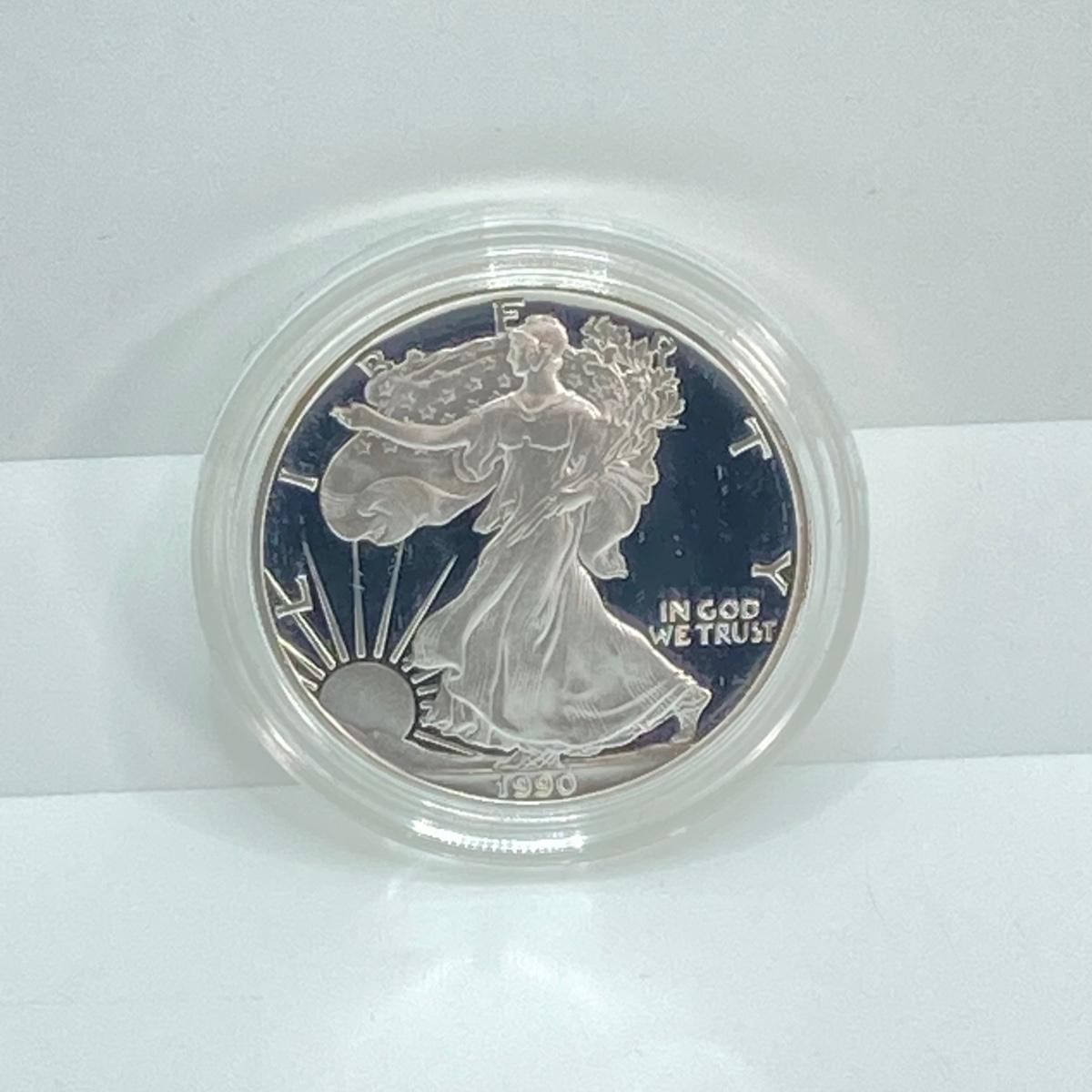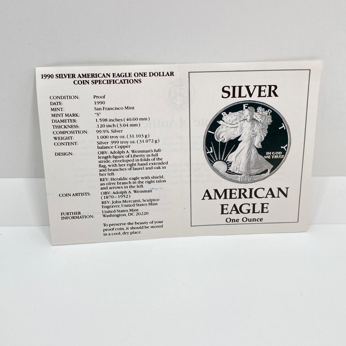 LOT 77: 1990 Walking Liberty Silver American Eagle Proof One Dollar $1 Coin in Presentation Box - 1 Oz Fine Silver