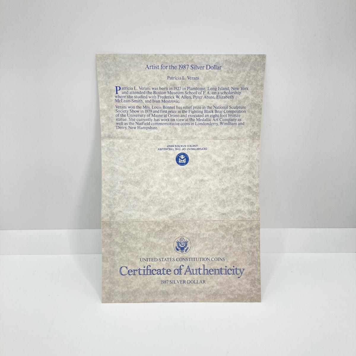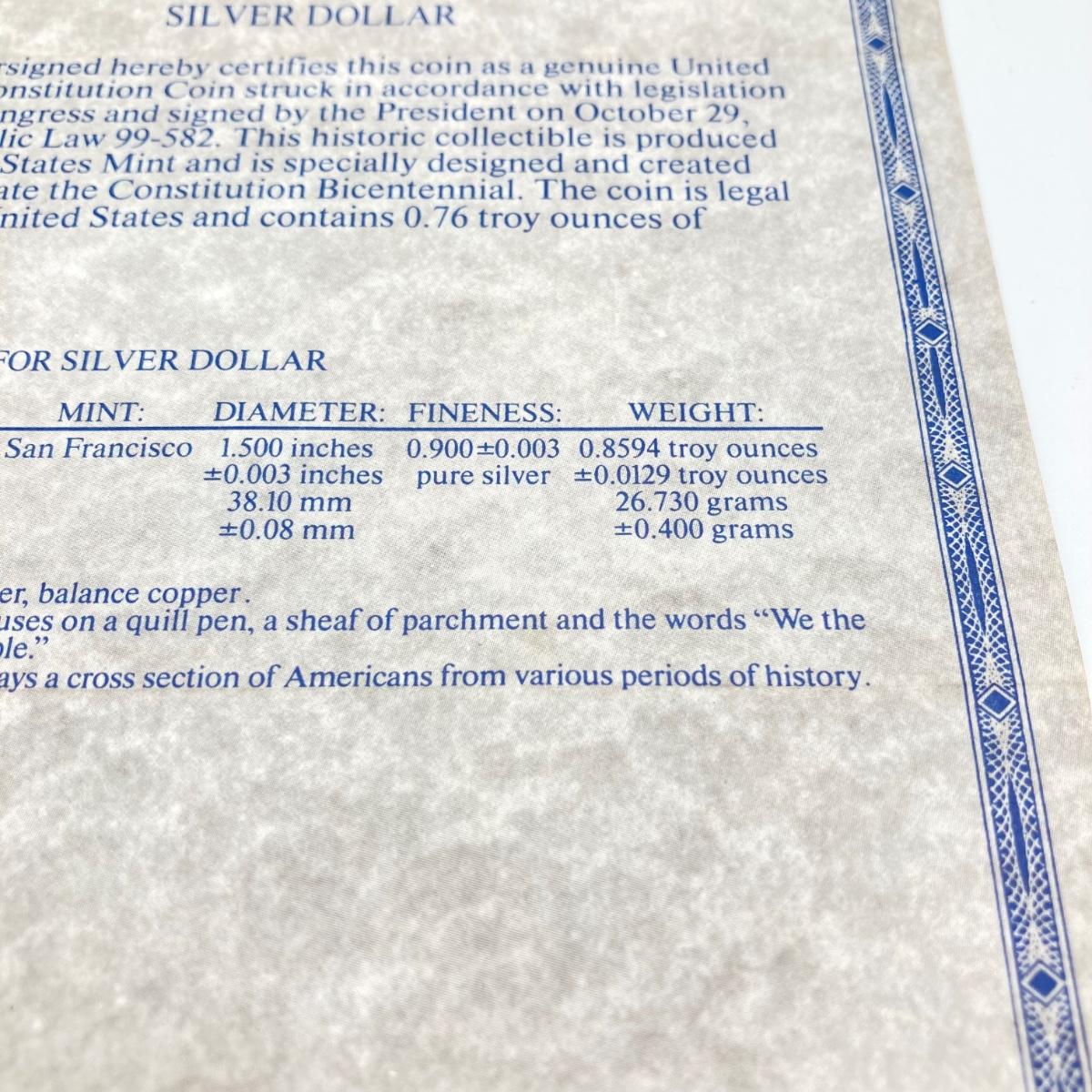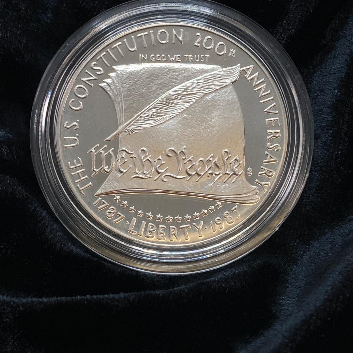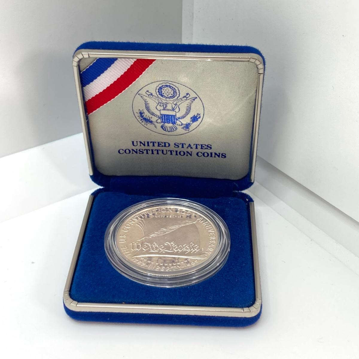 LOT 78: United States Mint - US Constitution Coin 1987 200th Anniversary - Silver Dollar / $1 Dollar Coin with Certificate of Authenticity - 90% Silver in Presentation Box