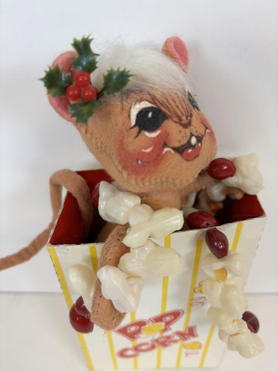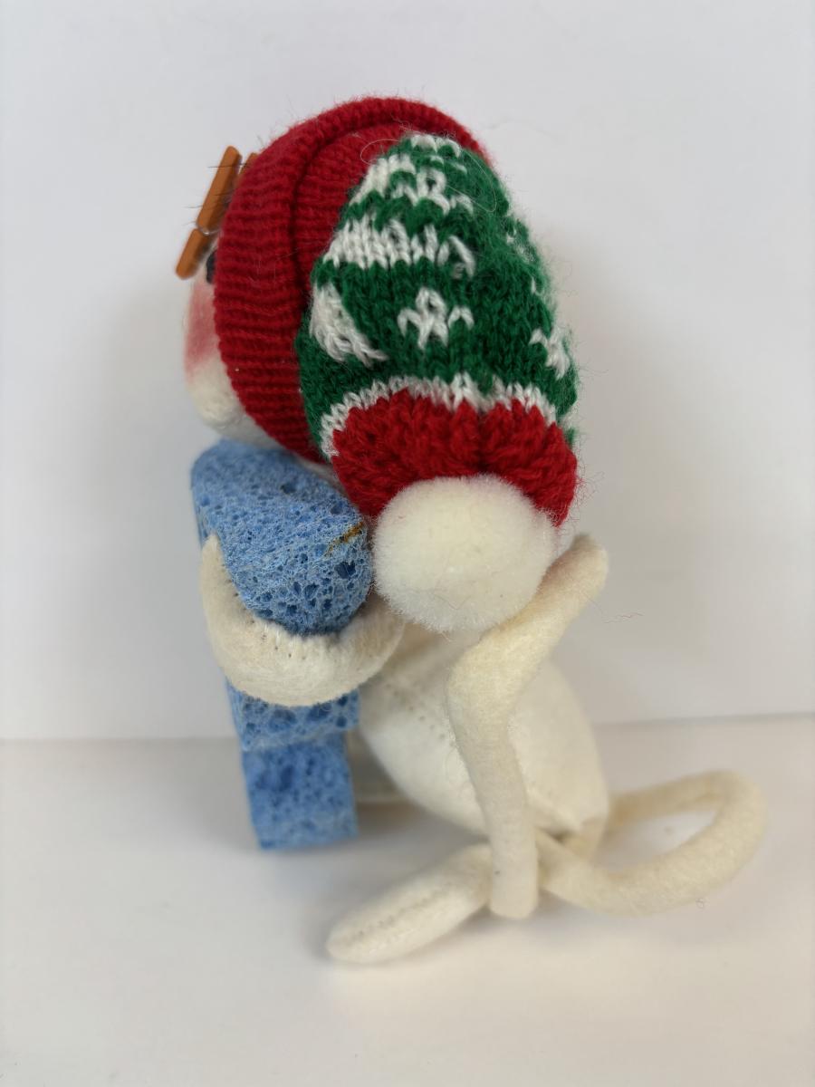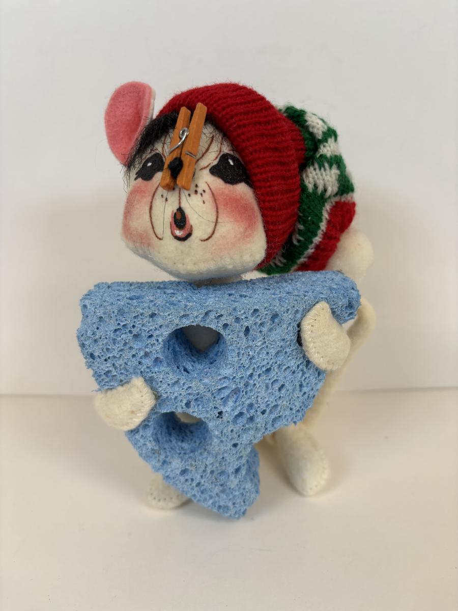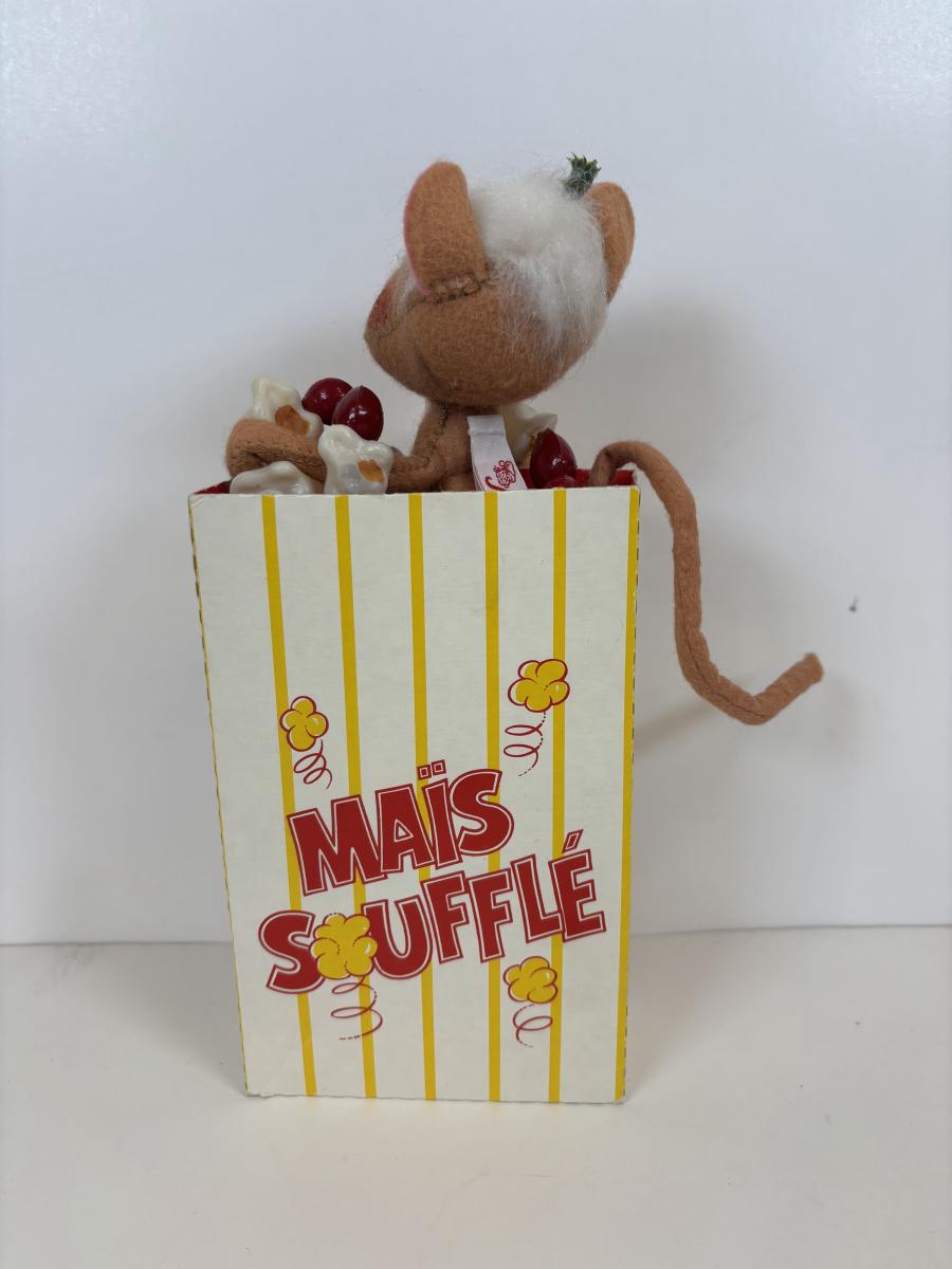 LOT 85: Vintage Annalee Collection: 1992 Country Mouse Cheese Wedge, 1997 Ice Skater, 1997 Popcorn, 2000 Stinky Cheese Mouse, Mouse w/Snowball