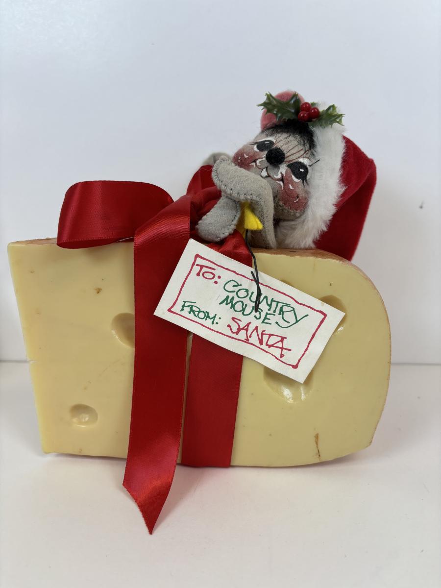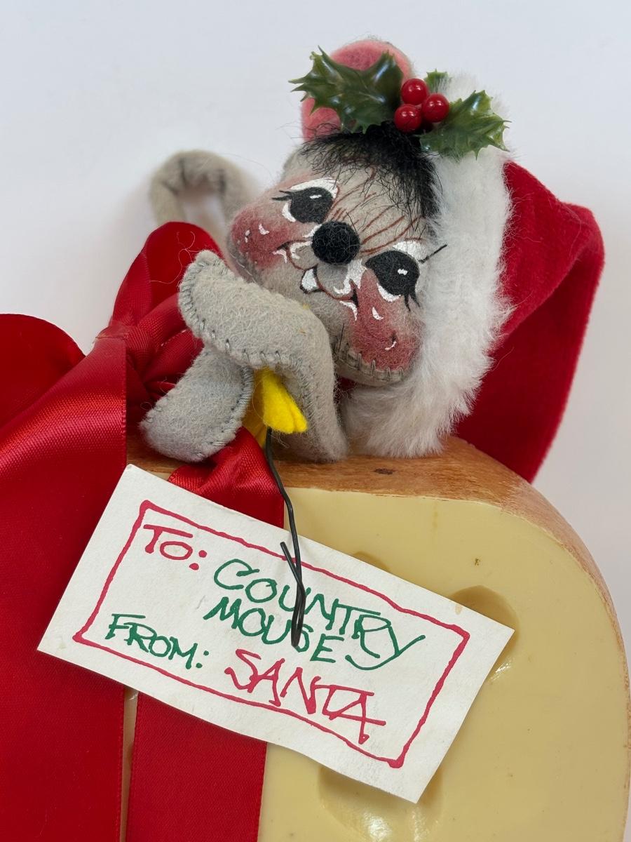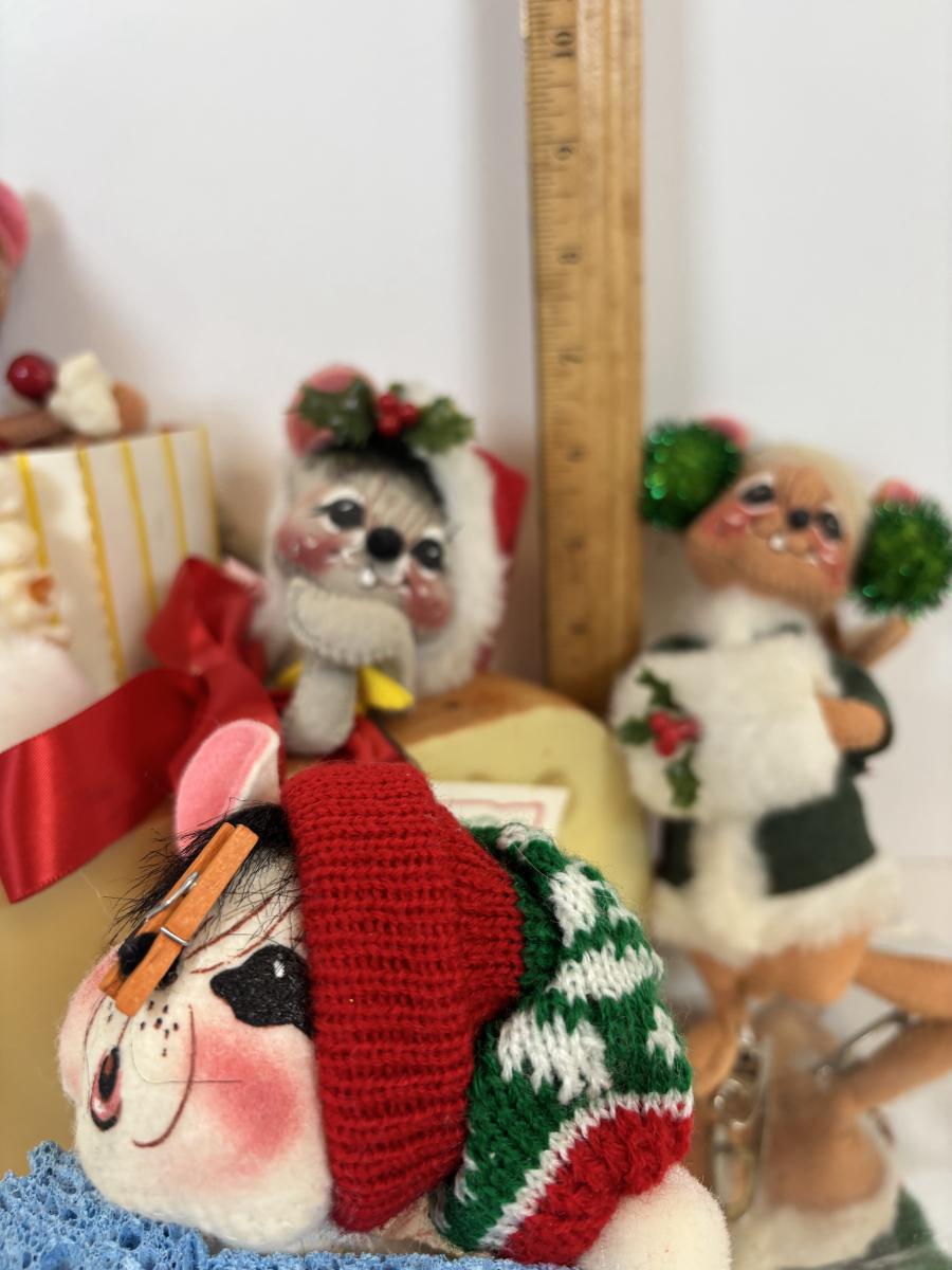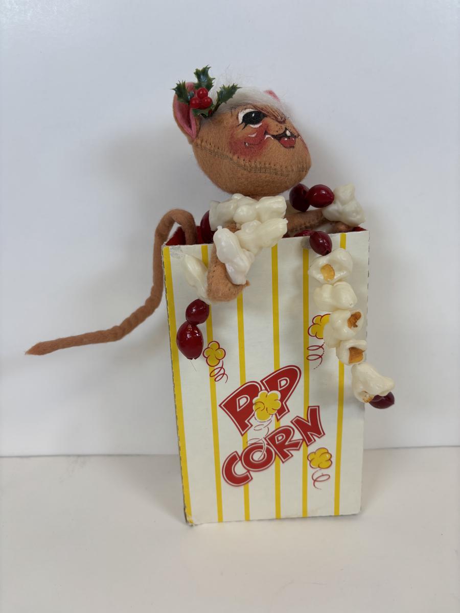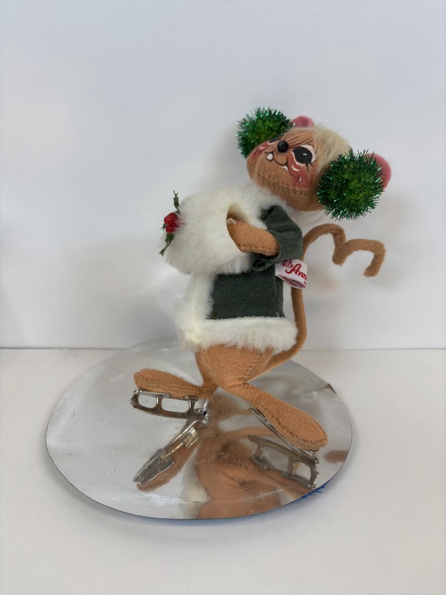 LOT 85: Vintage Annalee Collection: 1992 Country Mouse Cheese Wedge, 1997 Ice Skater, 1997 Popcorn, 2000 Stinky Cheese Mouse, Mouse w/Snowball