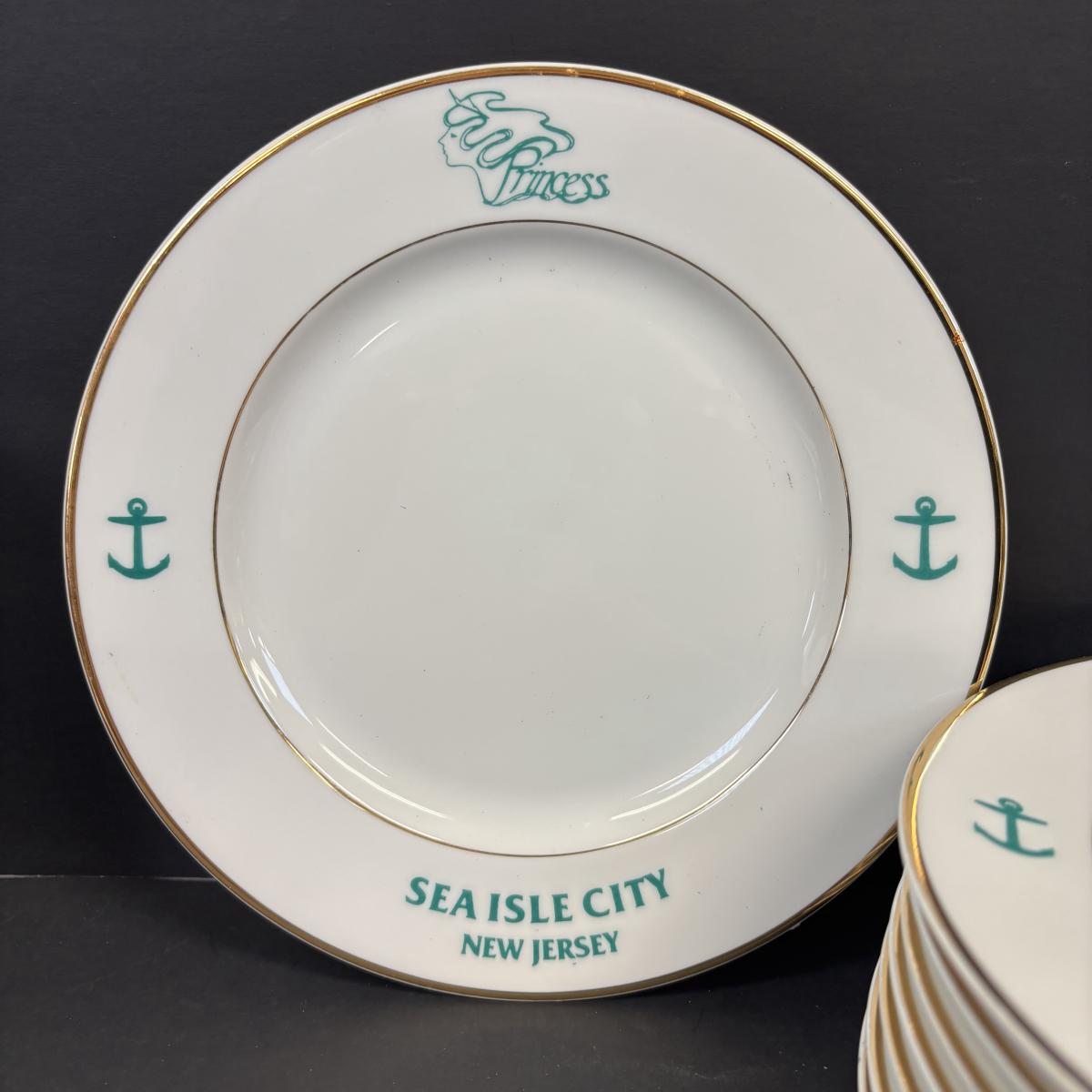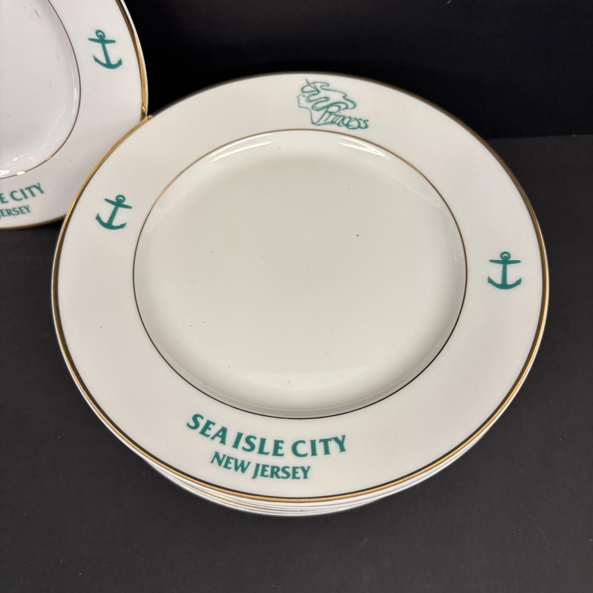 LOT 91: Vintage Trump Princess Sea Isle City, NJ Nautical Yacht Dessert Plates, Scentsy Coast Guard Warmer & Loster Feast Tableware